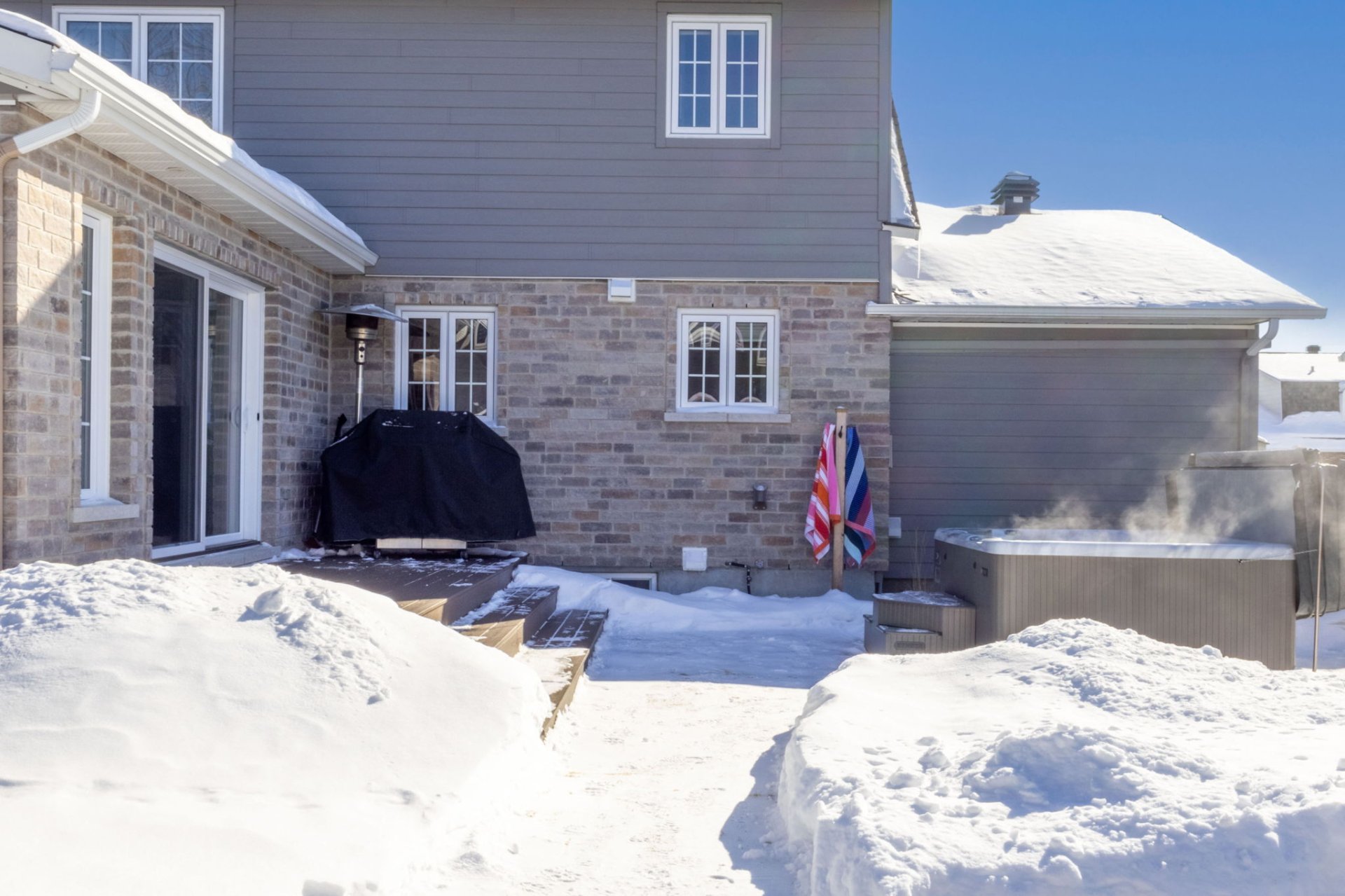 La cour arrière entièrement clôturée et paysagée a été soigneusement aménagée avec un foyer extérieur, un gazebo, un cabanon et une élégante terrasse en pavé Uni-stone, idéale pour profiter des rassemblements en toute saison. Un système d’irrigation intégré assure un entretien simplifié du terrain et réduit les tâches au fil des saisons.