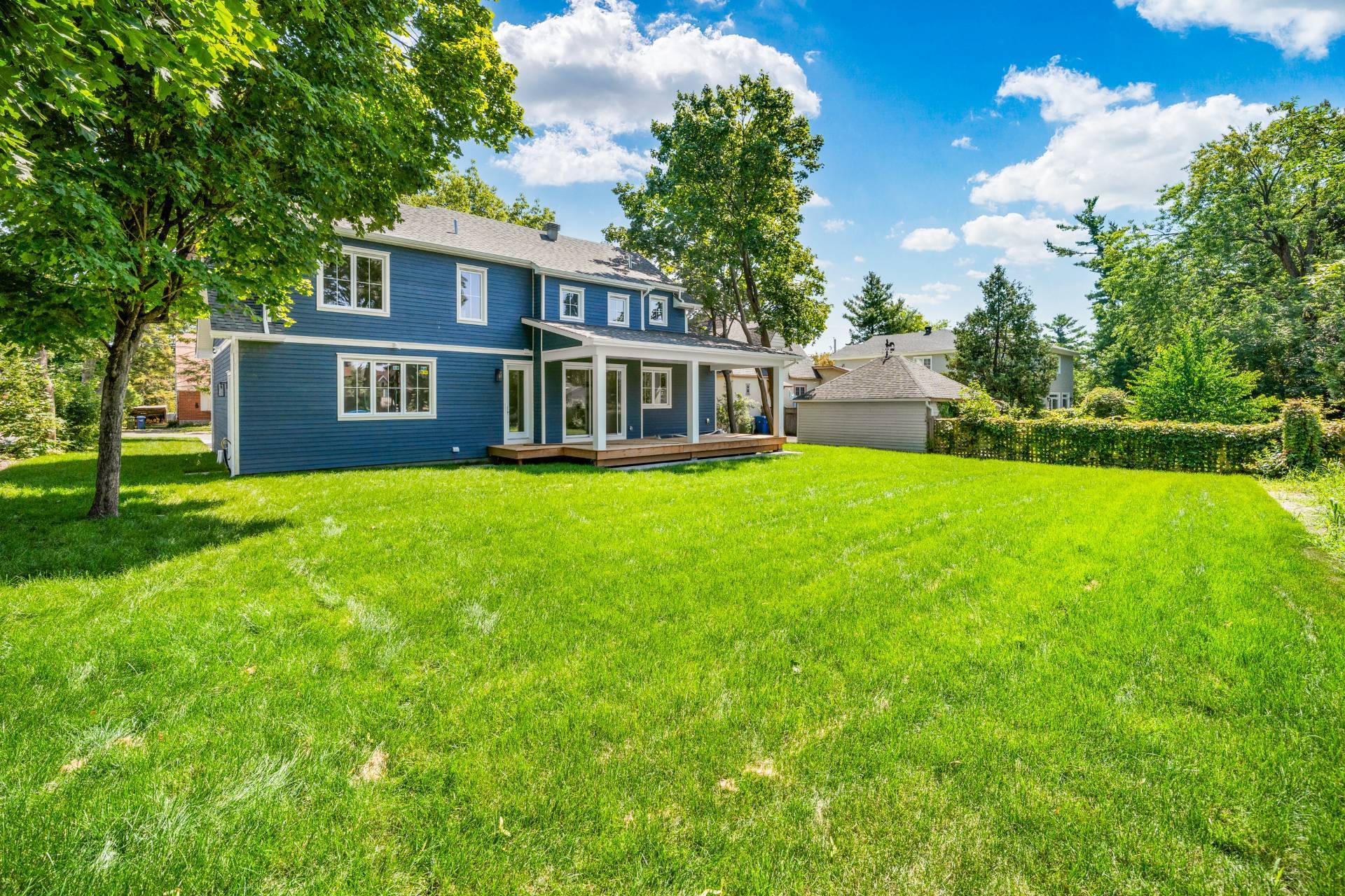 Le sous-sol entièrement aménagé offre une grande flexibilité, idéal pour une suite intergénérationnelle ou pour recevoir des invités, avec cuisine complète, salle familiale, chambre, salle de bain et salle de lavage. À l’extérieur, le revêtement en Maibec haut de gamme et la pierre naturelle confèrent à la propriété durabilité et élégance intemporelle.