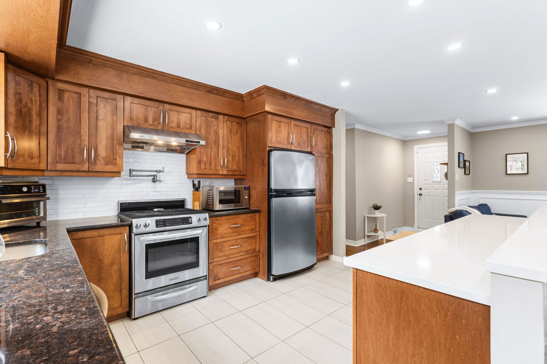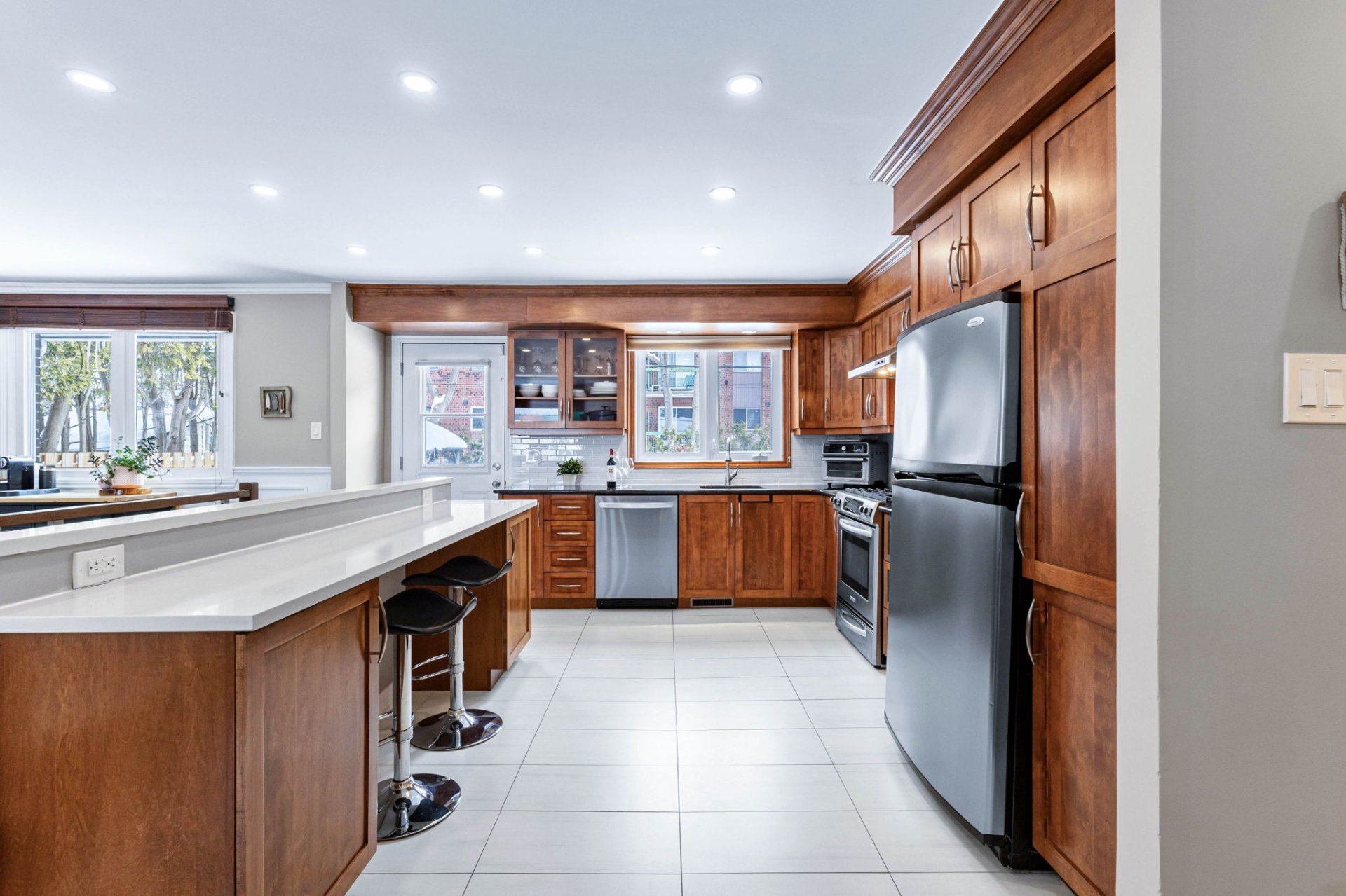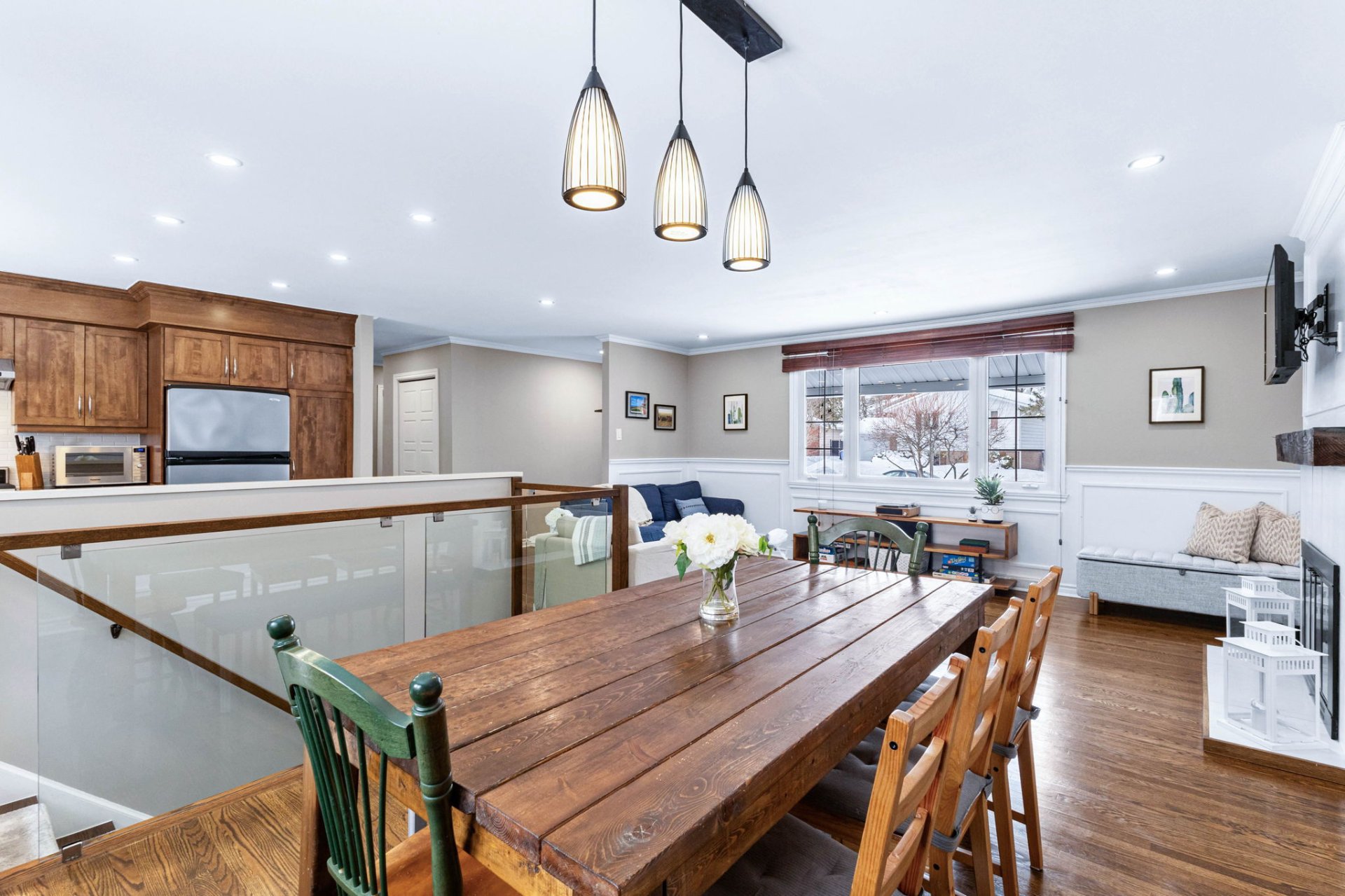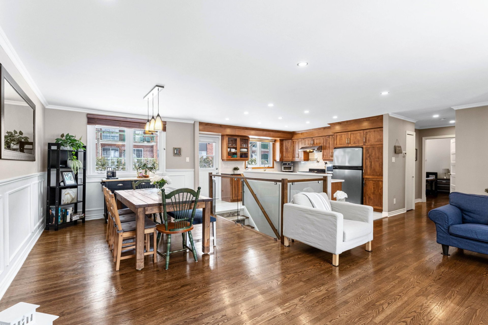 Le rez-de-chaussée de la propriété offre un espace lumineux à aire ouverte comprenant le salon, la salle à manger et la cuisine, mis en valeur par un grand îlot et une abondante lumière naturelle. De magnifiques planchers de bois franc s’étendent dans le salon, la salle à manger et les chambres. La chambre principale comprend une salle d’eau attenante pratique, tandis que deux autres chambres et une salle de bain familiale complète viennent compléter l’étage principal.