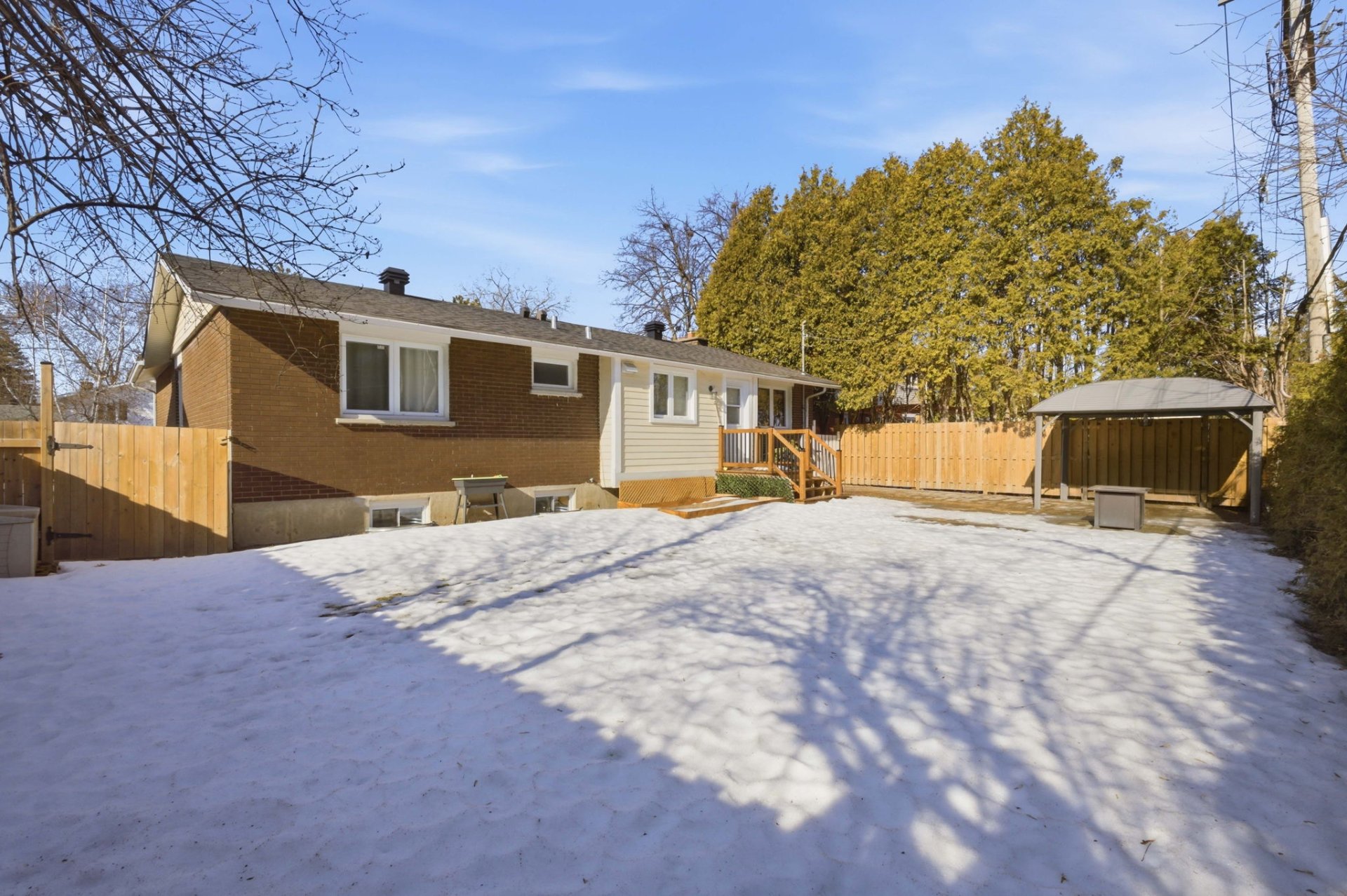 À l’extérieur, profitez d’une grande cour arrière entièrement clôturée avec un nouveau patio en pavé uni. La propriété dispose également d’une entrée double nouvellement asphaltée avec une bordure et une allée piétonne en pavé uni, ainsi que d’un charmant perron avant avec un coin détente, ajoutant à la fois commodité et attrait extérieur.