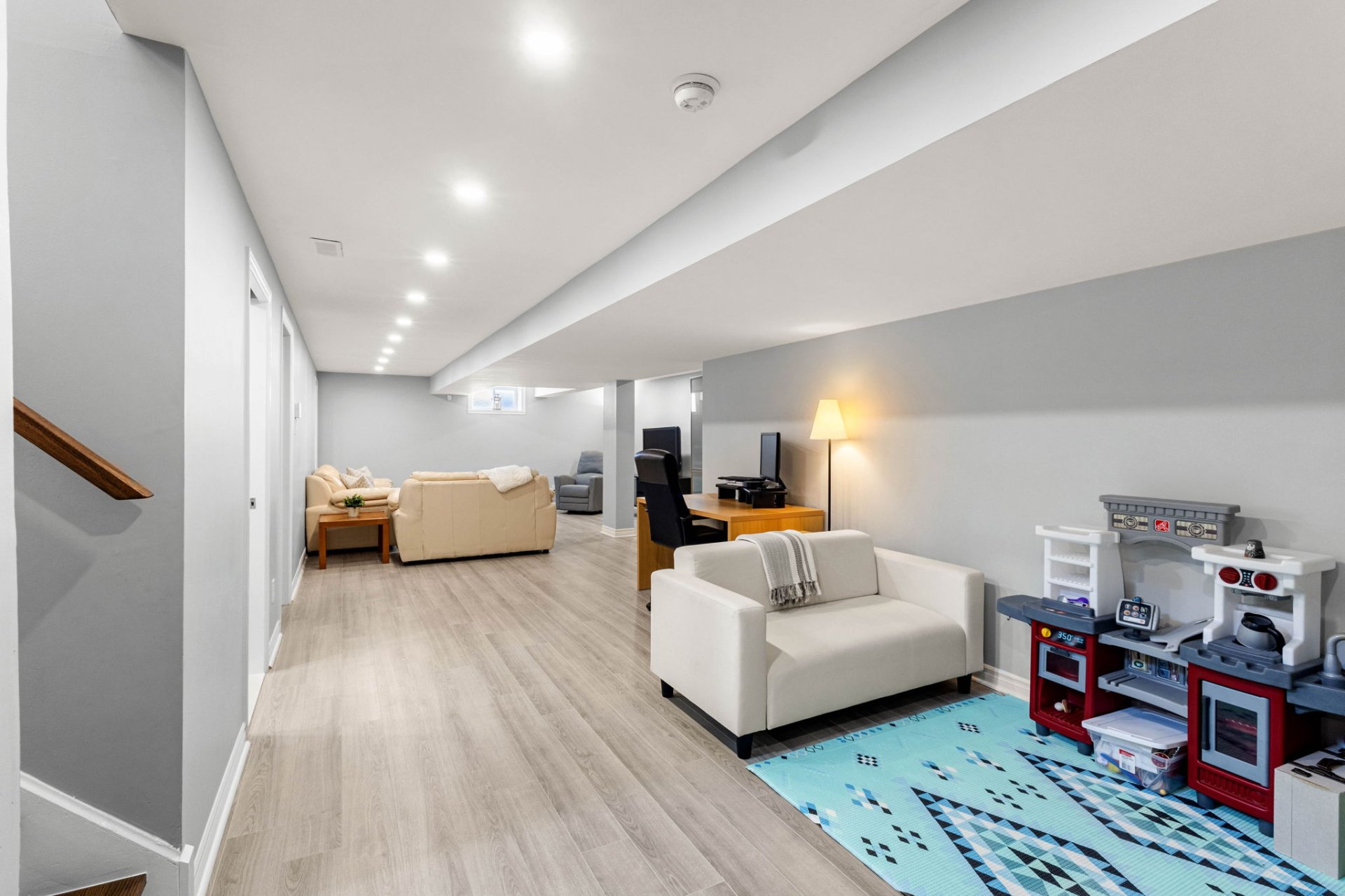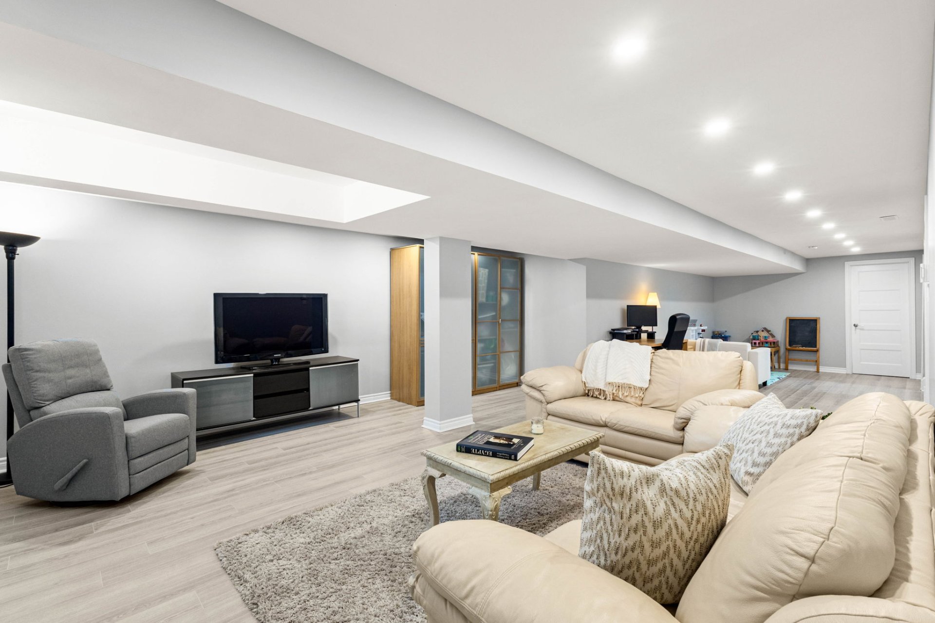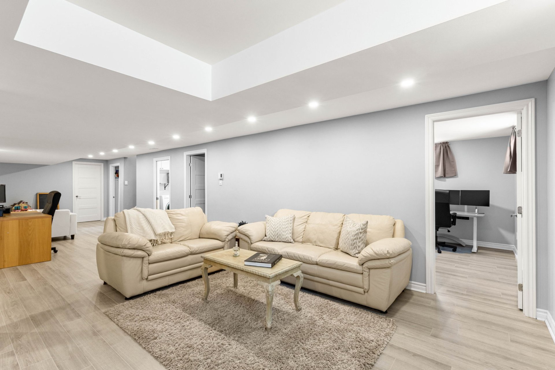 Le sous-sol entièrement aménagé offre un espace de vie supplémentaire exceptionnel avec une grande aire polyvalente, parfaite pour une salle de jeux, une salle familiale ou un gym à domicile, ainsi que trois chambres additionnelles et une salle de bain complète avec planchers chauffants et un espace buanderie, idéal pour accueillir des invités ou répondre aux besoins d’une famille grandissante.