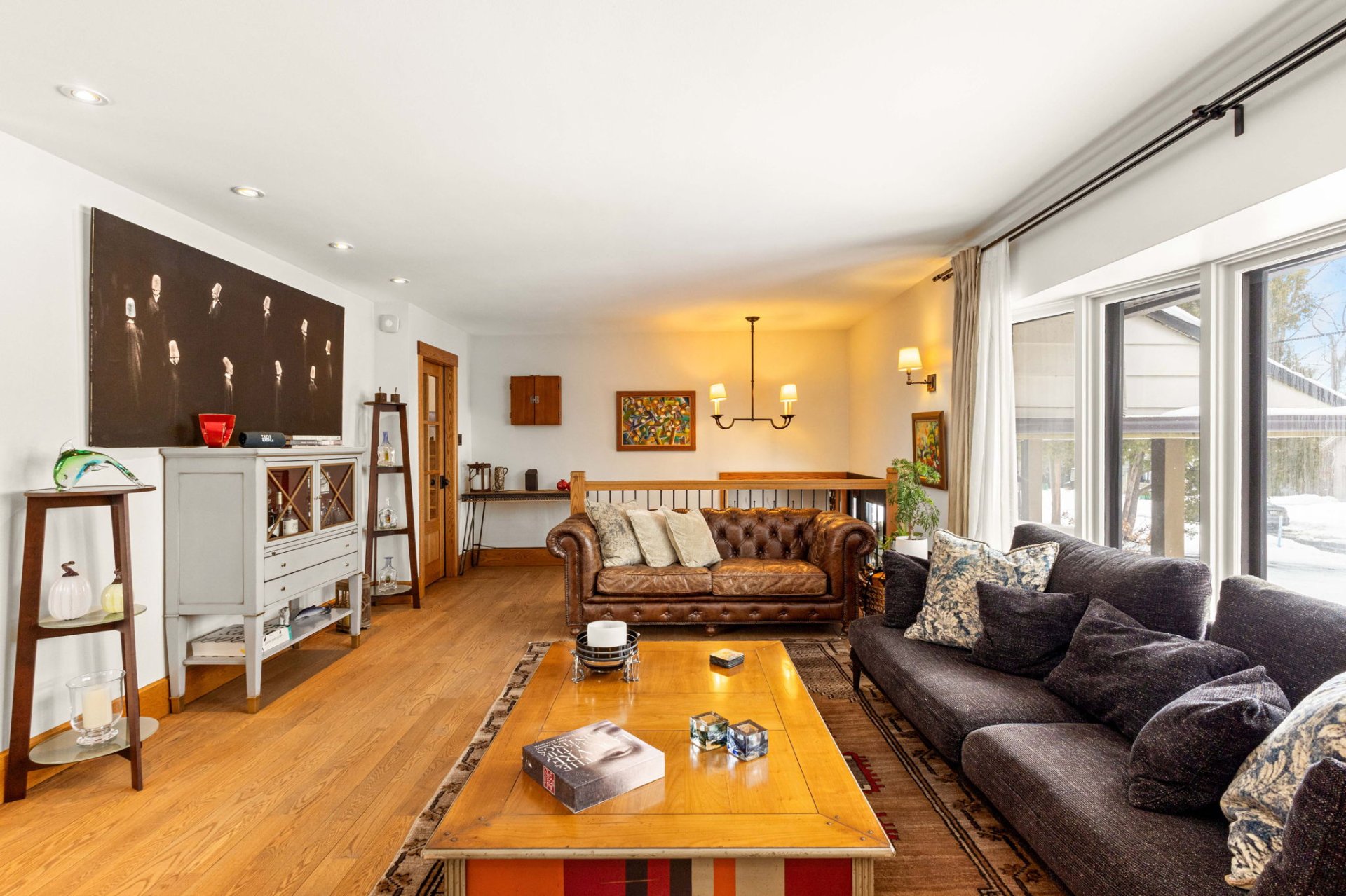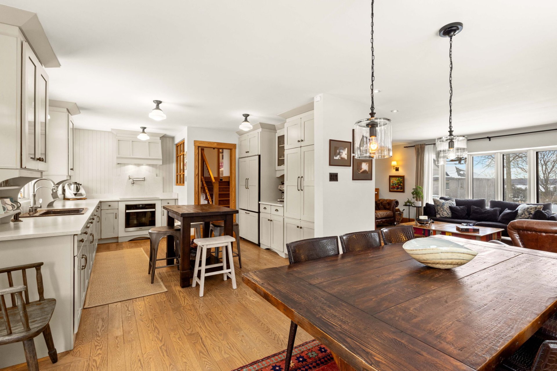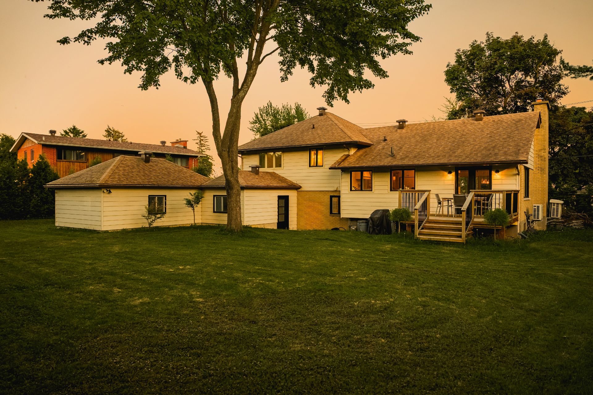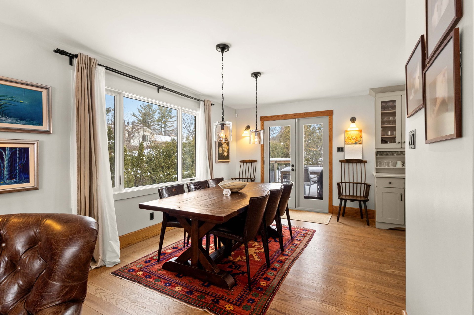 Dès l’entrée, un hall ouvert et accueillant vous mène à un salon baigné de lumière, agrémenté d’un charmant foyer en pierre au bois avec manteau en bois antique. La grande salle à manger s’ouvre, par des portes françaises, sur une vaste terrasse en bois – idéale pour recevoir à l’extérieur et profiter de la cour arrière privée et spacieuse.