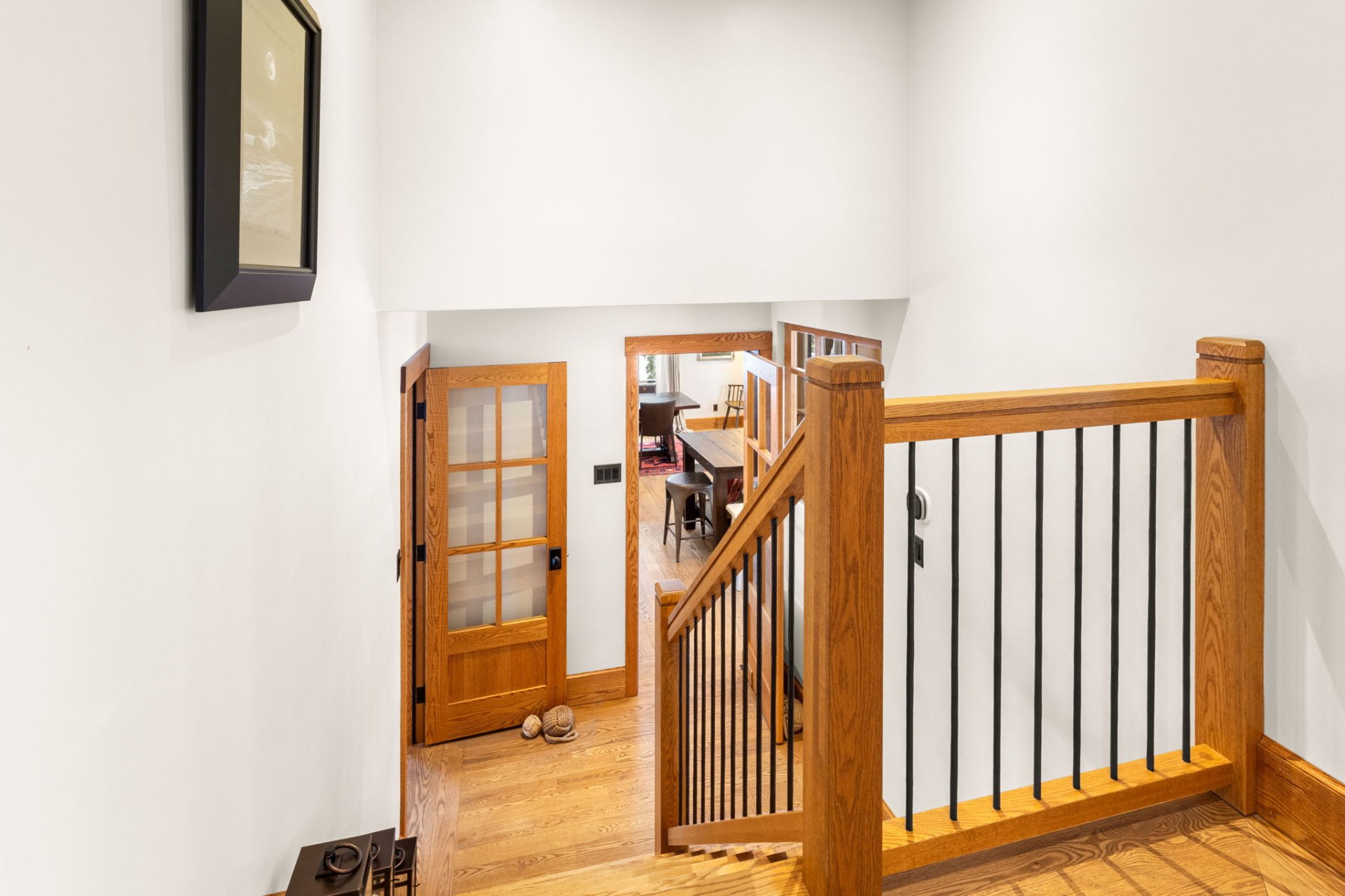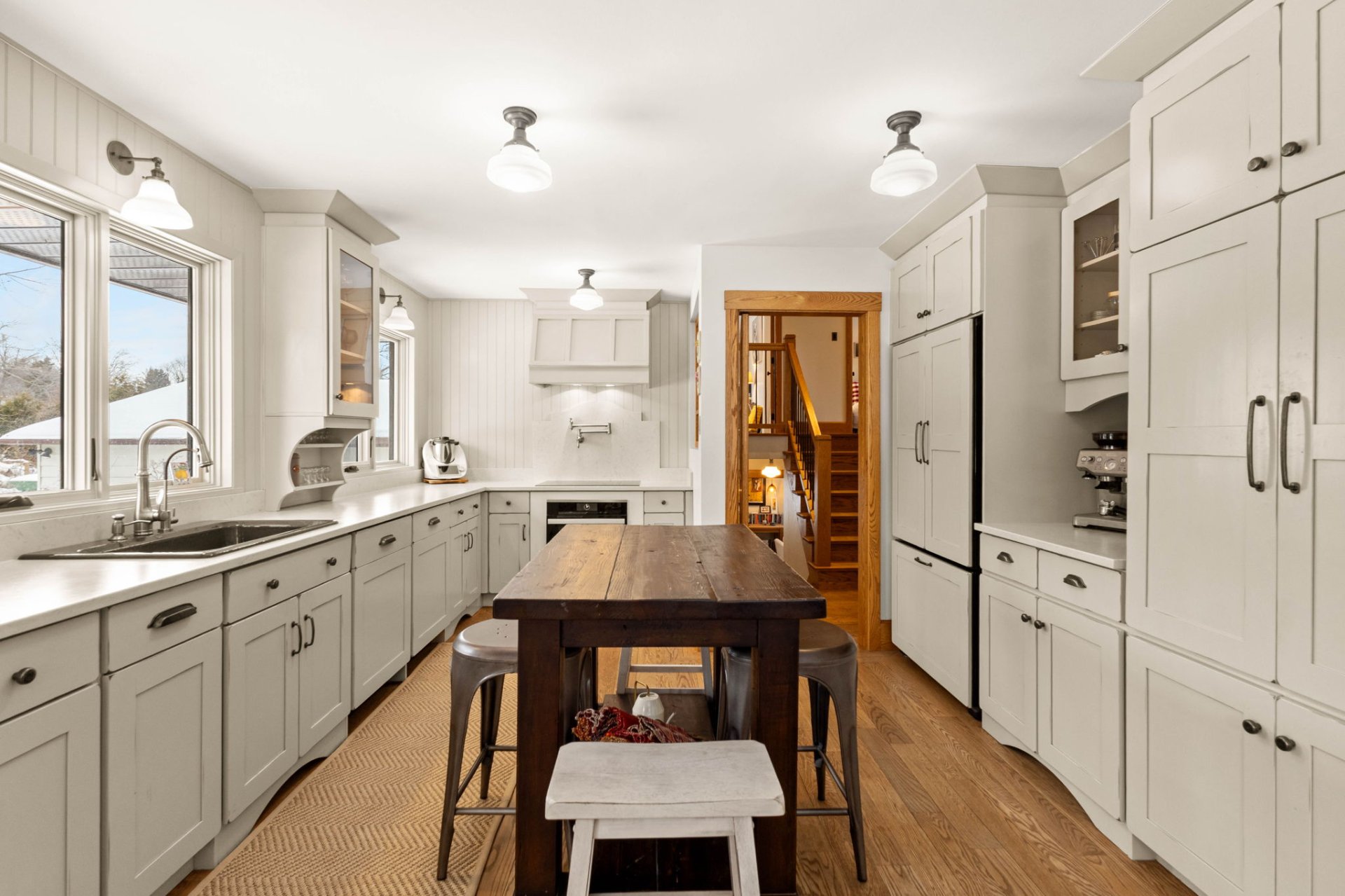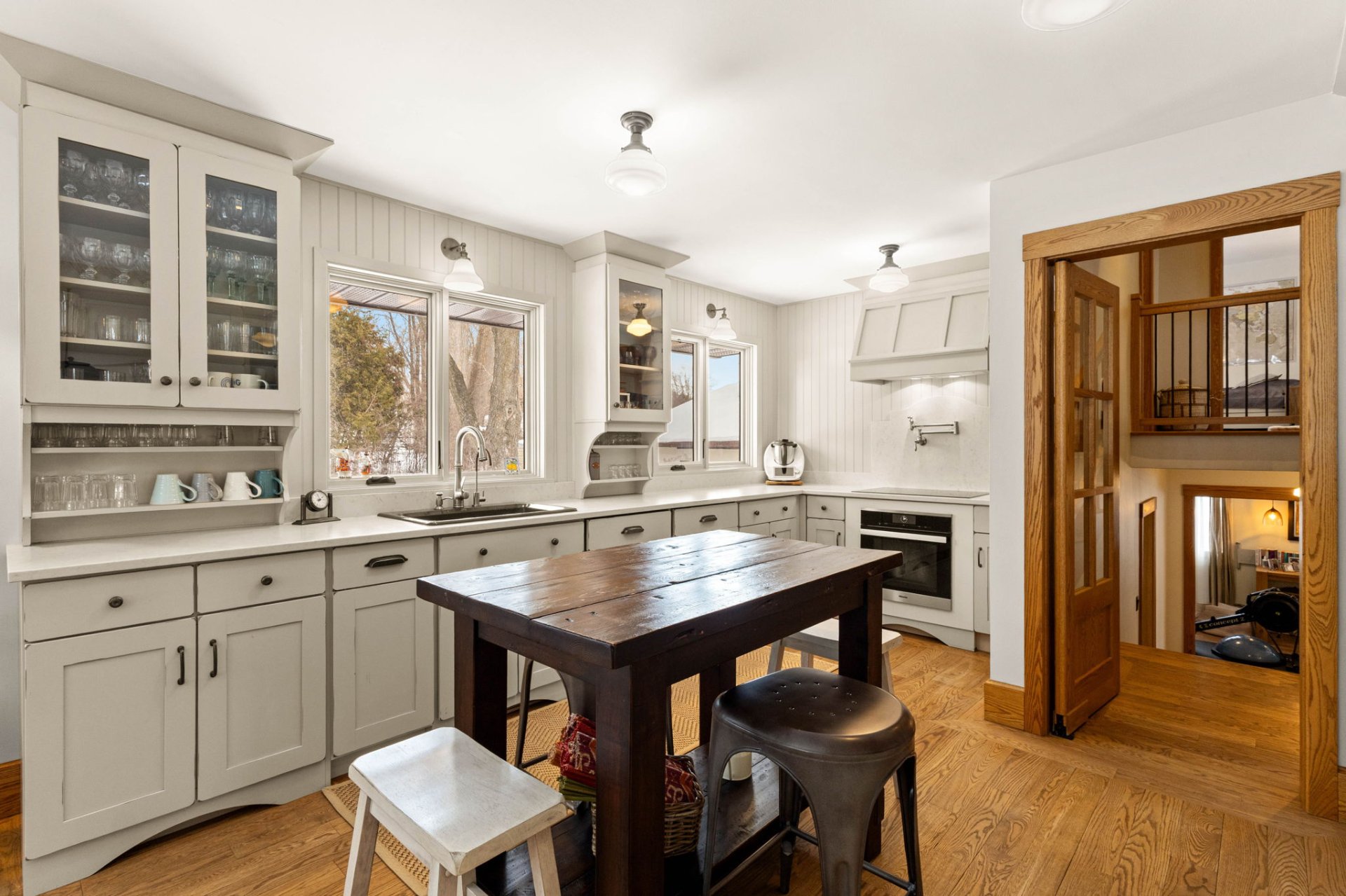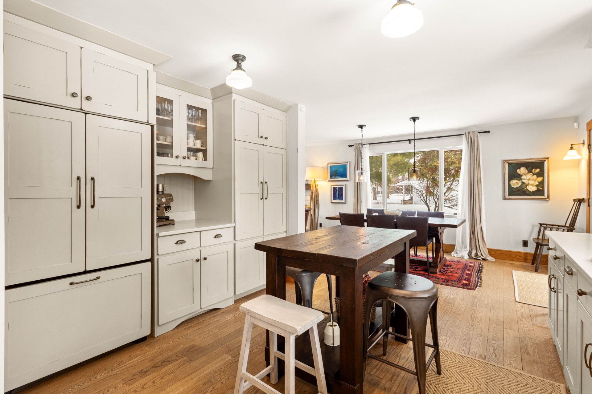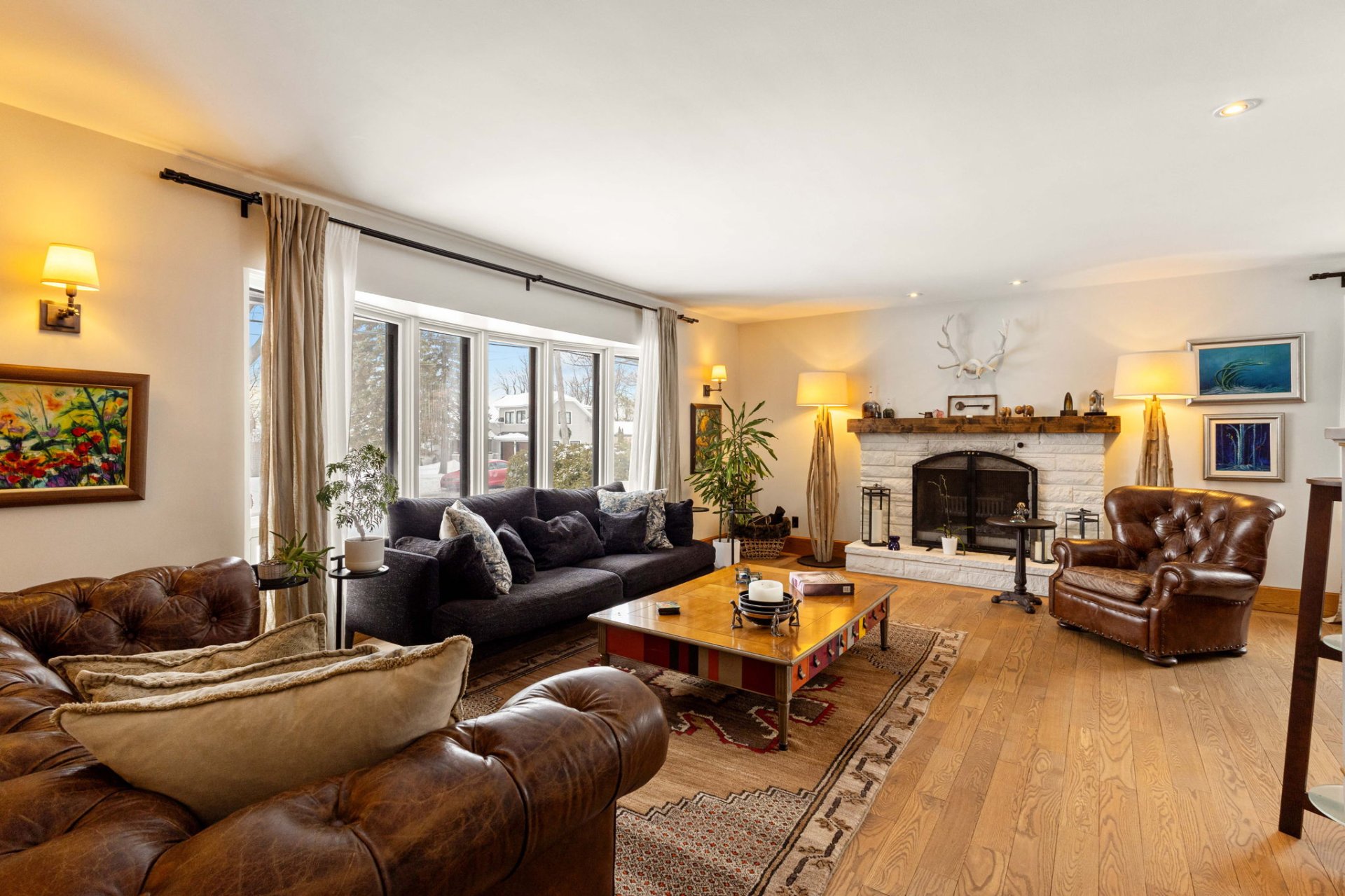 Dès l’entrée, un hall ouvert et accueillant vous mène à un salon baigné de lumière, agrémenté d’un charmant foyer en pierre au bois avec manteau en bois antique. La grande salle à manger s’ouvre, par des portes françaises, sur une vaste terrasse en bois – idéale pour recevoir à l’extérieur et profiter de la cour arrière privée et spacieuse.