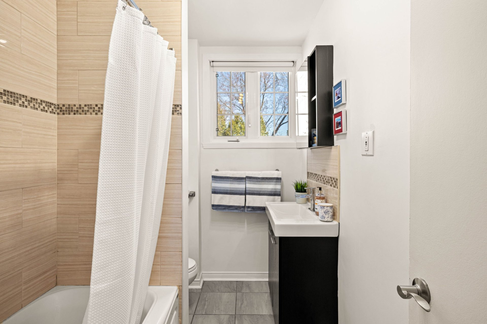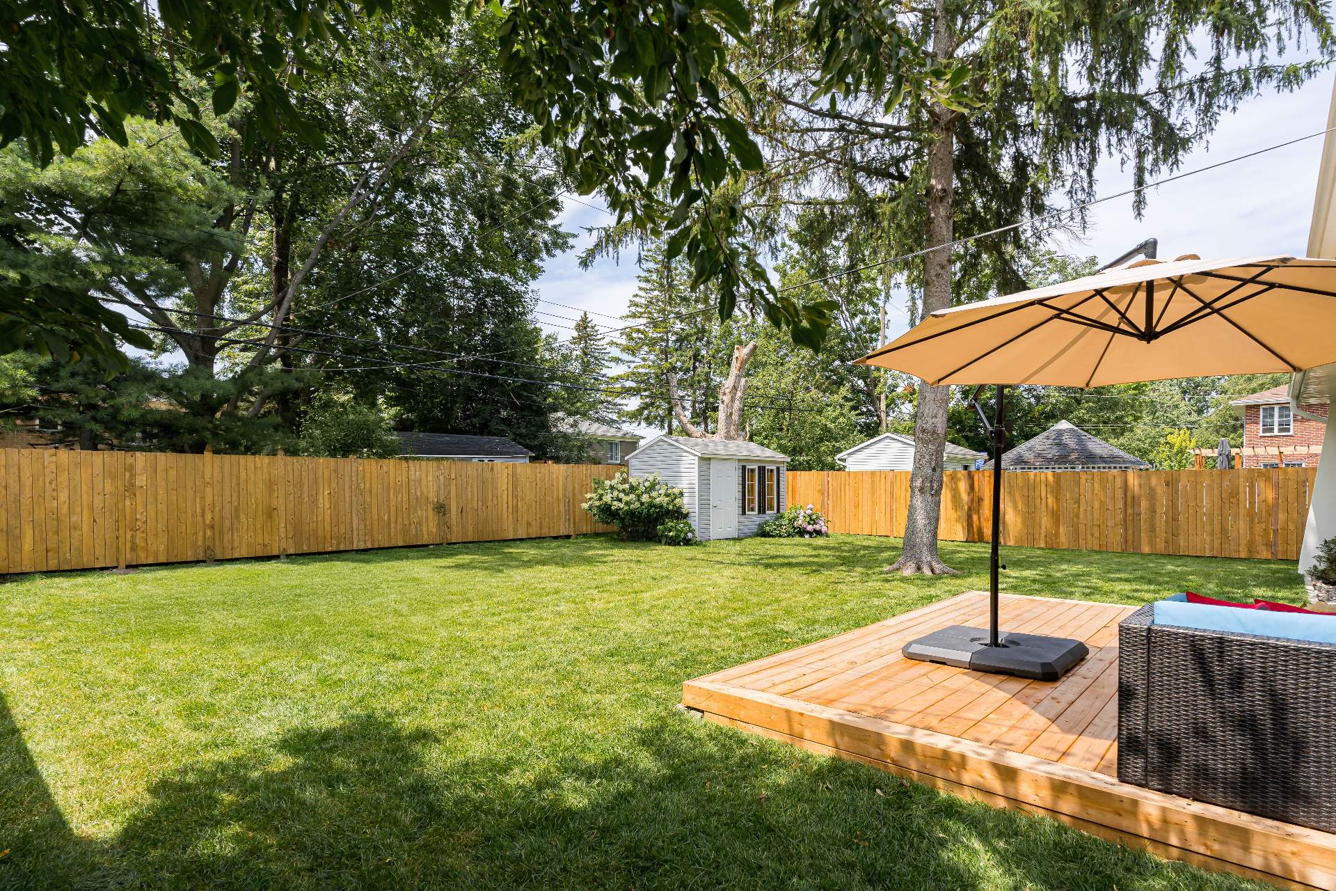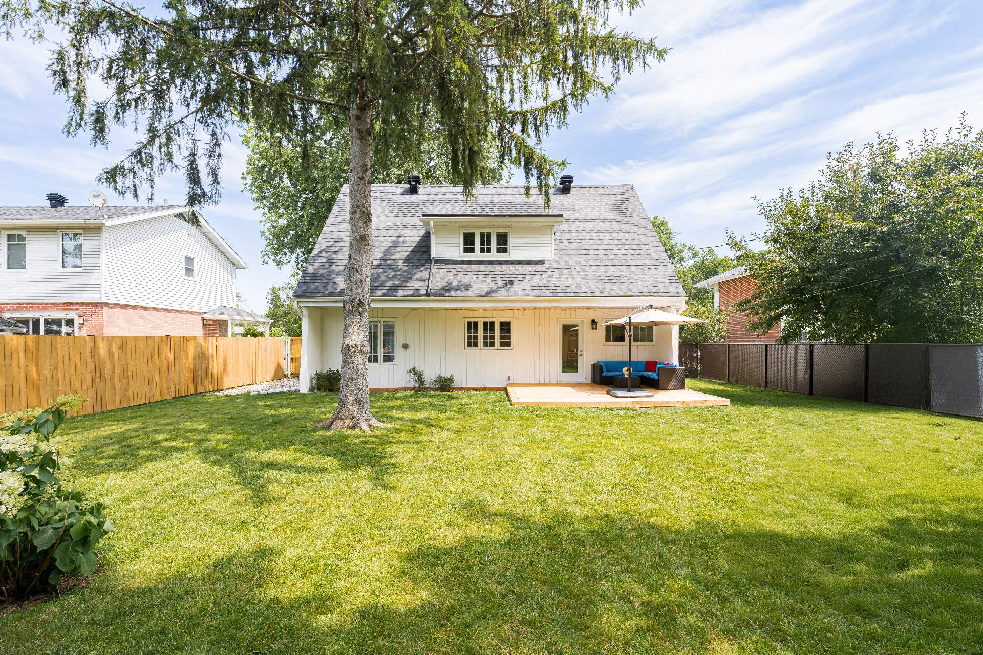 À l’extérieur, la cour arrière orientée à l’ouest est entièrement clôturée et soigneusement aménagée, comprenant un cabanon et une terrasse en bois. Entourée d’arbres matures et de verdure, elle constitue un véritable havre de paix pour profiter des beaux jours.