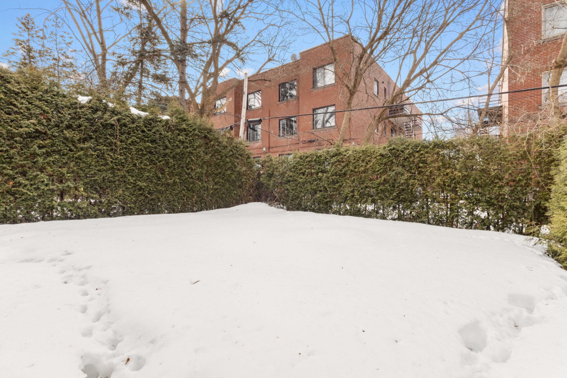 - Grande cour arrière, bordée de cèdres sur tous les côtés pour plus d’intimité.
