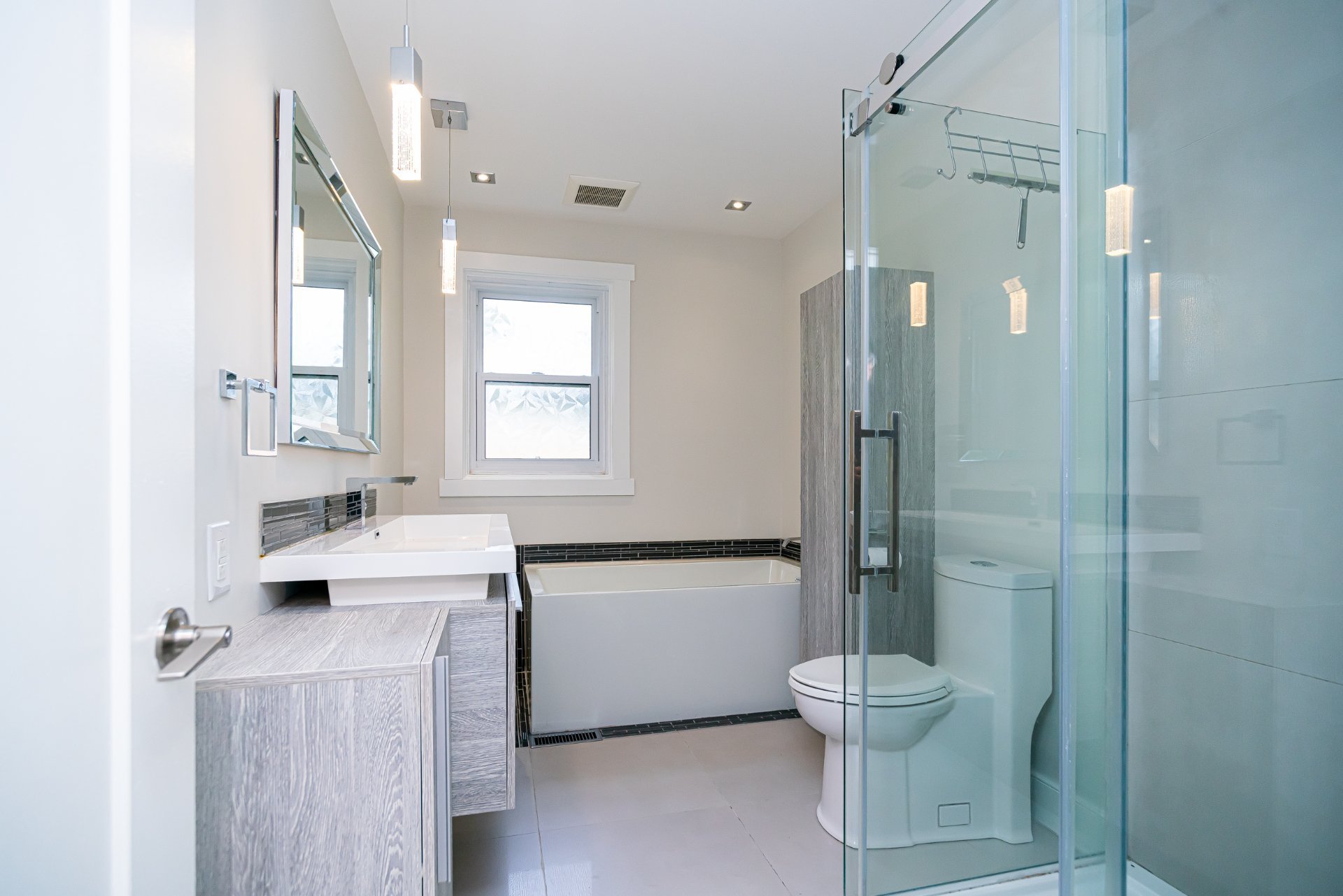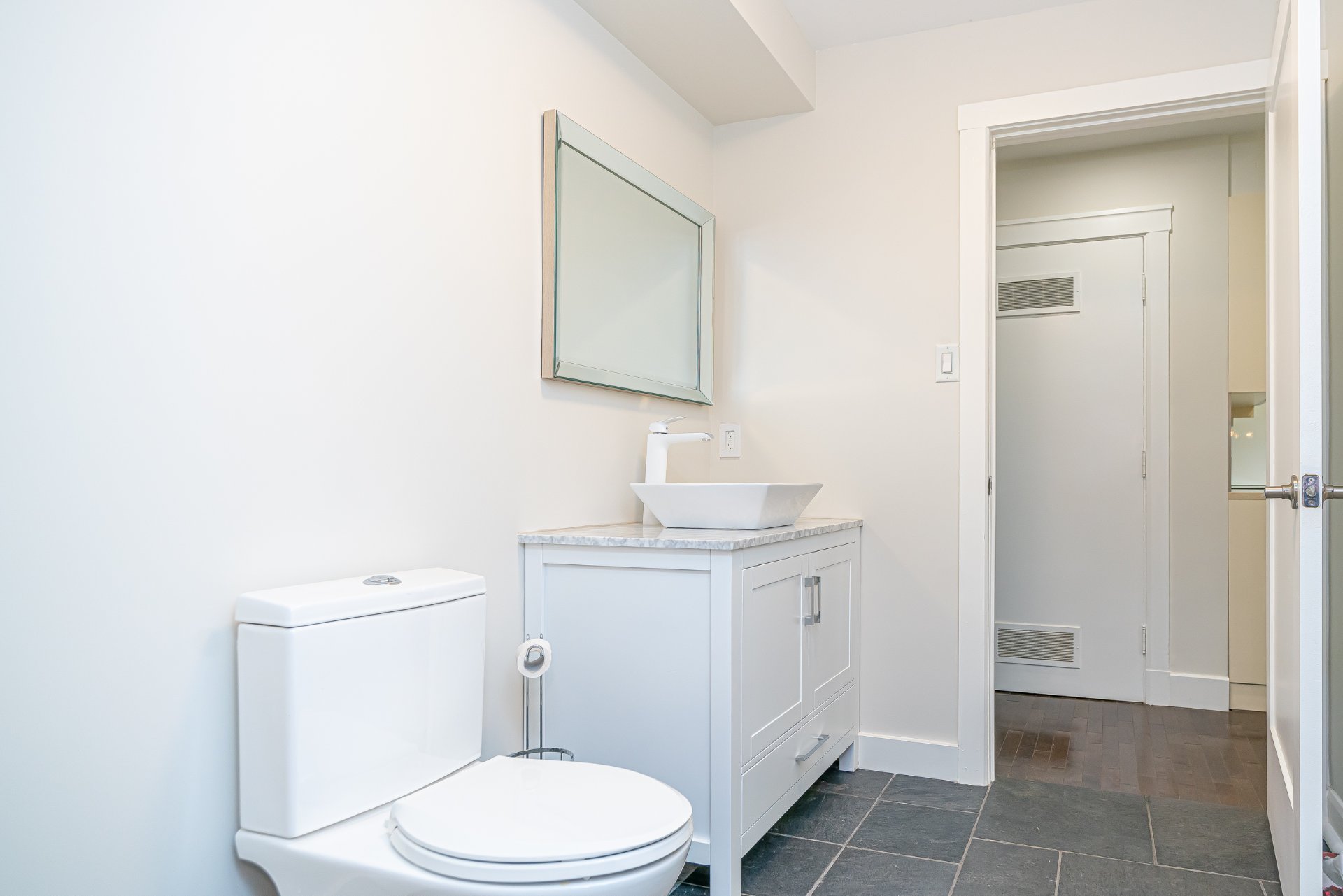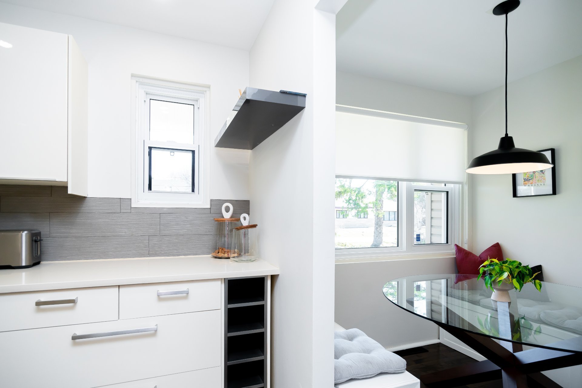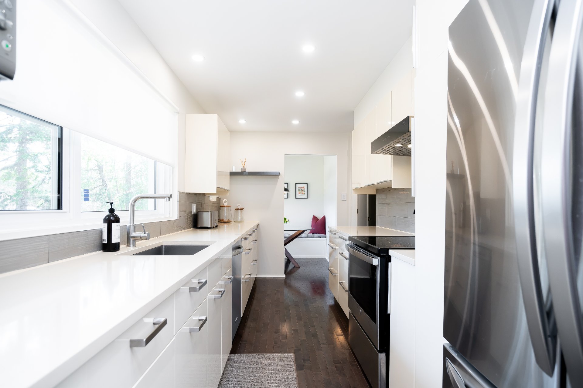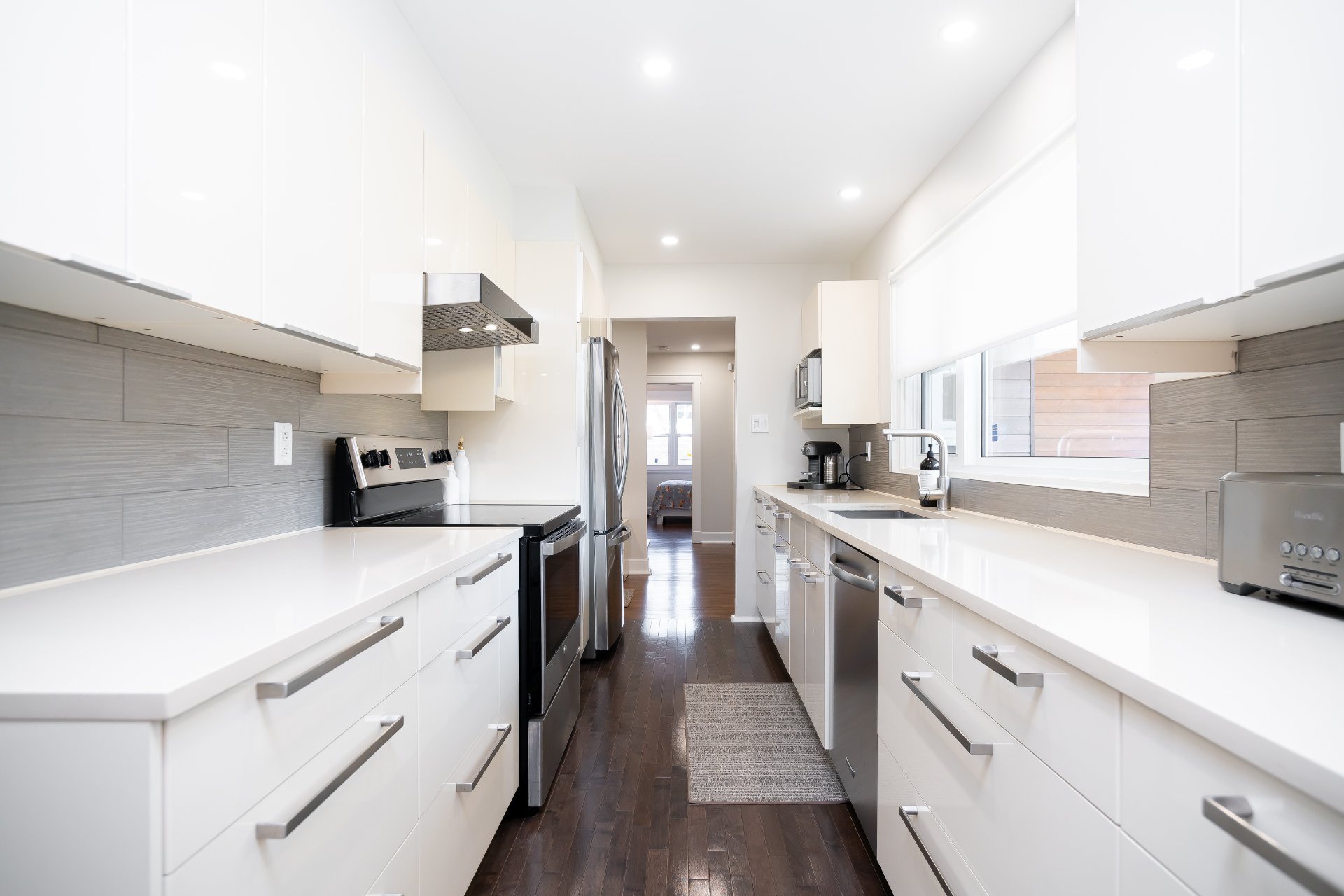 La cuisine contemporaine, à la fois épurée et élégante, est munie de comptoirs en pierre, d’armoires laquées, de quincaillerie en nickel et d’un coin-déjeuner chaleureux. Les chambres sont de dimensions généreuses, dont la chambre principale qui bénéficie d’un système de rangement sur mesure. La salle de bain principale propose une douche vitrée en céramique ainsi qu’un bain autoportant, alliant confort et raffinement.