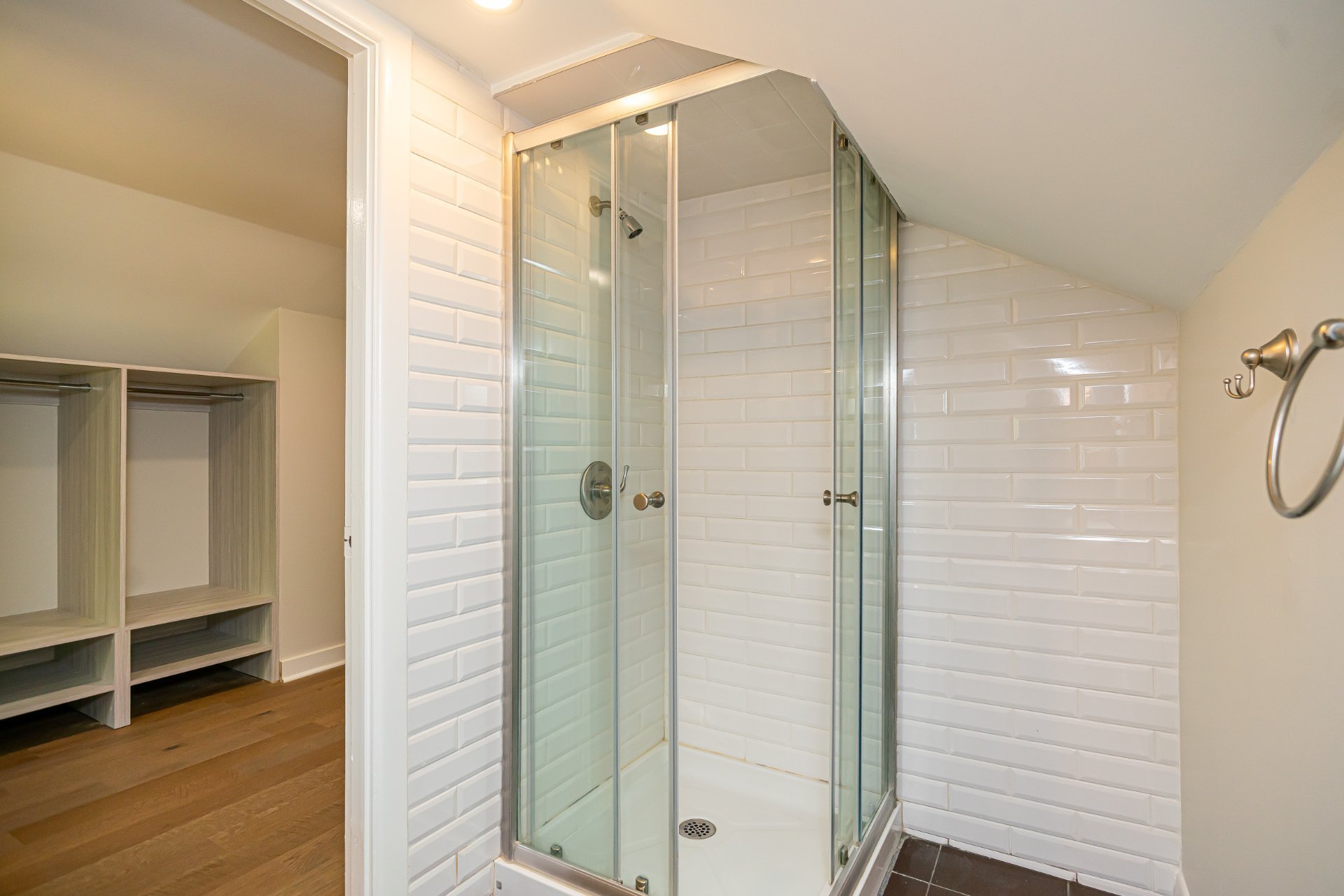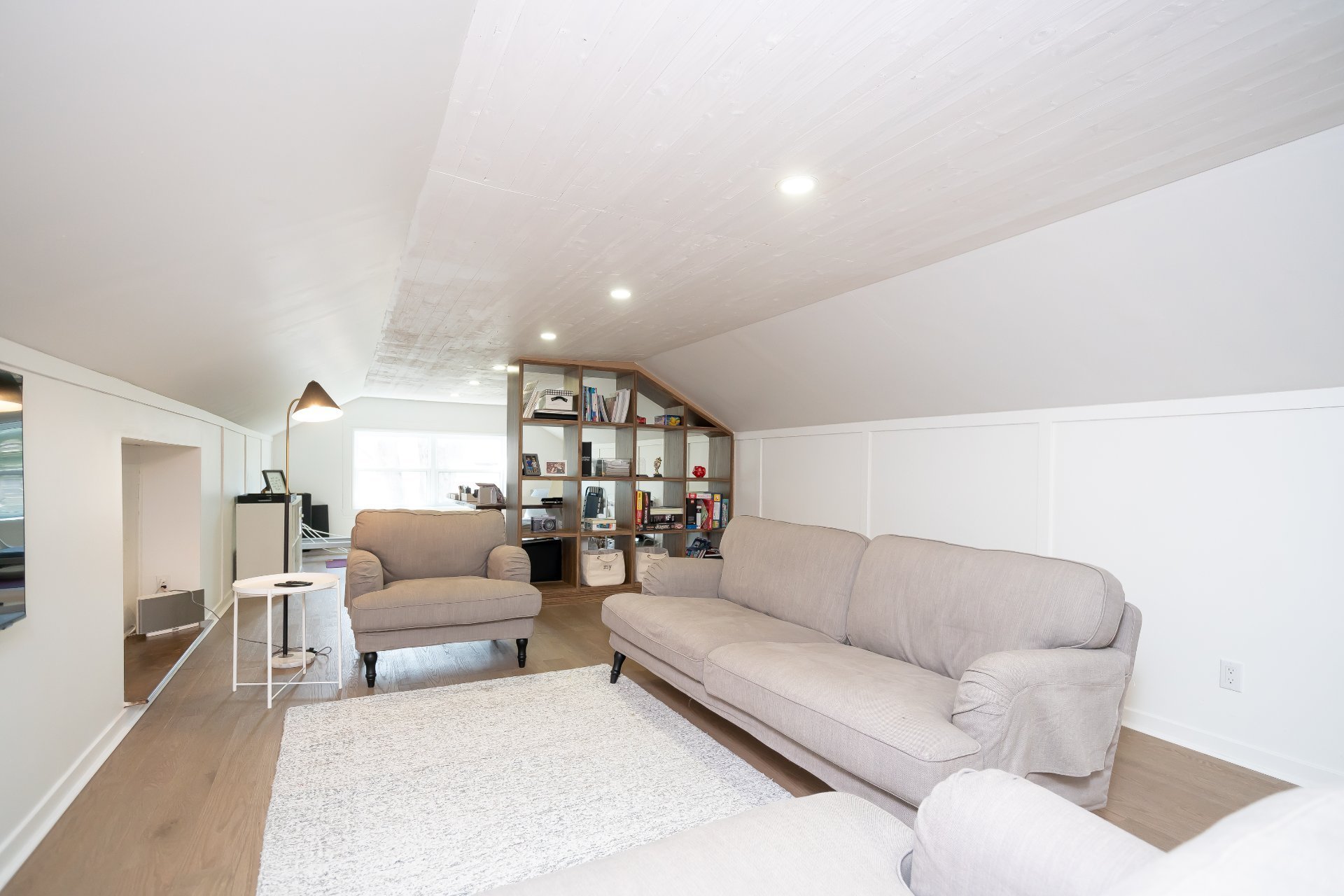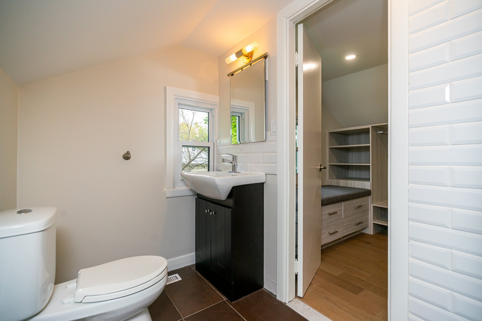 L’étage supérieur a été entièrement rénové et comprend des planchers de bois d’ingénierie, une bibliothèque intégrée, ainsi qu’un walk-in repensé avec coin maquillage et banquette près de la fenêtre,un véritable espace privé et raffiné.