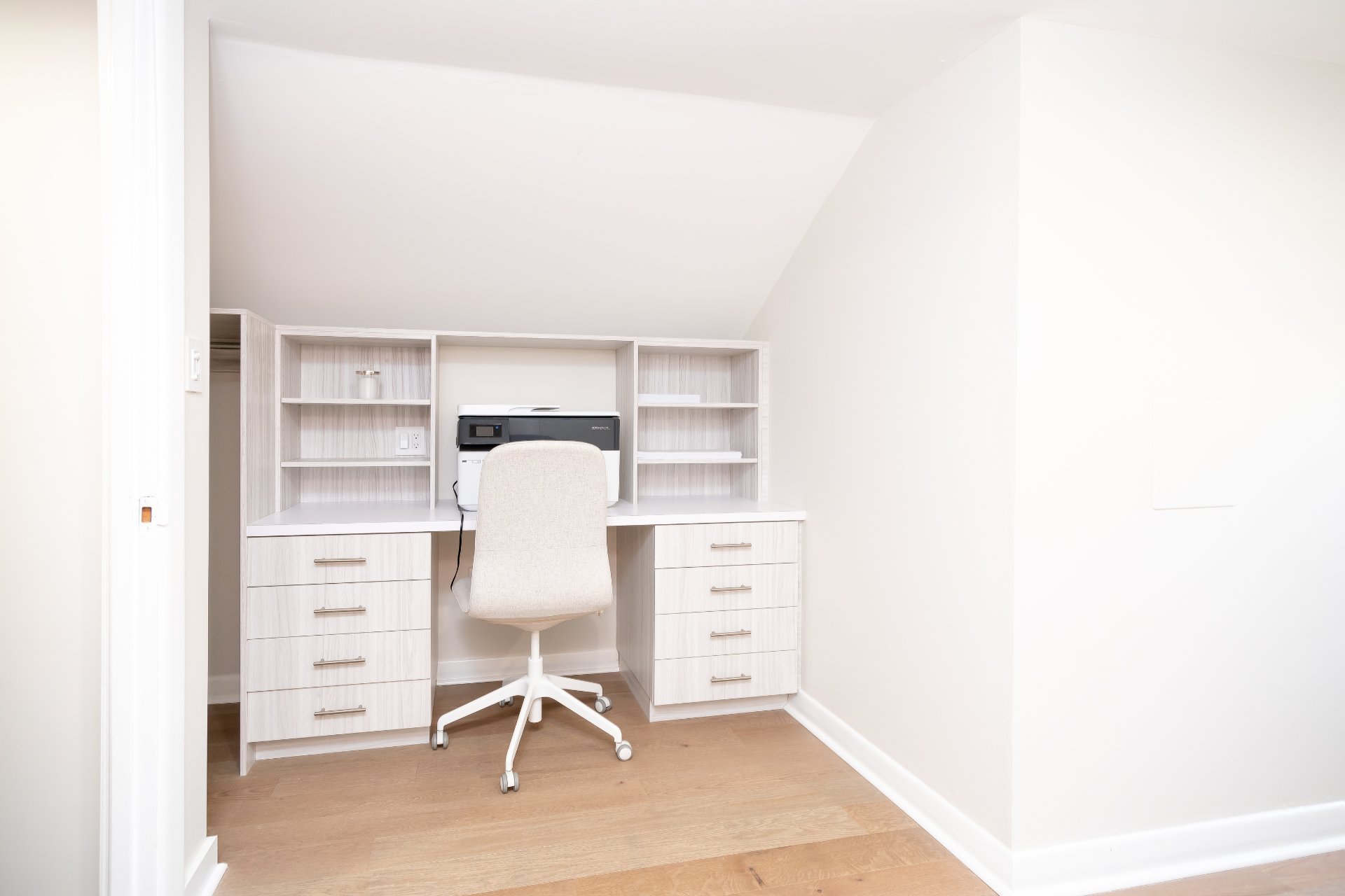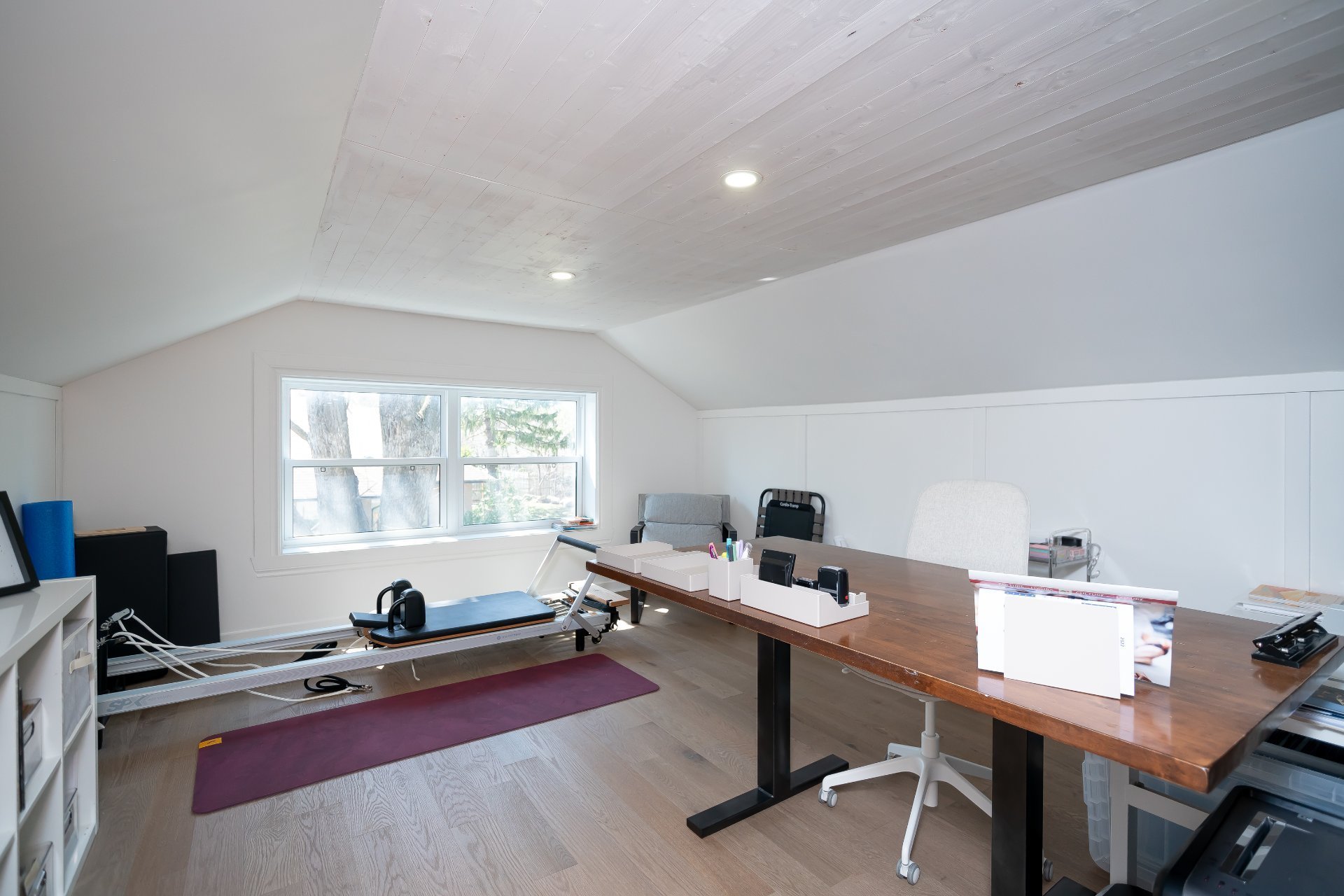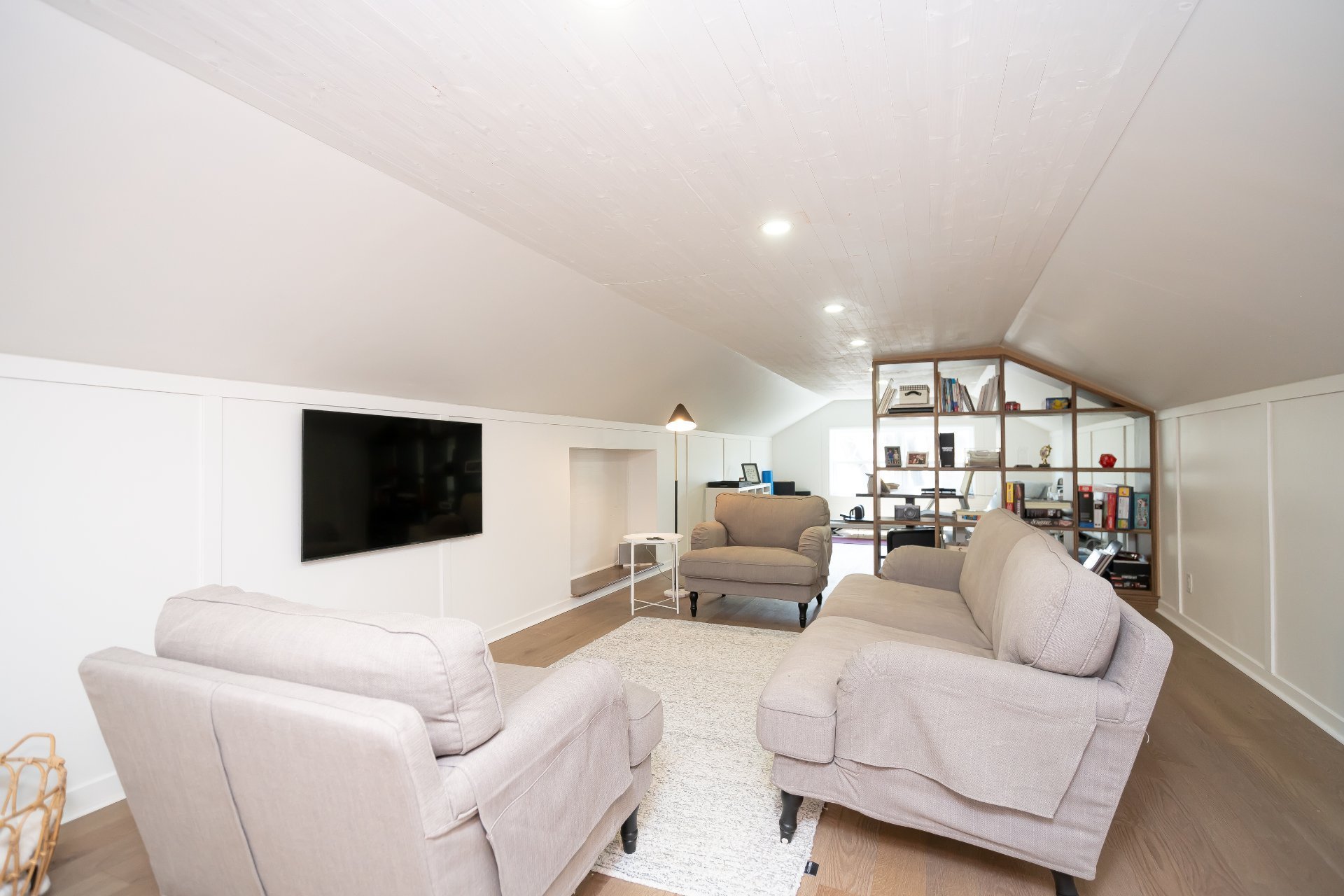 L’étage supérieur a été entièrement rénové et comprend des planchers de bois d’ingénierie, une bibliothèque intégrée, ainsi qu’un walk-in repensé avec coin maquillage et banquette près de la fenêtre,un véritable espace privé et raffiné.