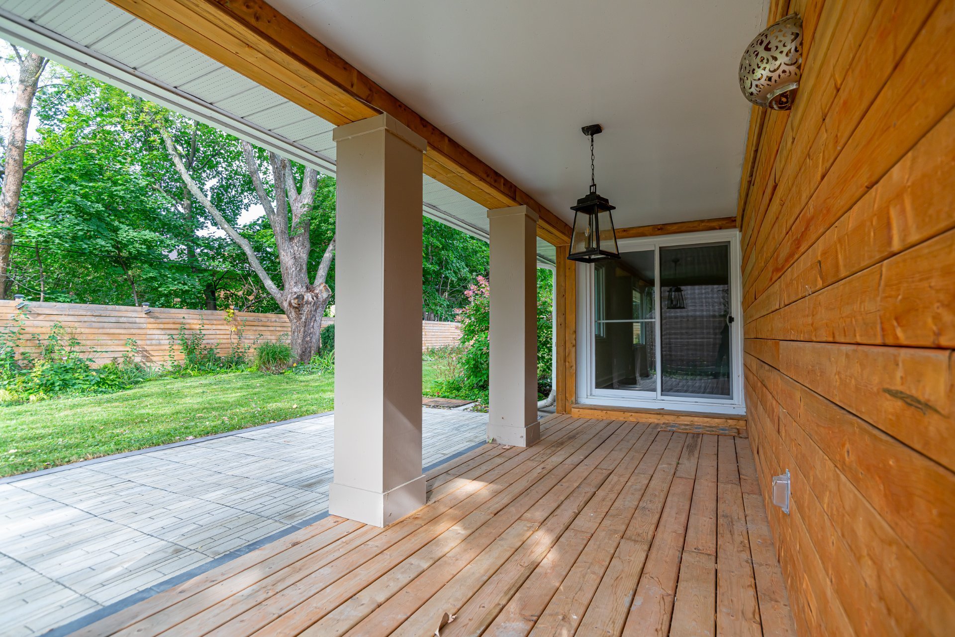 À l’extérieur, profitez d’une terrasse couverte intime et d’un patio, parfaits pour les repas en plein air et les moments de détente.