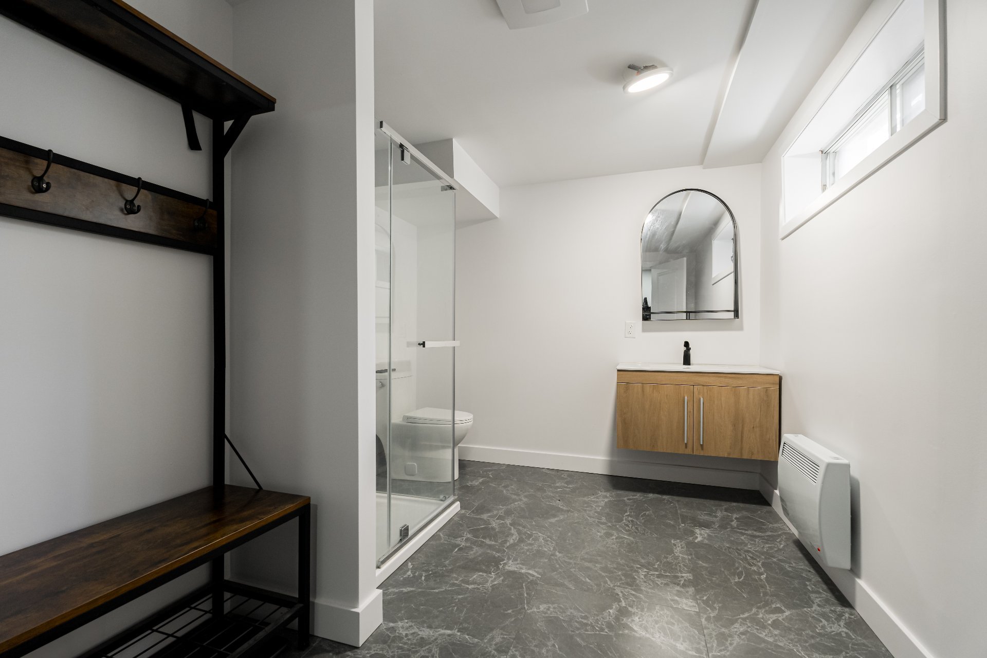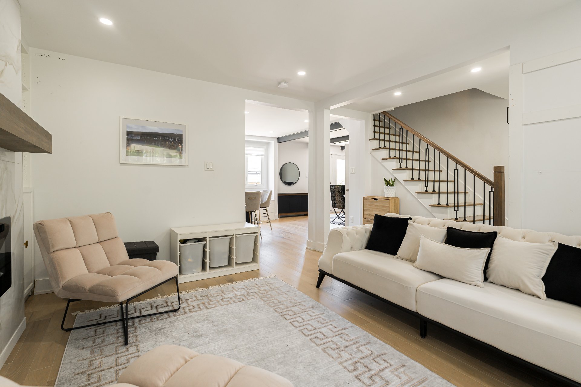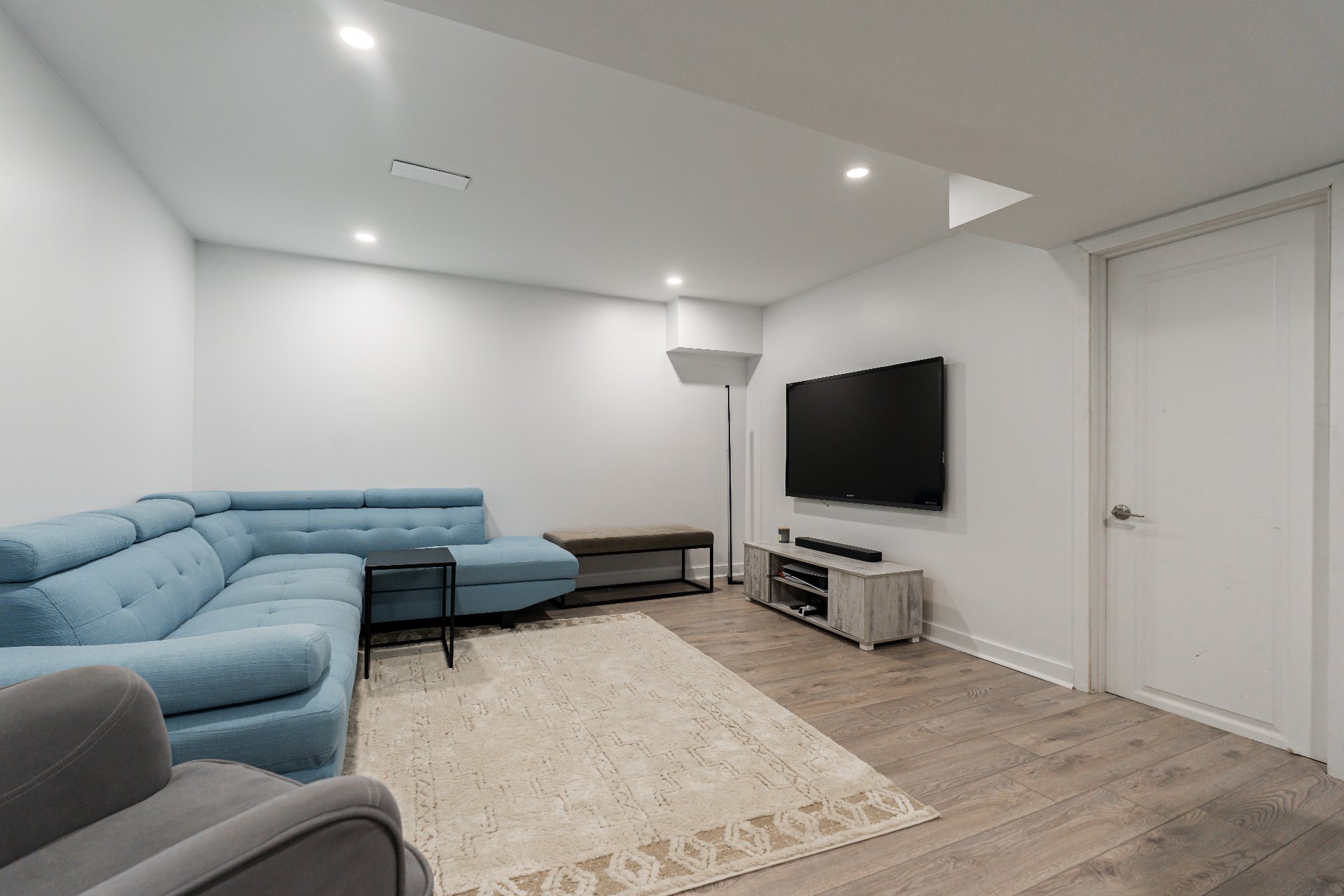 En bas, le sous-sol magnifiquement rénové comprend une salle familiale lumineuse, une salle de bain complète et deux pièces supplémentaires, offrant des possibilités infinies comme salle de jeux, gymnase, suite d’invités ou bureau à domicile.