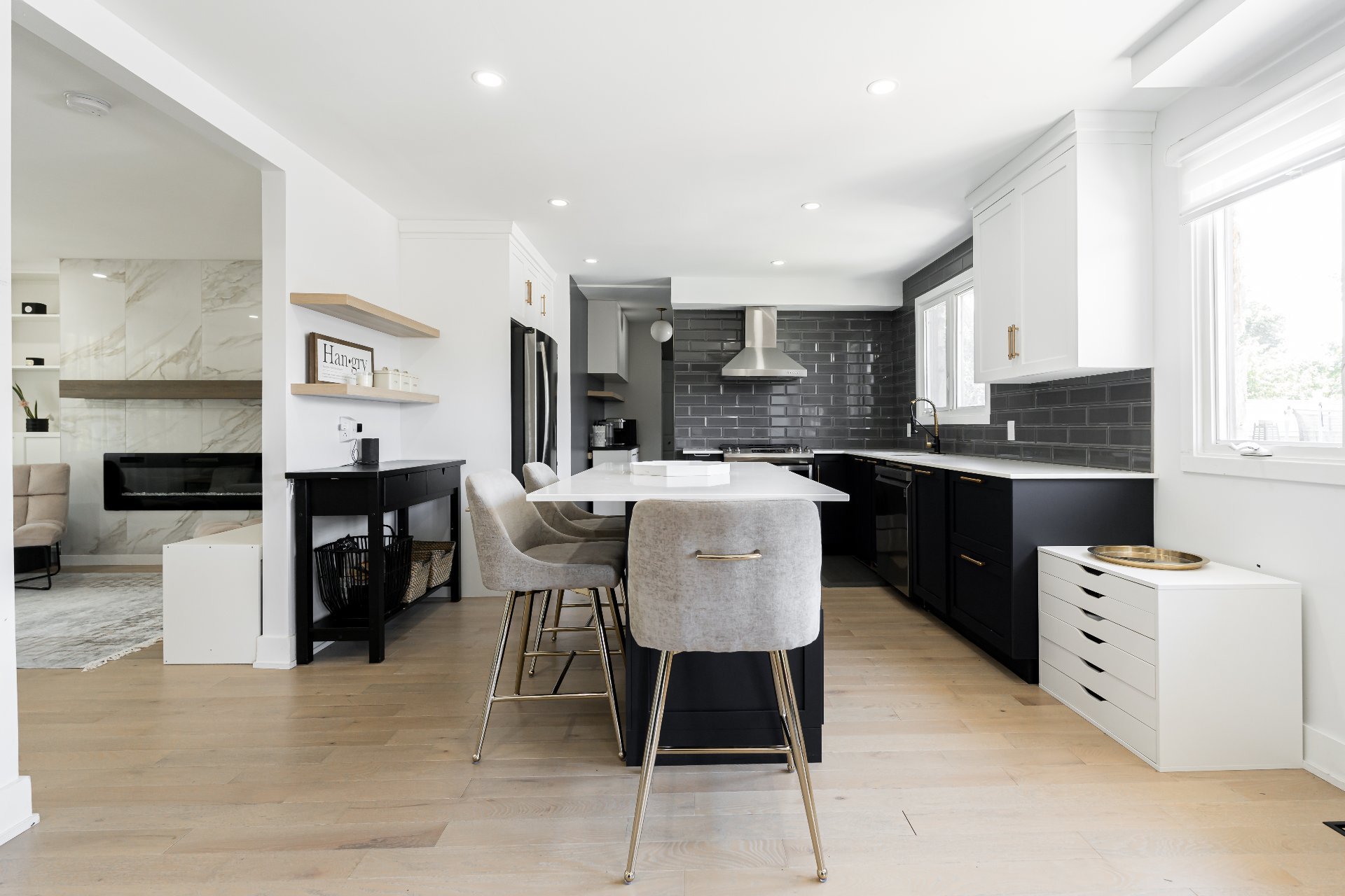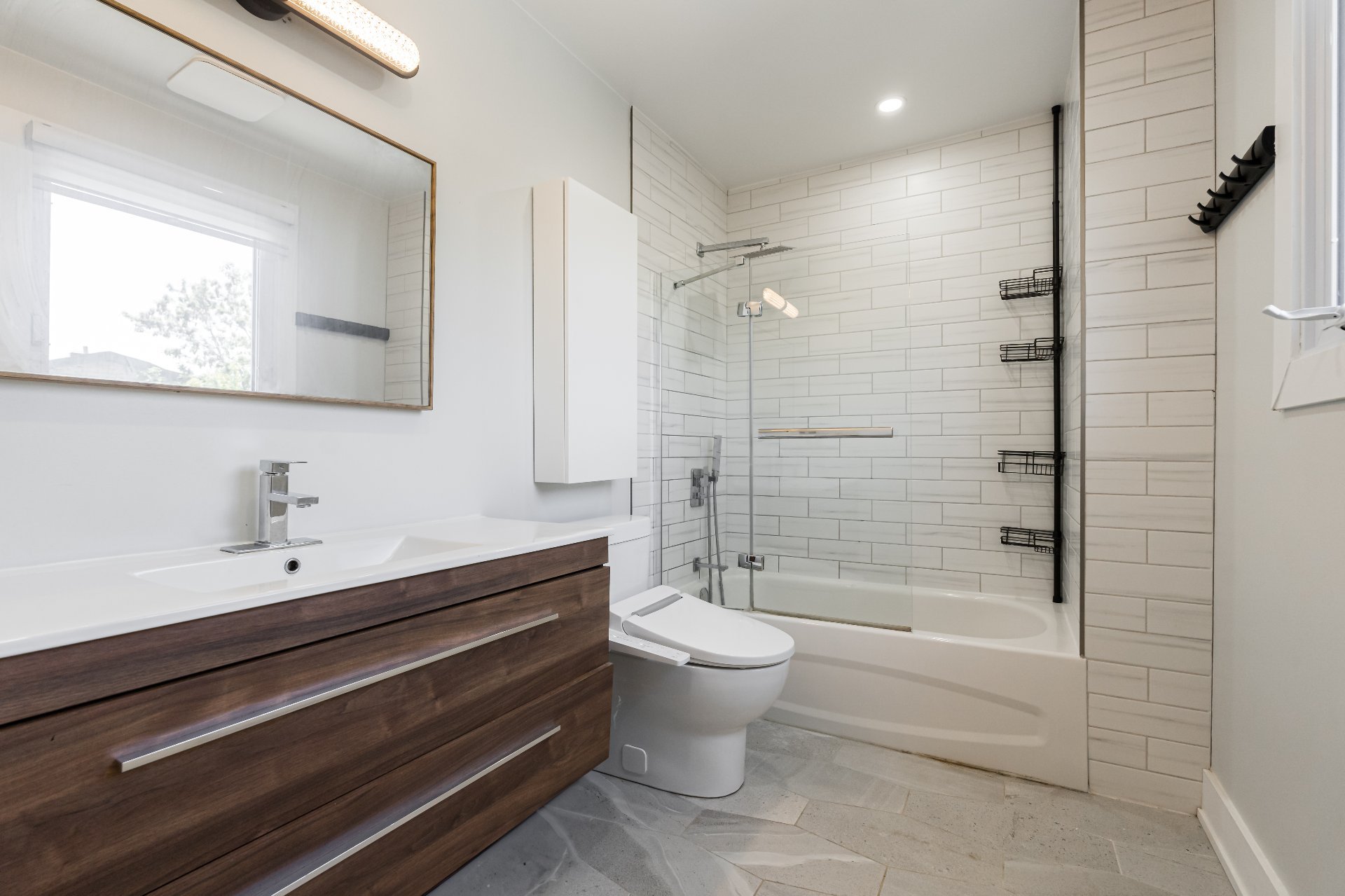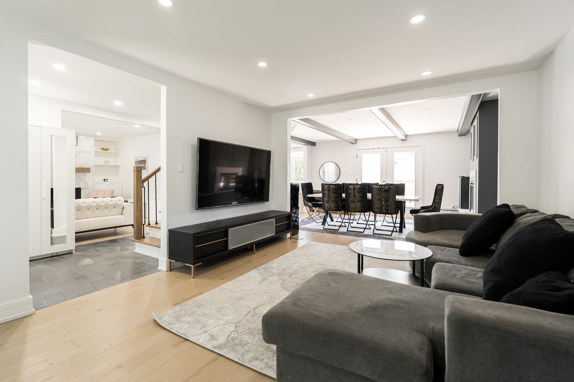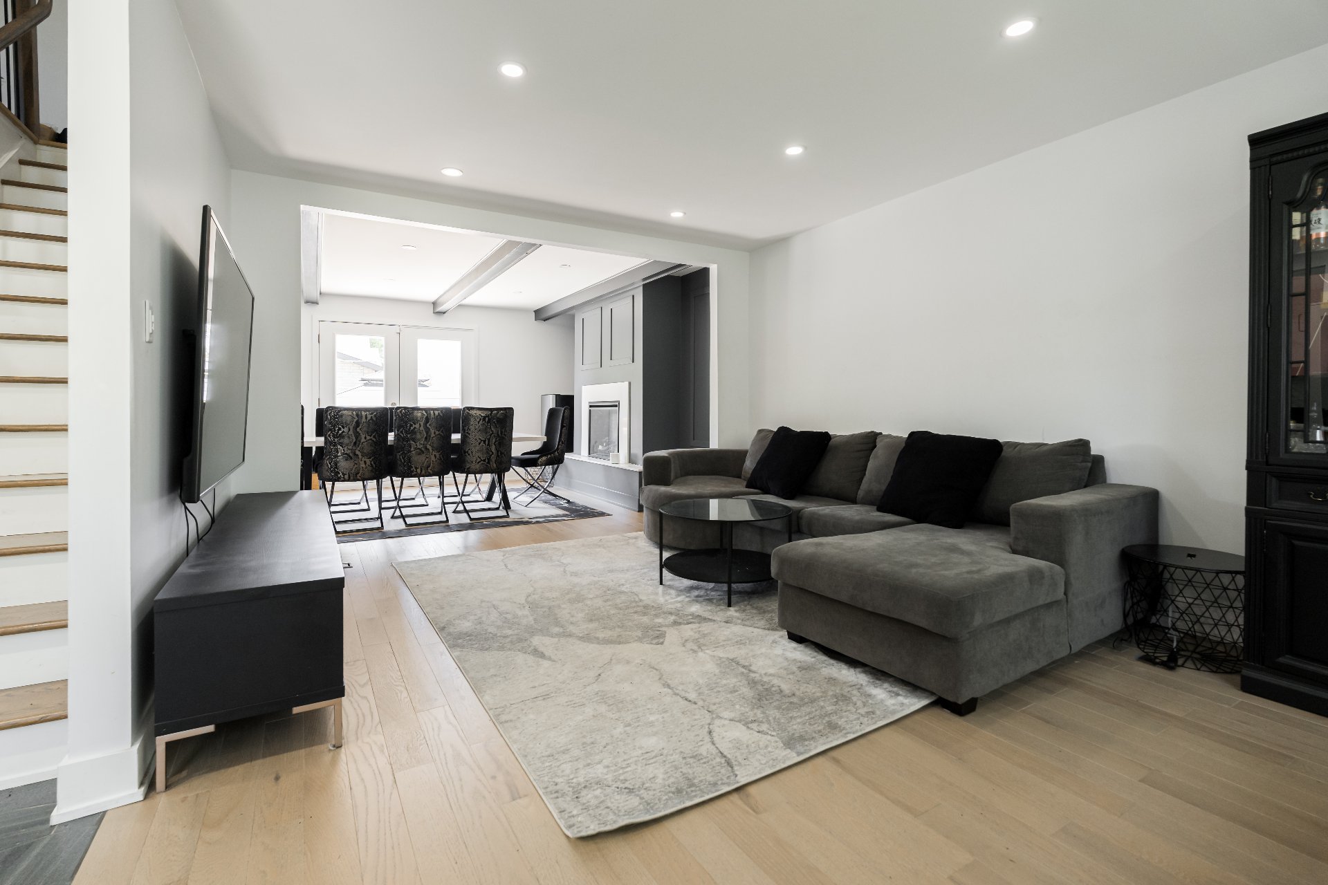 En bas, le sous-sol magnifiquement rénové comprend une salle familiale lumineuse, une salle de bain complète et deux pièces supplémentaires, offrant des possibilités infinies comme salle de jeux, gymnase, suite d’invités ou bureau à domicile.