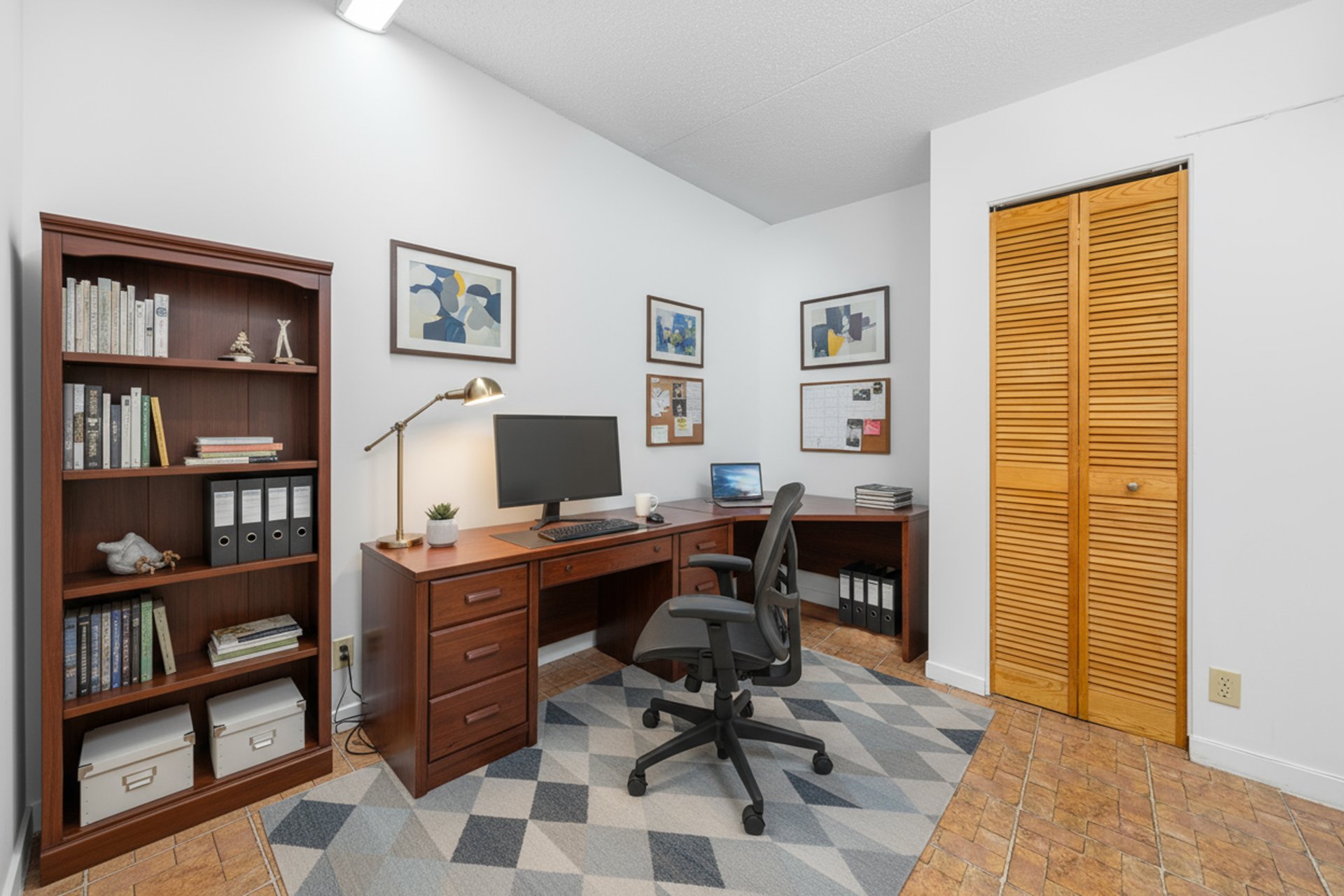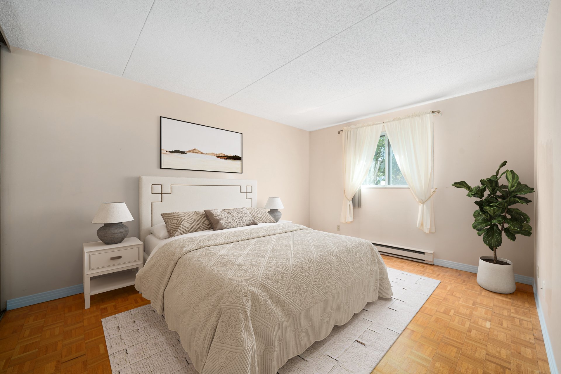 Welcome to this inviting 989 sq. ft. garden-level condo in Pierrefonds East, lovingly maintained by the same owner for 20 years. It features a spacious primary bedroom, a versatile second bedroom including a Murphy bed, an updated bathroom with double-sink vanity, a cozy living room with electric fireplace, and a flexible multipurpose room. Enjoy your private patio, two outdoor parking spaces, and a peaceful cul-de-sac location within walking distance of the waterfront, train (future REM), and amenities, with easy access to highways 13/40.