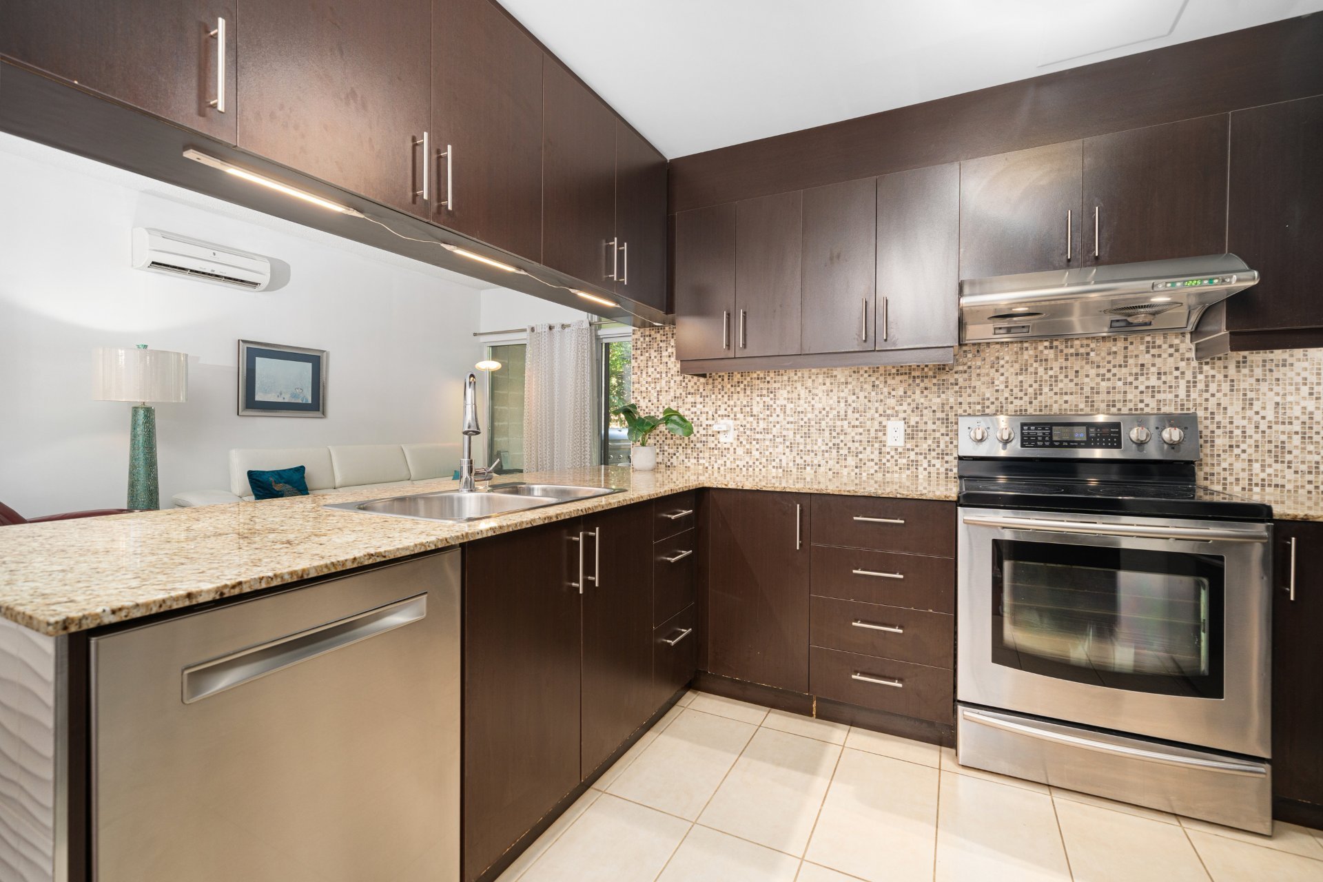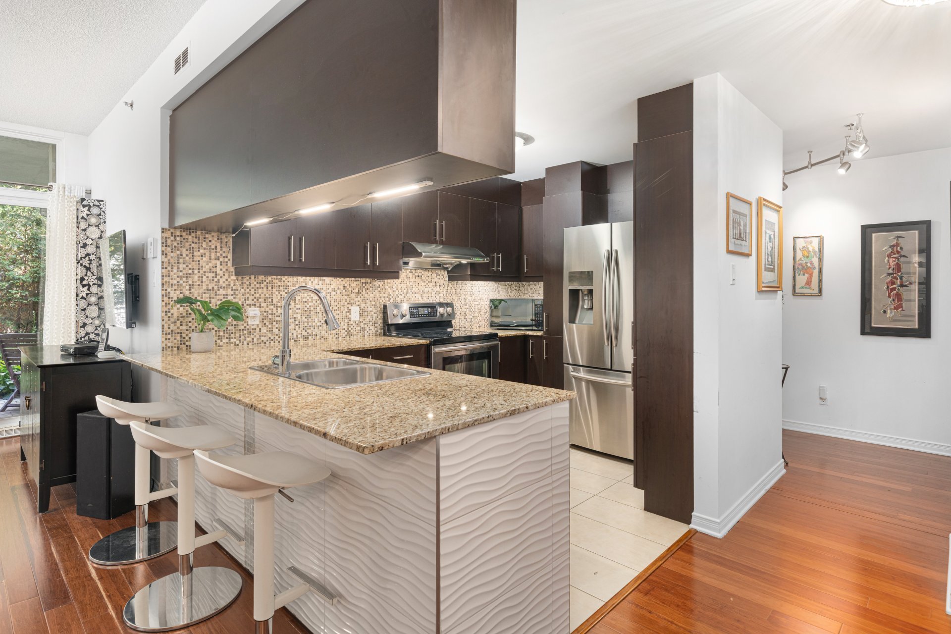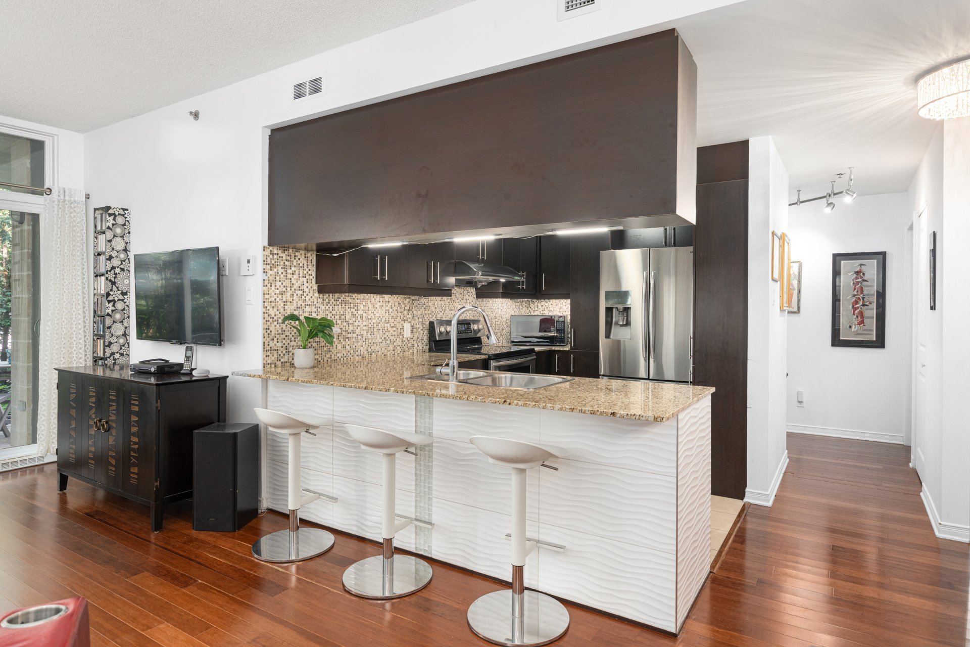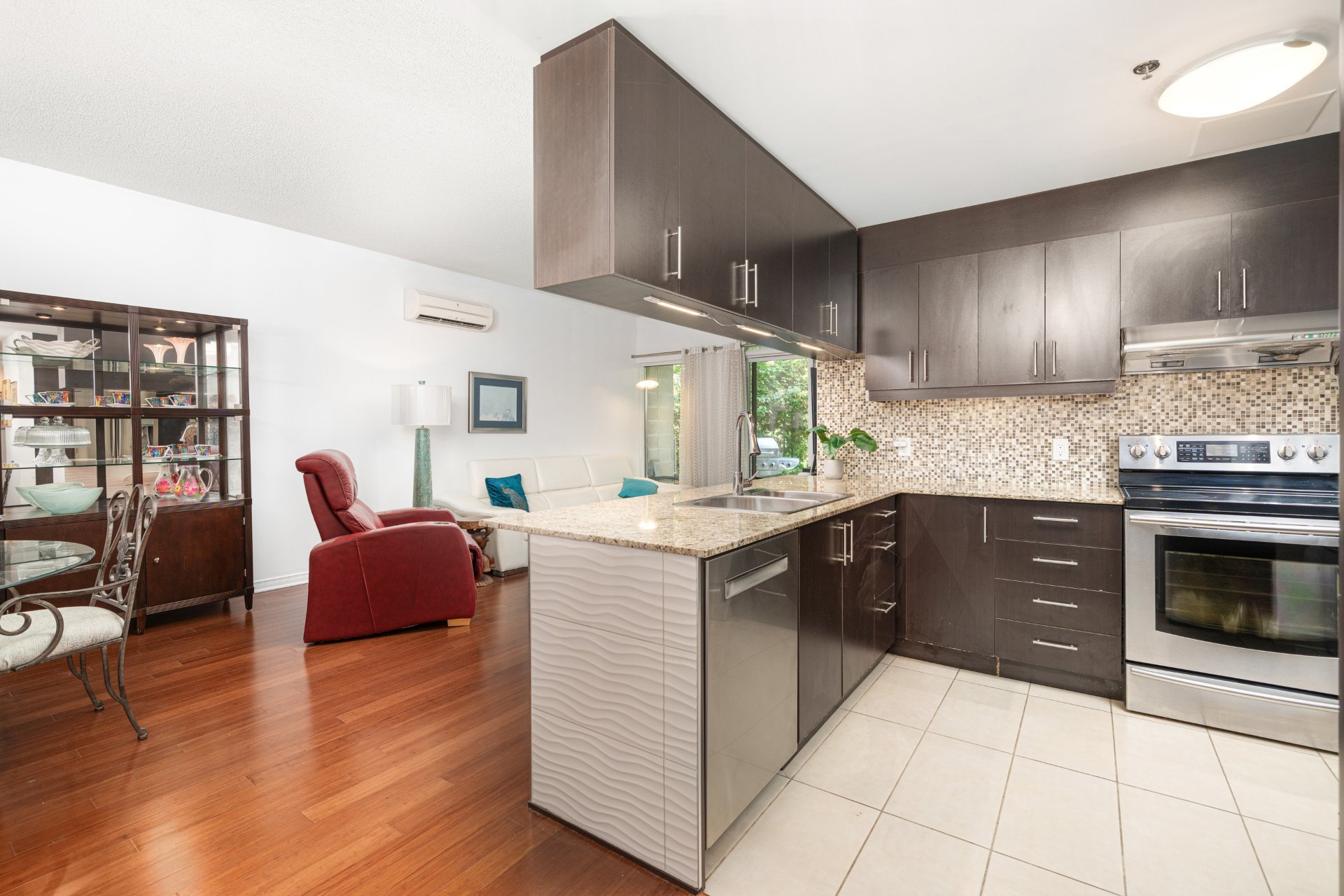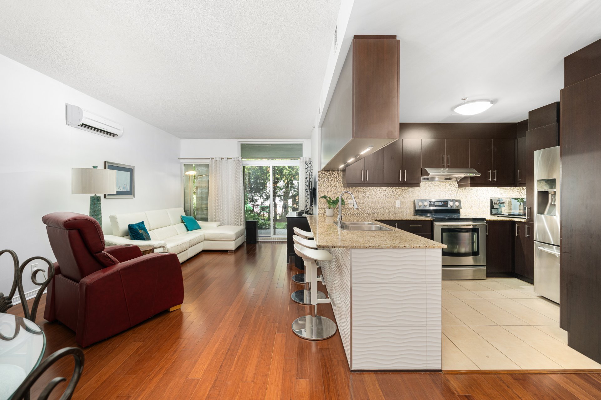 Welcome to this charming garden-level condo in the sought-after Domaine des Arches complex. Built in 2013 and nestled next to a historical manor, this 965 sq. ft. unit offers the perfect blend of modern comfort and tranquil surroundings. Featuring 2 bedrooms and 2 full bathrooms, including a recently refreshed ensuite, the layout is ideal for both privacy and functionality. The open-concept kitchen boasts granite countertops and flows effortlessly into the dining and living areas, creating an inviting space for everyday living or entertaining. Step outside to your private patio–perfect for morning coffee or winding down at the end of the day. Located on a peaceful cul-de-sac, this condo is within walking distance to the waterfront (but not in a flood zone), the Roxboro-Pierrefonds train station (future REM) and several amenities. Easy access to Boul. Gouin O., Boul. Des Sources, and highways 13/40 will make commuting a breeze. The unit comes with indoor parking and a storage locker. A rare opportunity to enjoy a peaceful, connected lifestyle in a well-managed community! - 60m from IGA - 330m from Gouin bus stop servicing buses #68, #213, #382 and #468 - 500m from boul. Des Sources - 625m from the new Pierrefonds-Roxboro REM scheduled for completion in 2026 - 800m from Montessori Academy, 1km from Riverdale High School, 2km from Charles-Perrault Primary - 1km from Parc-nature des Rapides-du-Cheval-Blanc - 4km from highway 13 and highway 40 - Within a 15-minute drive to Ville Saint-Laurent, DDO, Pointe-Claire and all West Island amenities *Note that this property does not appear in a flood zone per the governmental flood map websites at our disposal on the date of the listing.