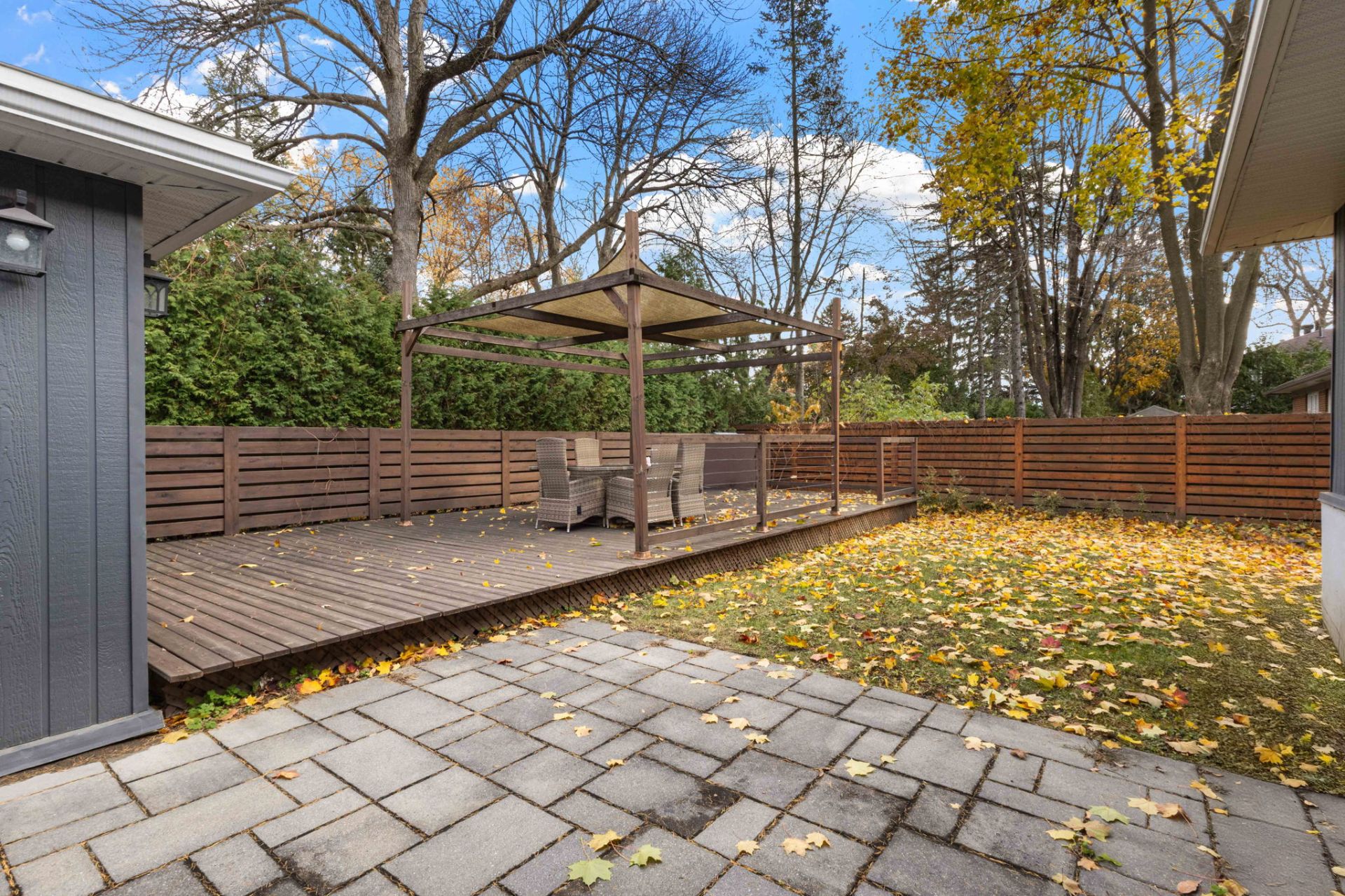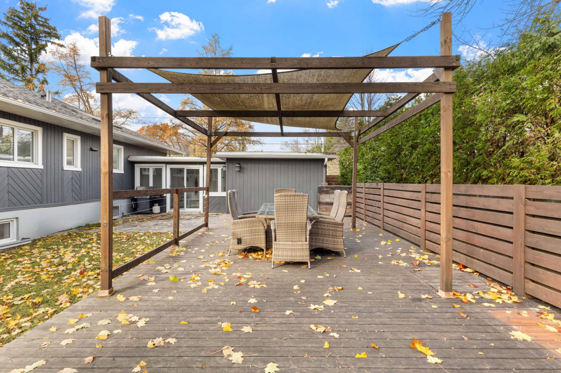 - patio set and pergola canopy