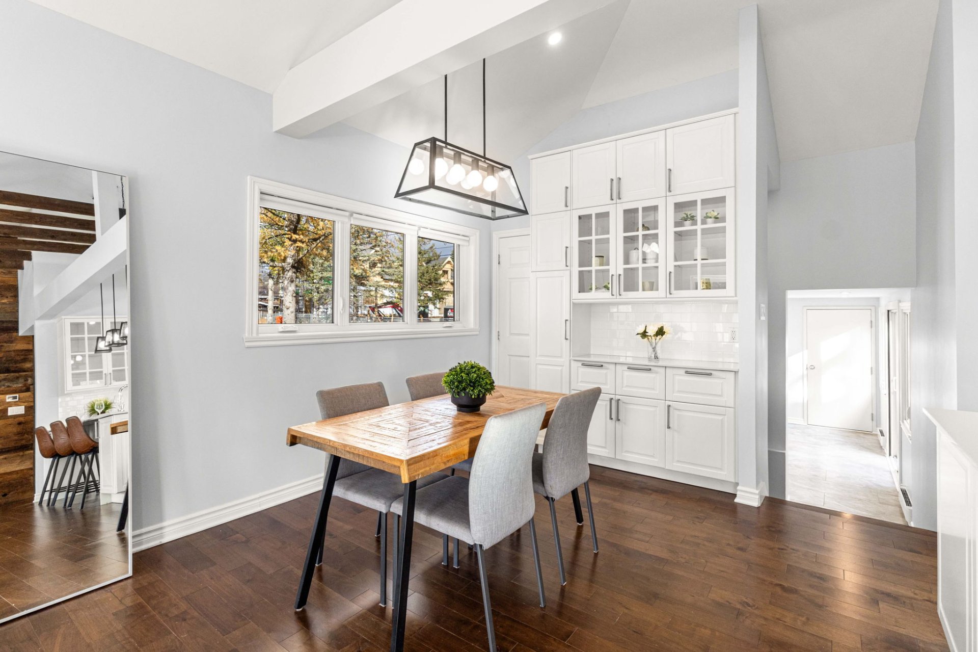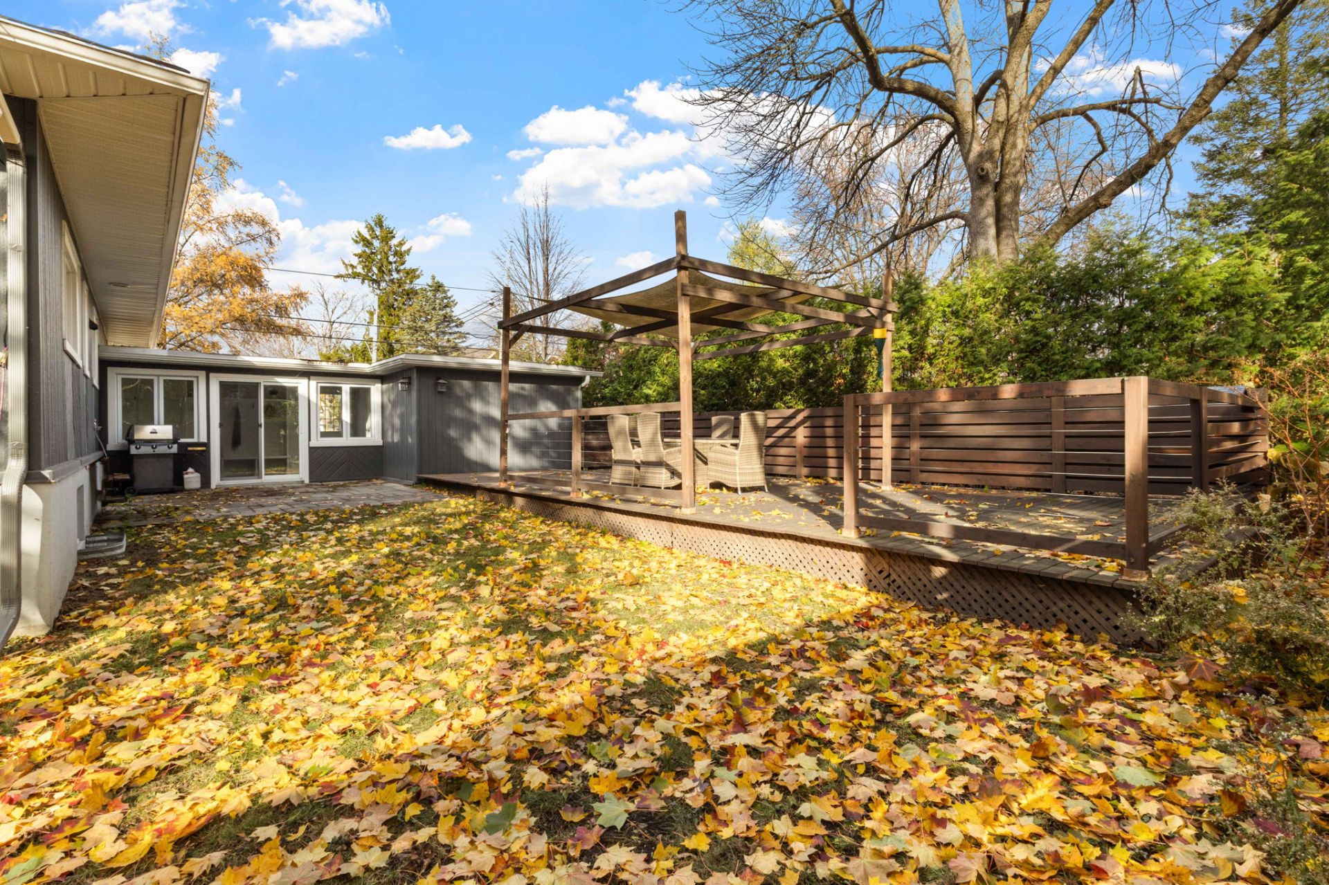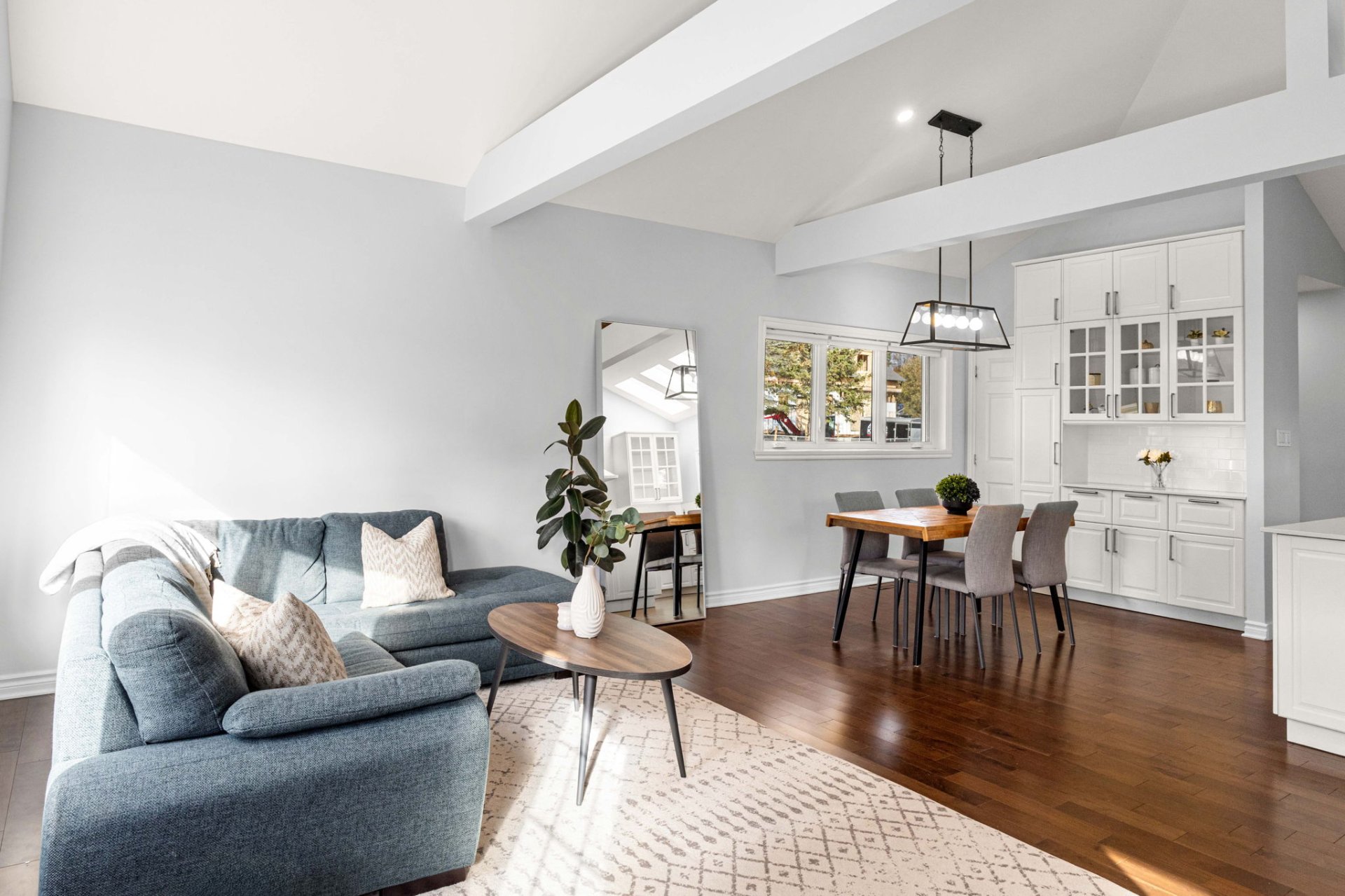 Ideally located within walking distance to parks, schools, and the Beaconsfield train station, and just minutes from shops, restaurants, grocery stores, and highways 20 and 40 - everything you need is right at your doorstep. Step inside to a bright, open-concept living area with soaring 14-foot vaulted ceilings, a large bay window, and three skylights that flood the space with natural light. The walnut floors and barnwood accent wall add warmth and character. The modern kitchen is a chef’s delight, featuring a 10-foot quartz peninsula, double sink, ample storage including a pantry, and seamless flow into the spacious dining area with custom built-ins - perfect for entertaining. The primary bedroom suite offers generous built-in closets and an ensuite with quartz countertops, a vessel sink, and an oversized rainfall shower. A second bedroom, an additional full bathroom, and a large mudroom with access to the garage, driveway, and backyard complete the main level - providing both functionality and style. The fully finished basement expands the living space with a large family room, two additional well-sized bedrooms, a full bathroom, dedicated laundry area, and plenty of storage - ideal for a growing family or hosting guests. Step outside to enjoy a fully fenced, south-facing backyard that is beautifully landscaped with a unistone patio and wood deck - perfect for relaxing or entertaining through the warmer months. Don’t miss this opportunity to own this charming, move-in-ready home in the heart of Beaconsfield!