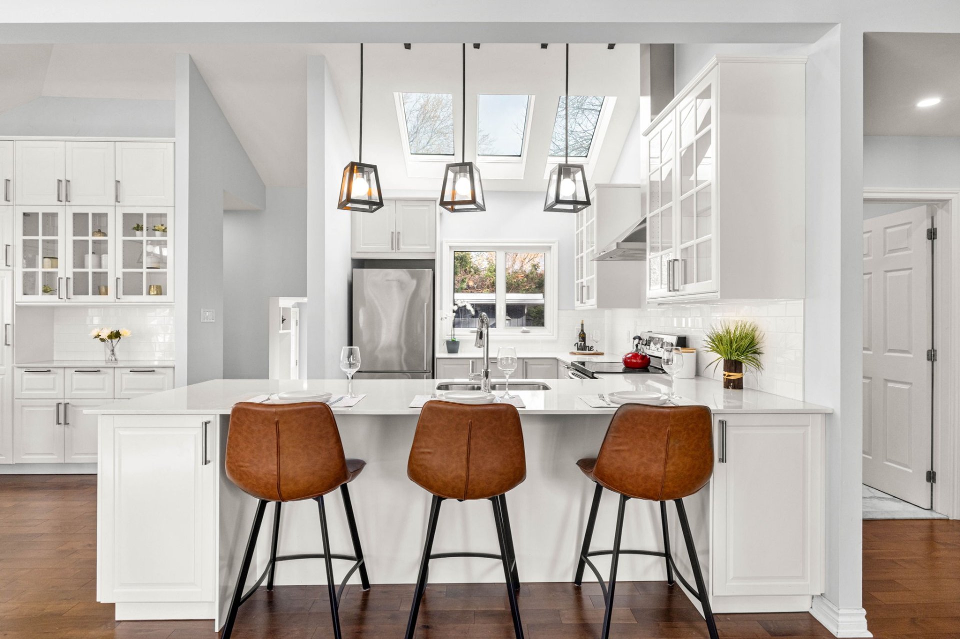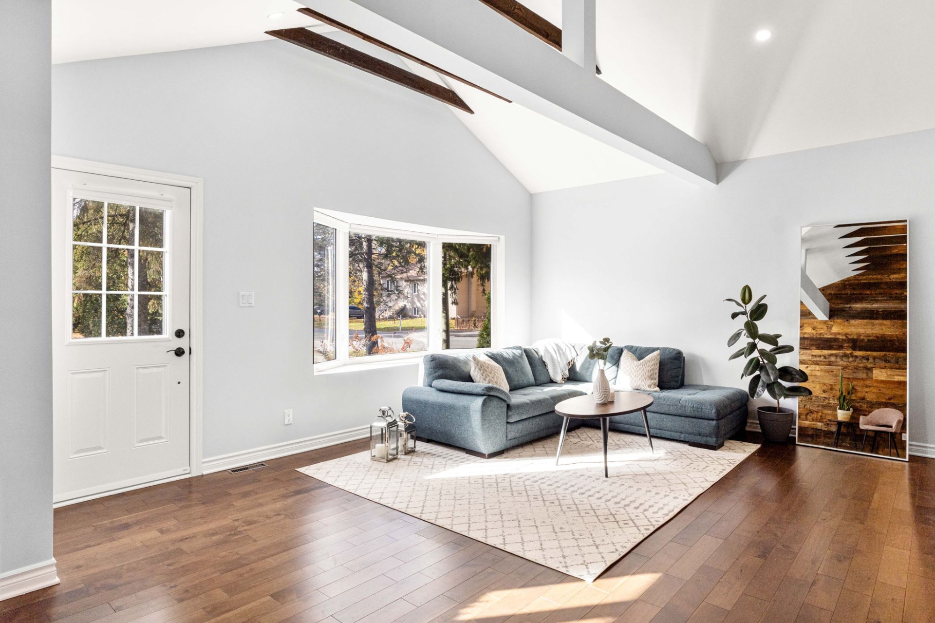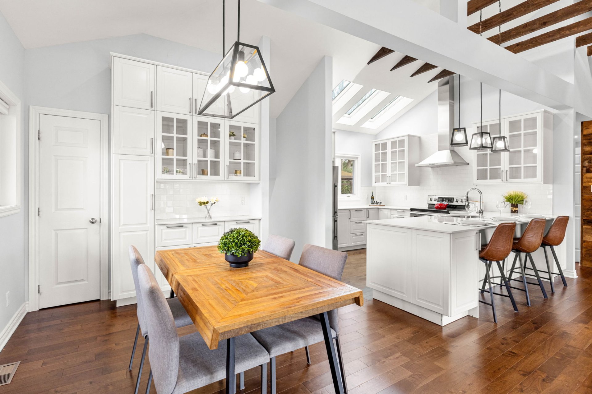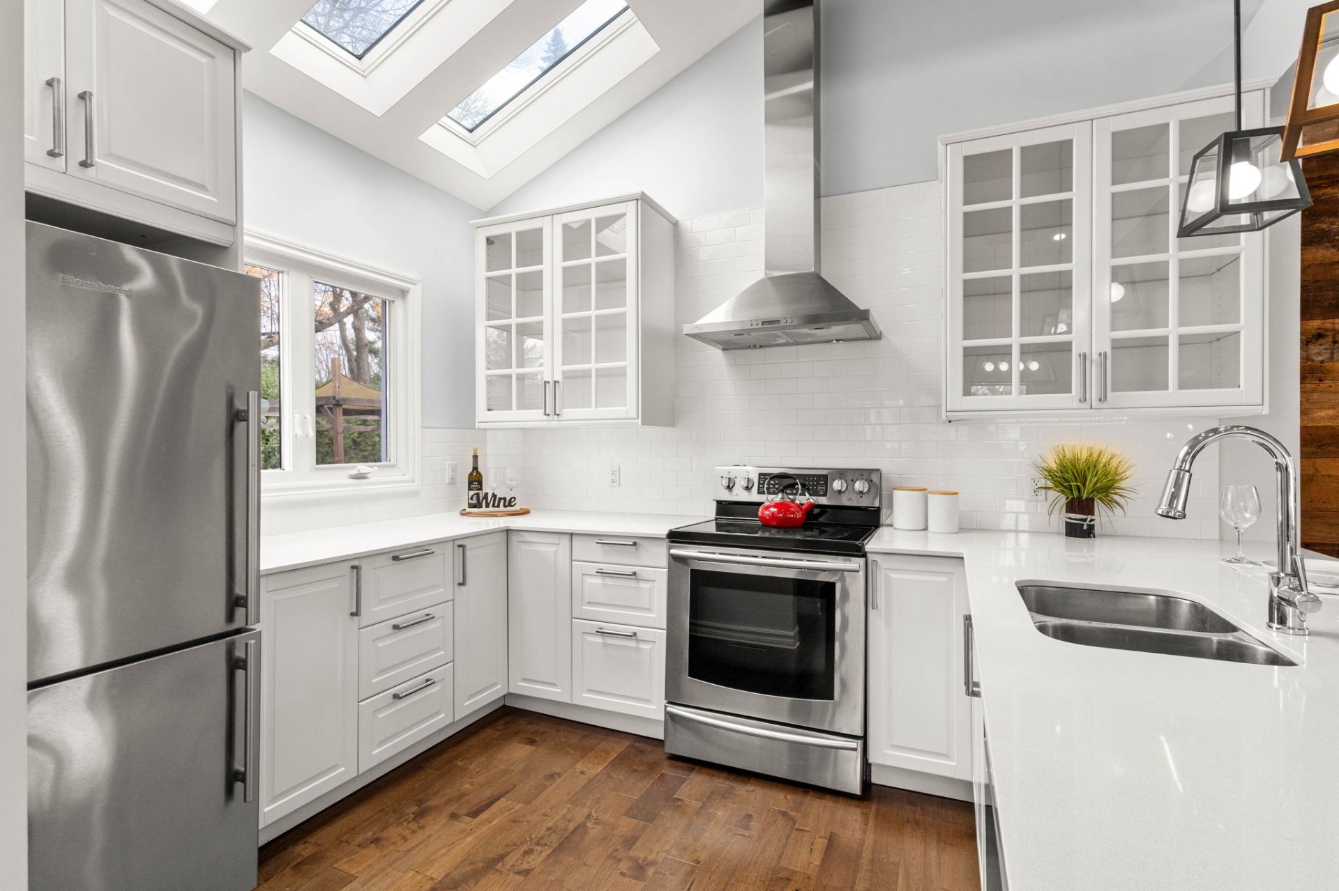 Ideally located within walking distance to parks, schools, and the Beaconsfield train station, and just minutes from shops, restaurants, grocery stores, and highways 20 and 40 - everything you need is right at your doorstep. Step inside to a bright, open-concept living area with soaring 14-foot vaulted ceilings, a large bay window, and three skylights that flood the space with natural light. The walnut floors and barnwood accent wall add warmth and character. The modern kitchen is a chef’s delight, featuring a 10-foot quartz peninsula, double sink, ample storage including a pantry, and seamless flow into the spacious dining area with custom built-ins - perfect for entertaining. The primary bedroom suite offers generous built-in closets and an ensuite with quartz countertops, a vessel sink, and an oversized rainfall shower. A second bedroom, an additional full bathroom, and a large mudroom with access to the garage, driveway, and backyard complete the main level - providing both functionality and style. The fully finished basement expands the living space with a large family room, two additional well-sized bedrooms, a full bathroom, dedicated laundry area, and plenty of storage - ideal for a growing family or hosting guests. Step outside to enjoy a fully fenced, south-facing backyard that is beautifully landscaped with a unistone patio and wood deck - perfect for relaxing or entertaining through the warmer months. Don’t miss this opportunity to own this charming, move-in-ready home in the heart of Beaconsfield!