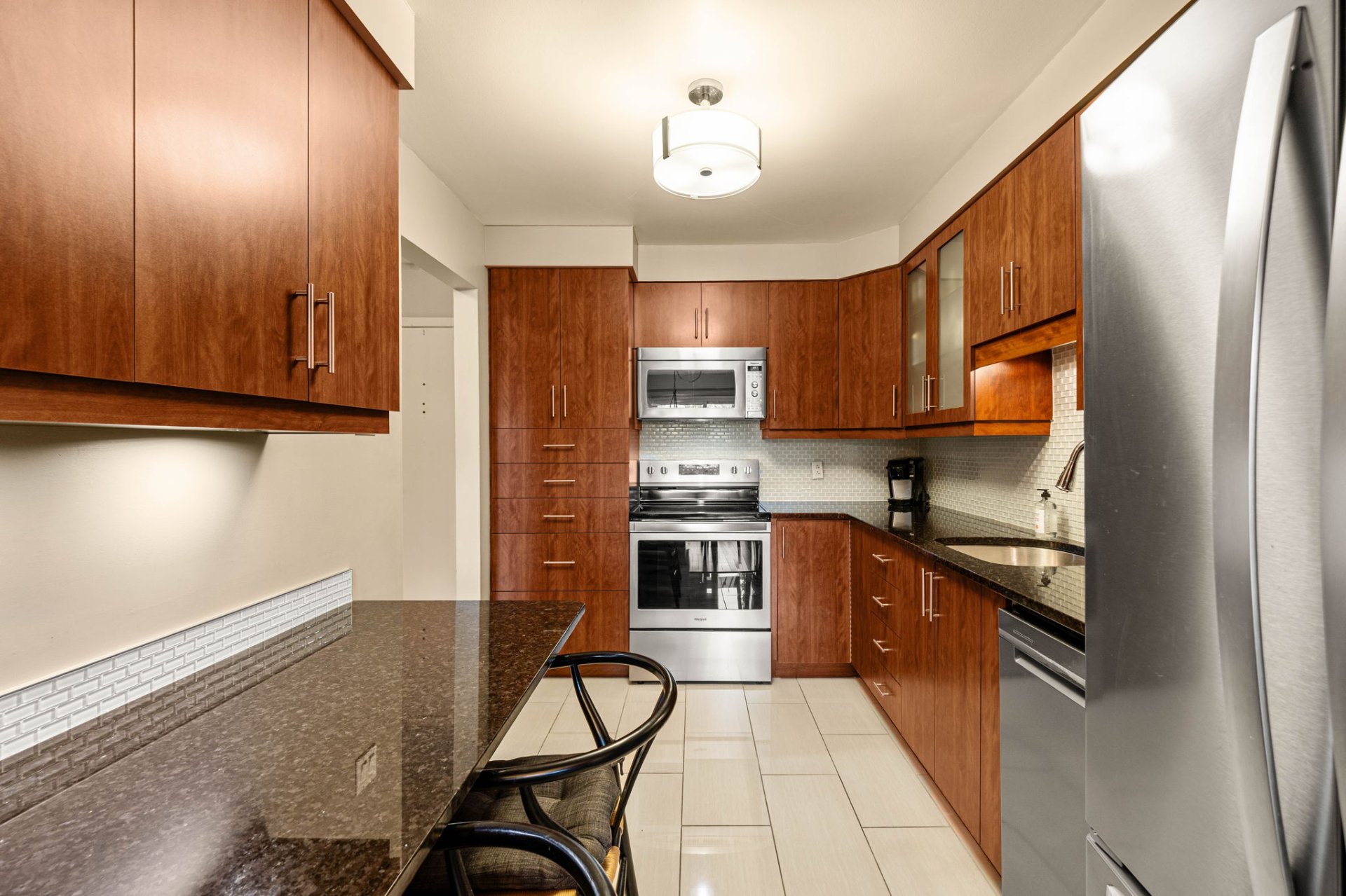 Condo fees include hot water, landscaping, snow removal, and access to onsite-janitors and management.