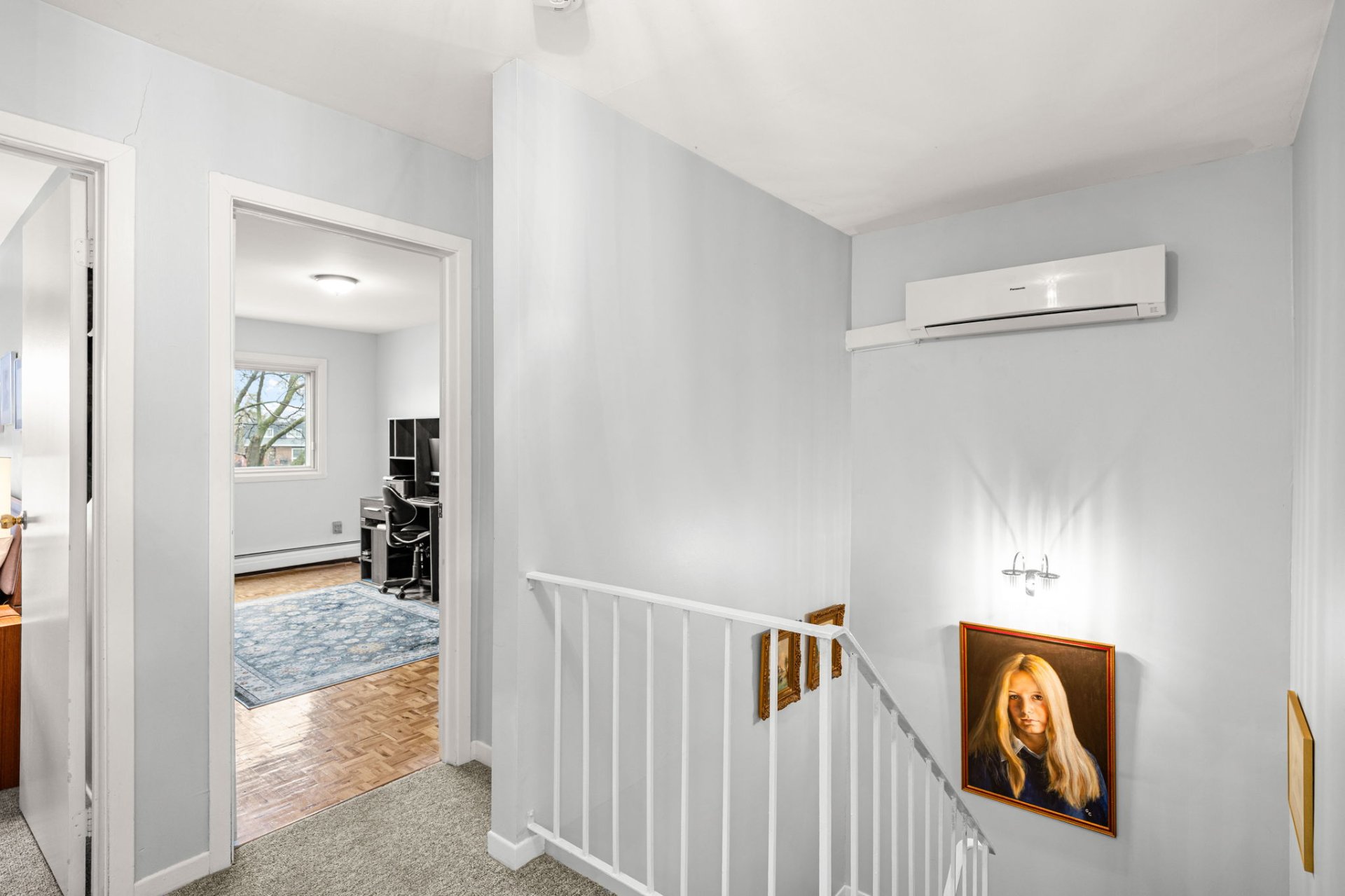 Upstairs, you will find two generously sized bedrooms, including a primary bedroom with a walk-in closet, along with a well-appointed family bathroom.