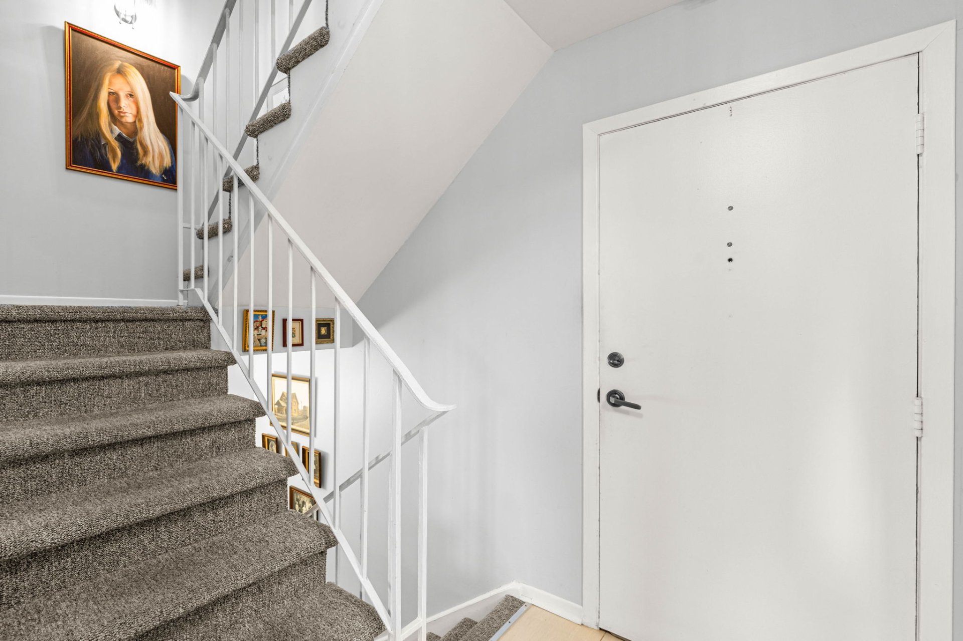 The main floor offers a bright, open-concept living and dining area, perfect for entertaining. Patio doors lead to a private balcony with the added convenience of an outdoor parking space located directly in front. The eat-in kitchen and powder room complete this level.