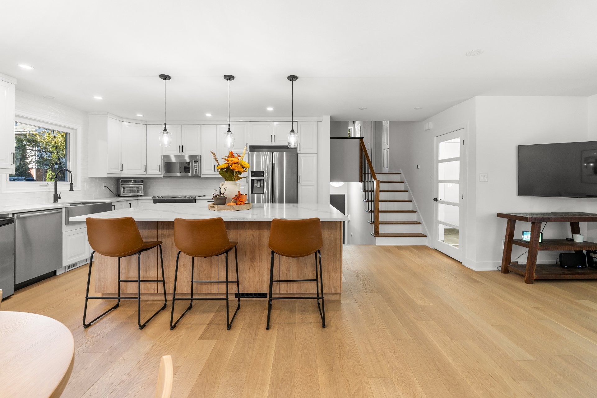Welcome to this stunning split-level home in a prime Kirkland south-west location. Nestled on a quiet, child-friendly crescent, this stunning home offers the perfect combination of modern style, comfort, and convenience. Ideally located just minutes from Highway 40, top-rated schools, parks, public transit, the new REM station, and a host of everyday amenities.