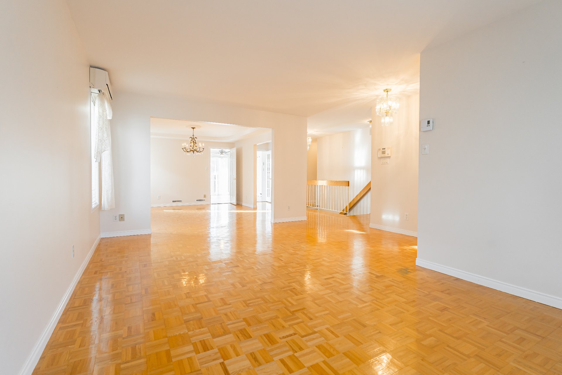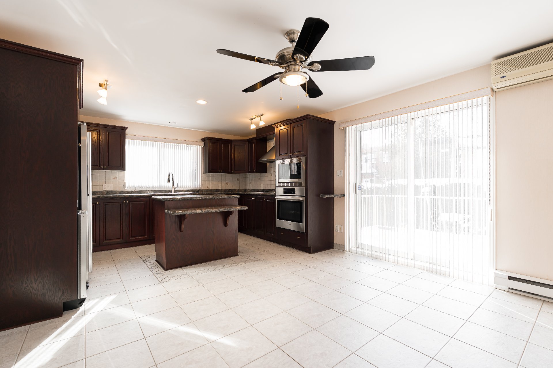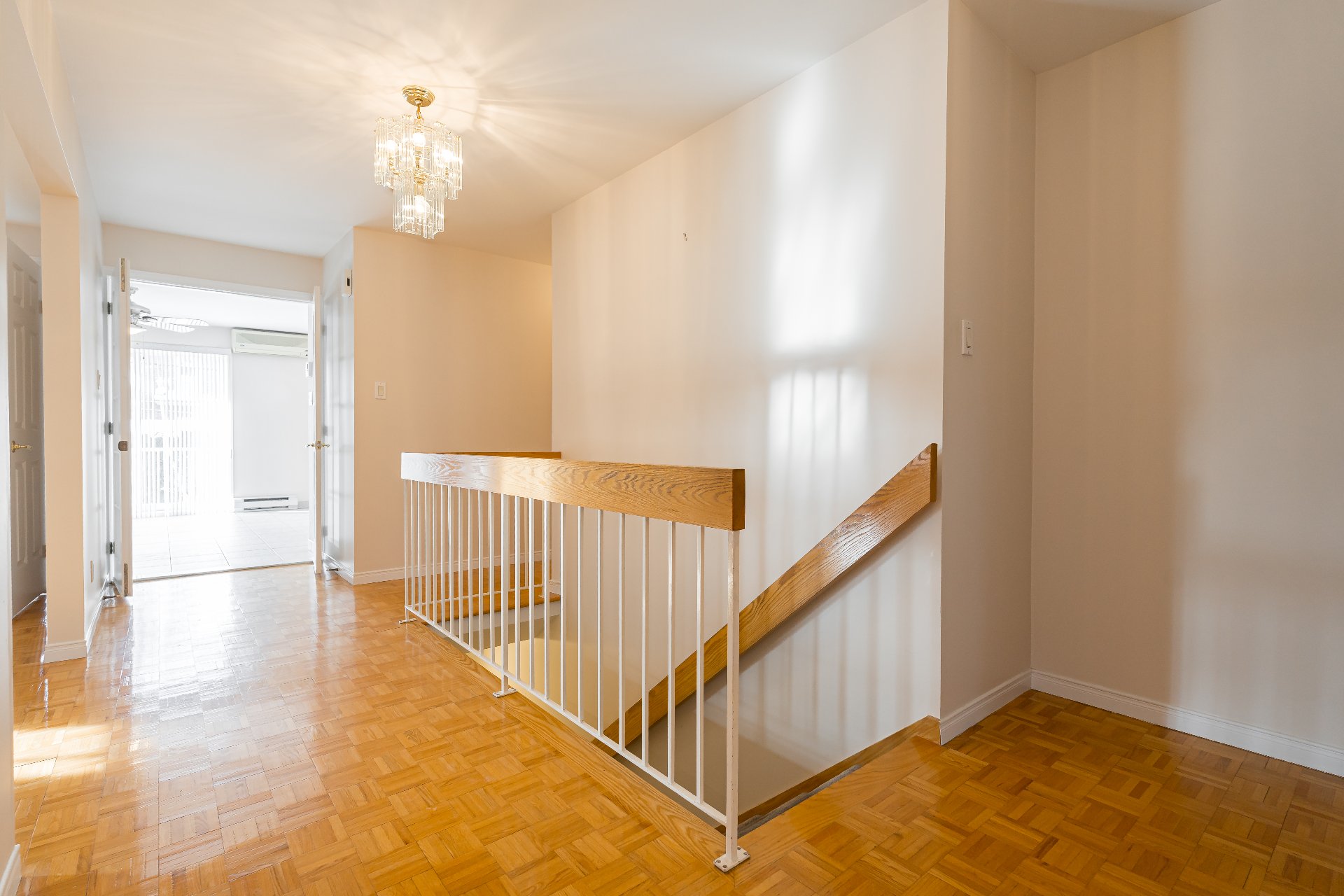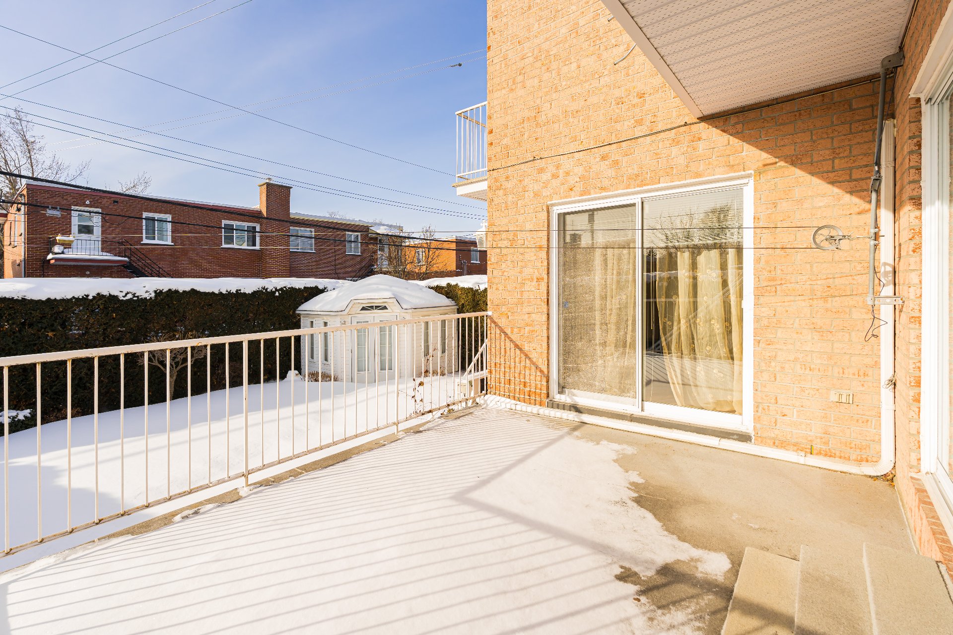Spacious 8½ offering 3 bedrooms, 2 full bathrooms, and a powder room with a closed laundry area. Features a spacious and bright living room and separate dining room, plus a functional kitchen with a dining area. Enjoy direct access to a large balcony and a beautifully landscaped private backyard. Includes two indoor garage parking spaces. Ideally located in a high-demand area, close to parks, schools, shops, and public transportation.