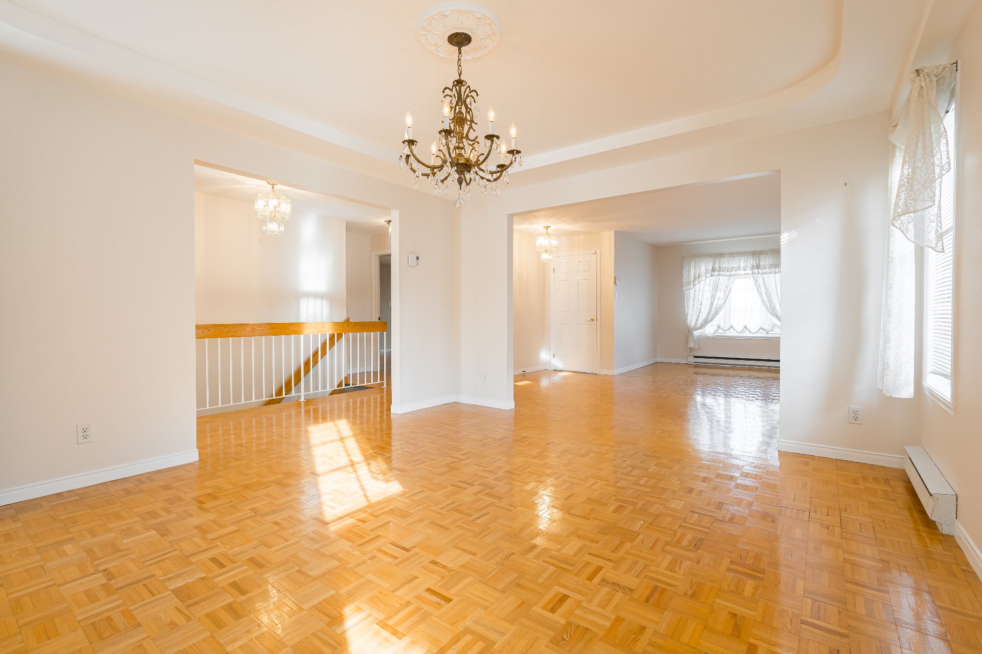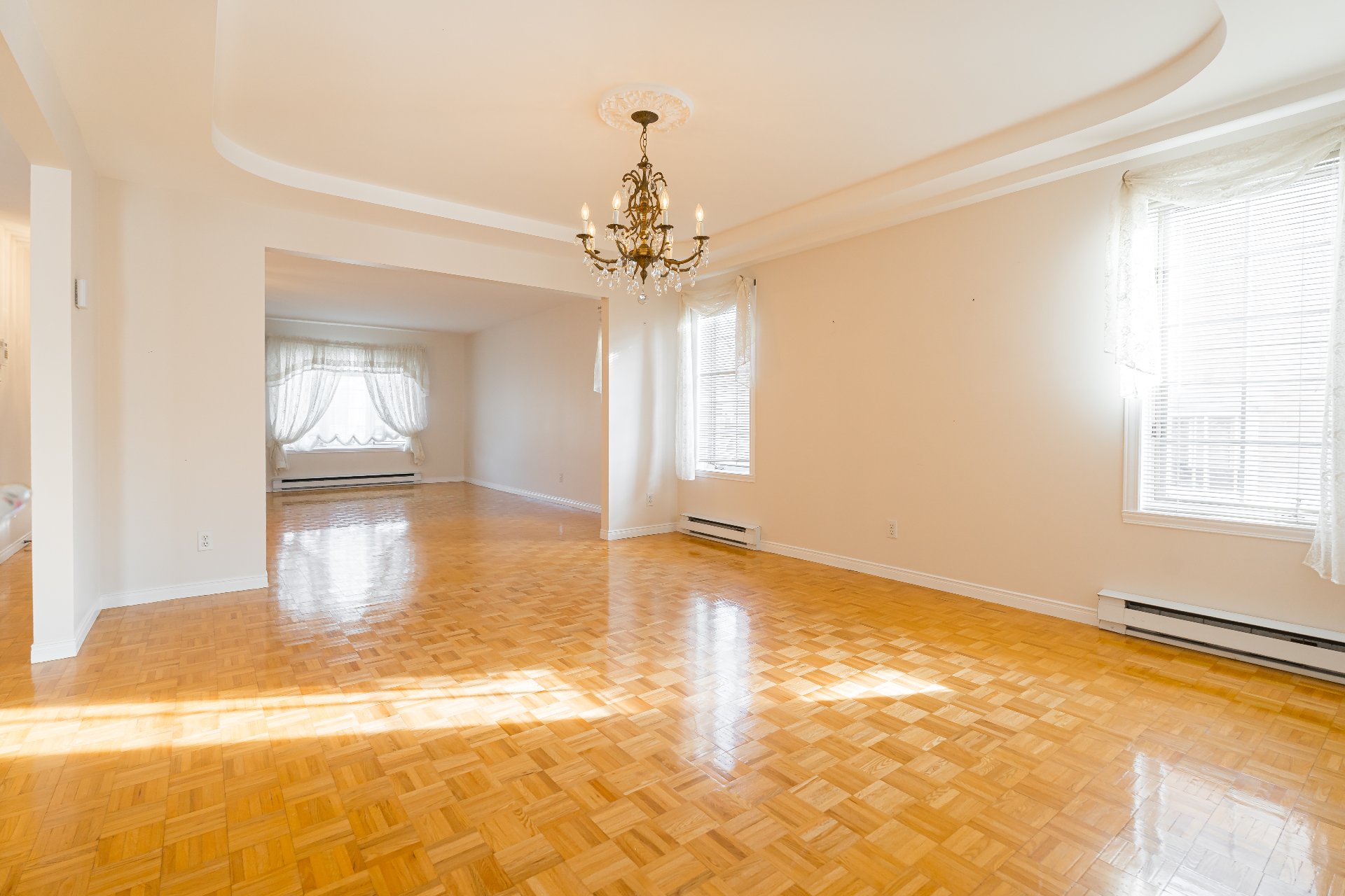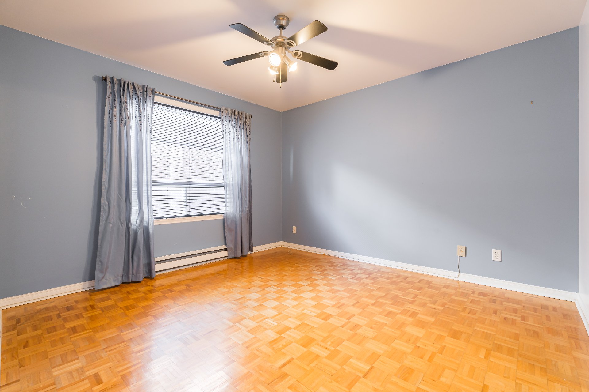 Spacious 8½ offering 3 bedrooms, 2 full bathrooms, and a powder room with a closed laundry area. Features a spacious and bright living room and separate dining room, plus a functional kitchen with a dining area. Enjoy direct access to a large balcony and a beautifully landscaped private backyard. Includes two indoor garage parking spaces. Ideally located in a high-demand area, close to parks, schools, shops, and public transportation.