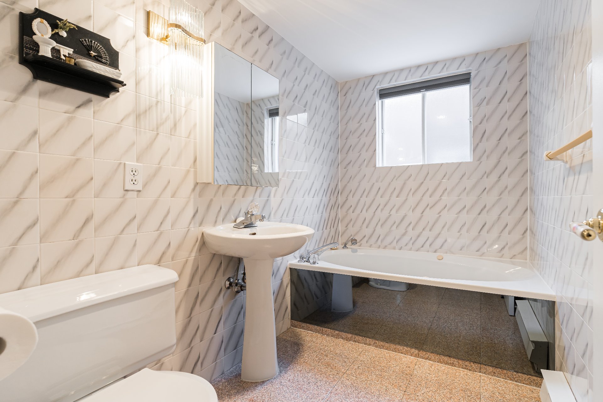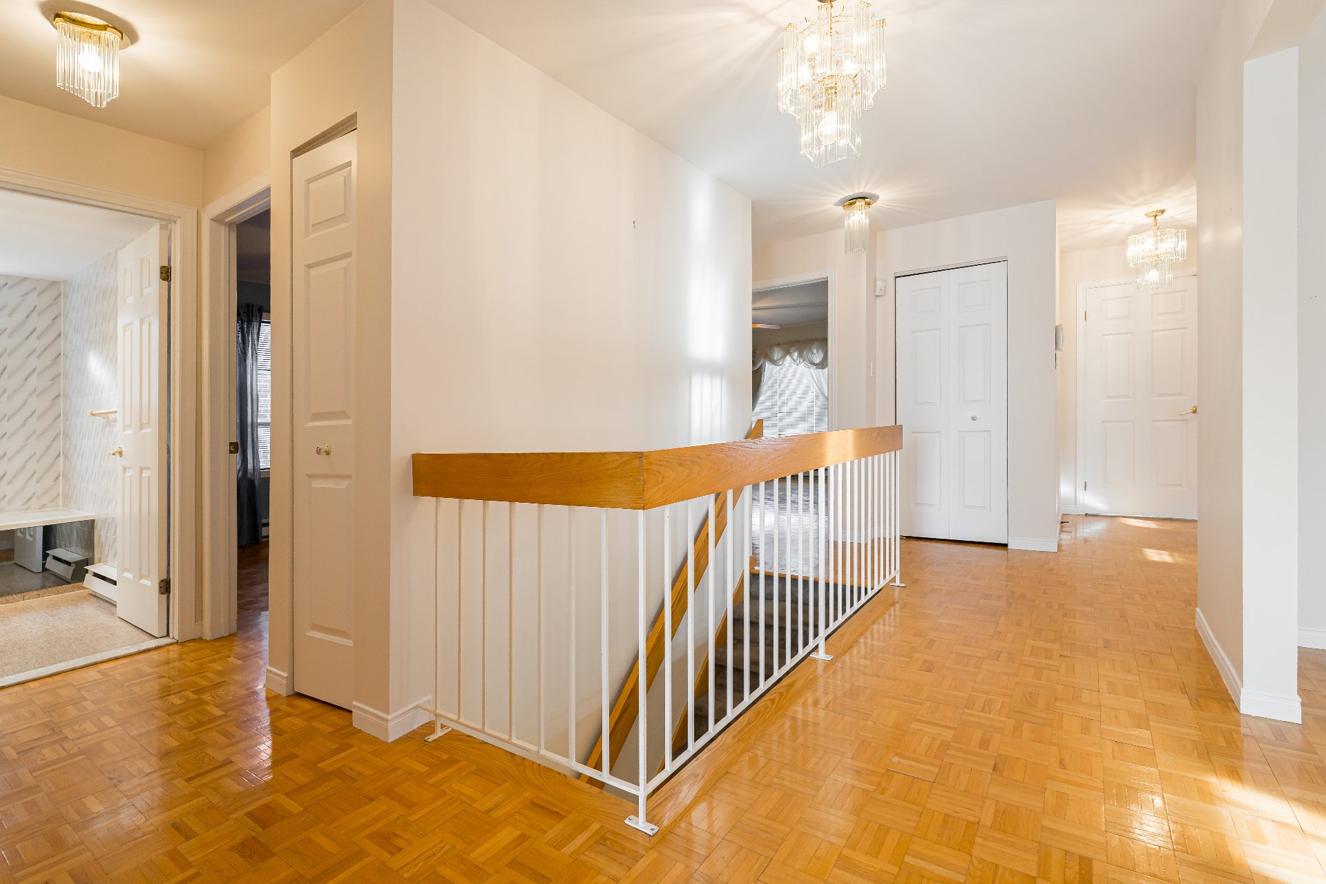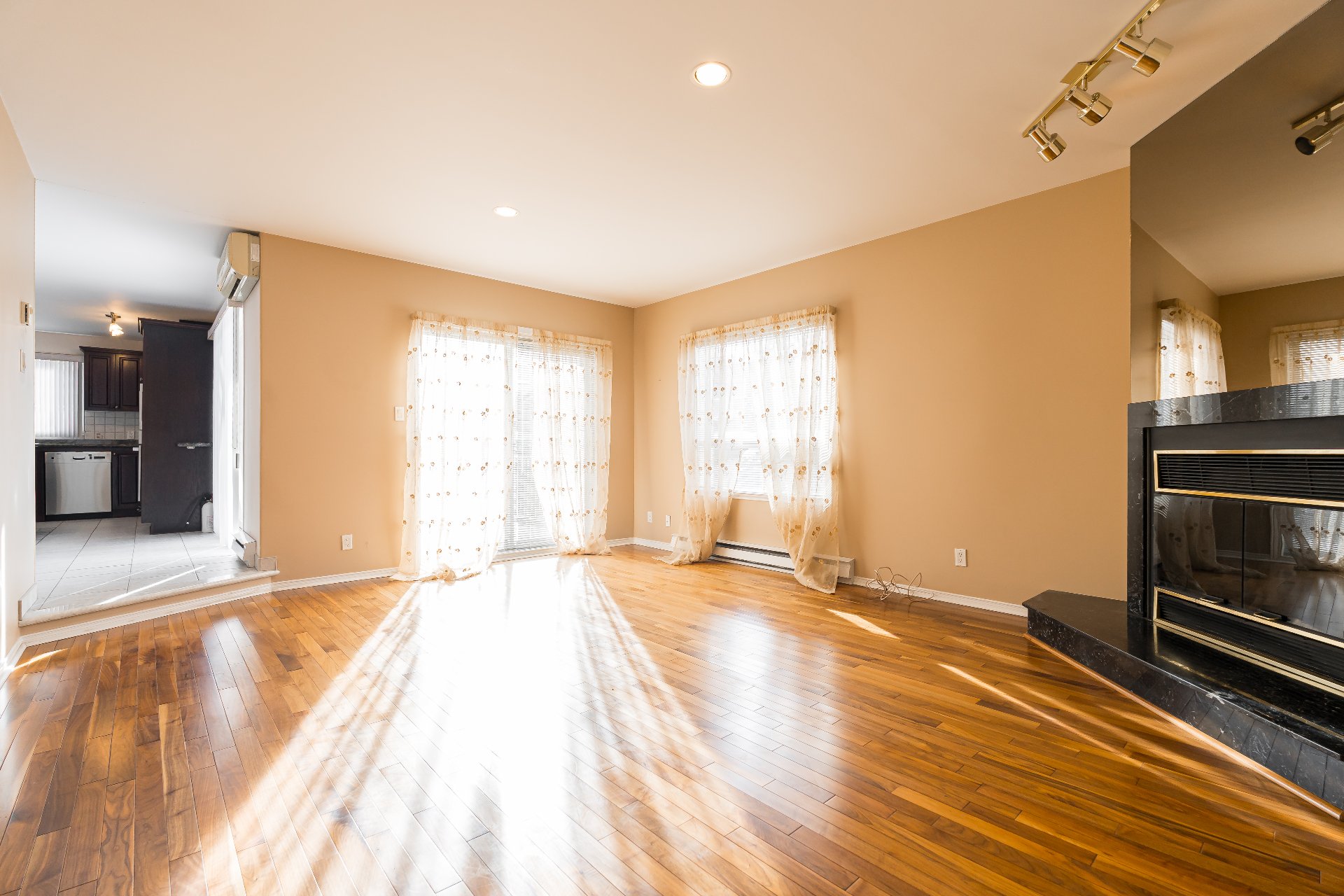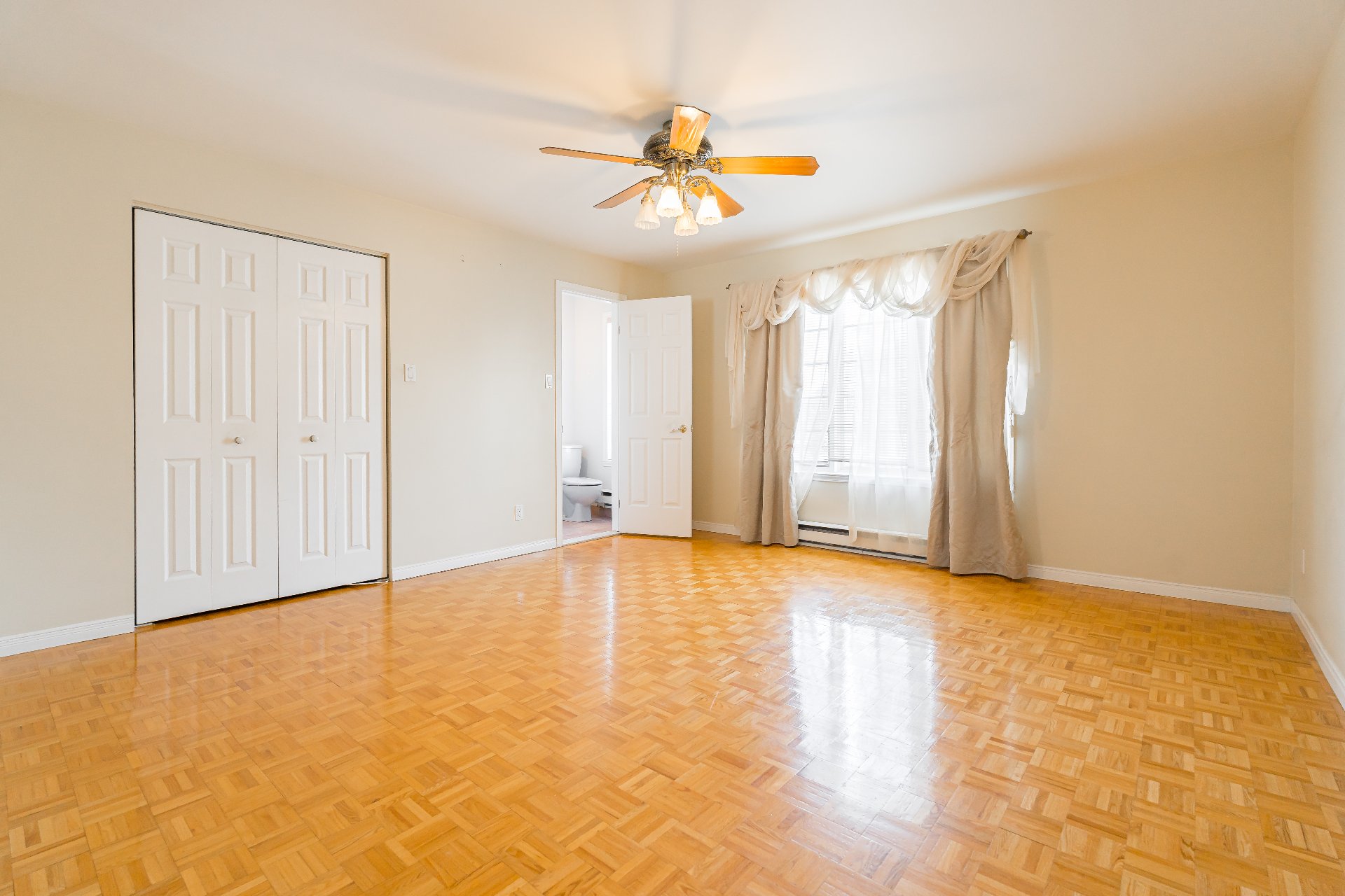 Spacious 8½ offering 3 bedrooms, 2 full bathrooms, and a powder room with a closed laundry area. Features a spacious and bright living room and separate dining room, plus a functional kitchen with a dining area. Enjoy direct access to a large balcony and a beautifully landscaped private backyard. Includes two indoor garage parking spaces. Ideally located in a high-demand area, close to parks, schools, shops, and public transportation.