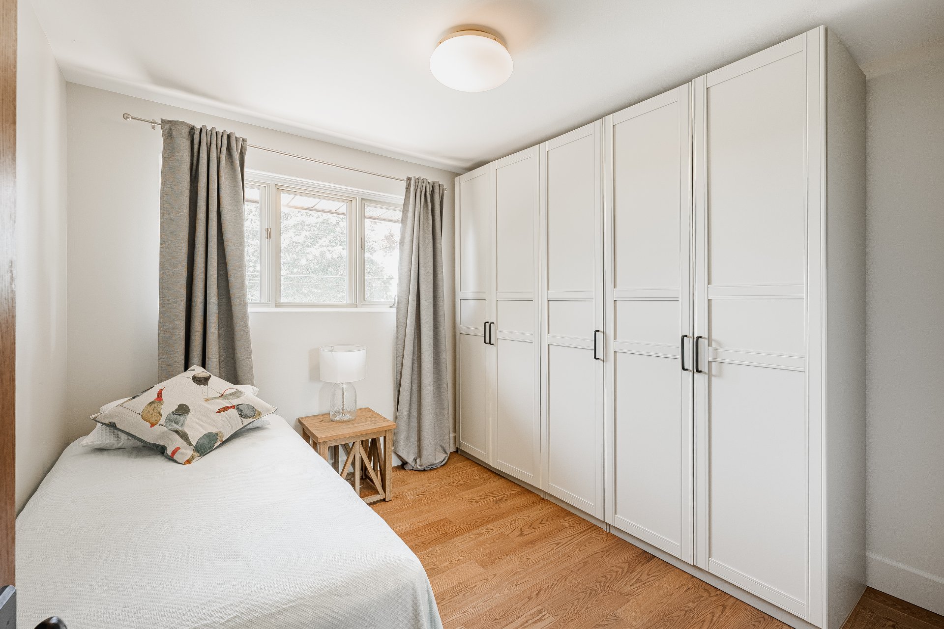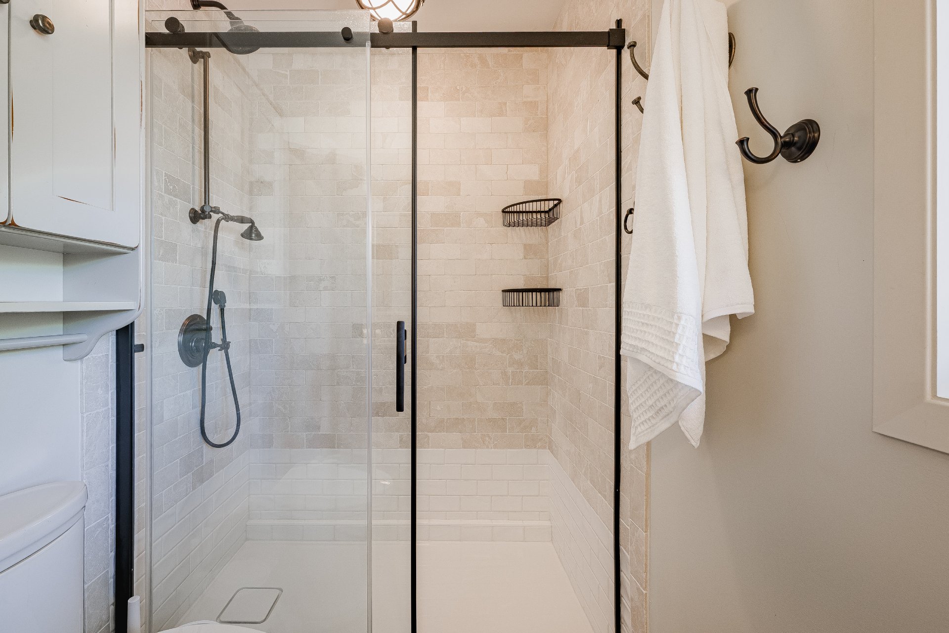 Upstairs, the second level offers a spacious primary bedroom along with two additional well-sized bedrooms and a family bathroom complete with a glass shower.