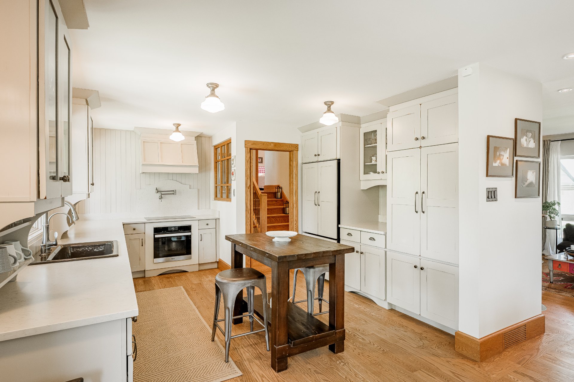 The open-concept kitchen is a chef’s dream, boasting high-end KraftMaid cabinetry, double dishwashers, cooktop, quartz counters and ample space for those who love to cook and entertain.