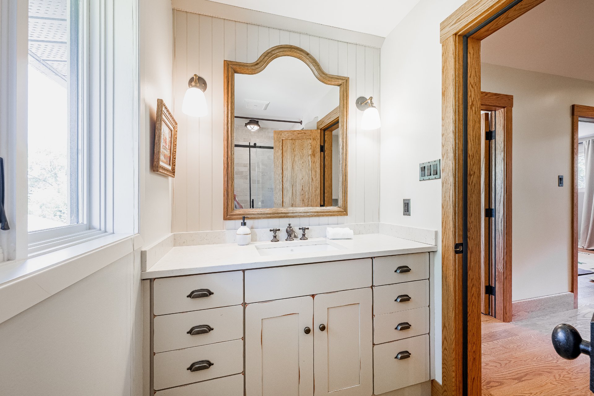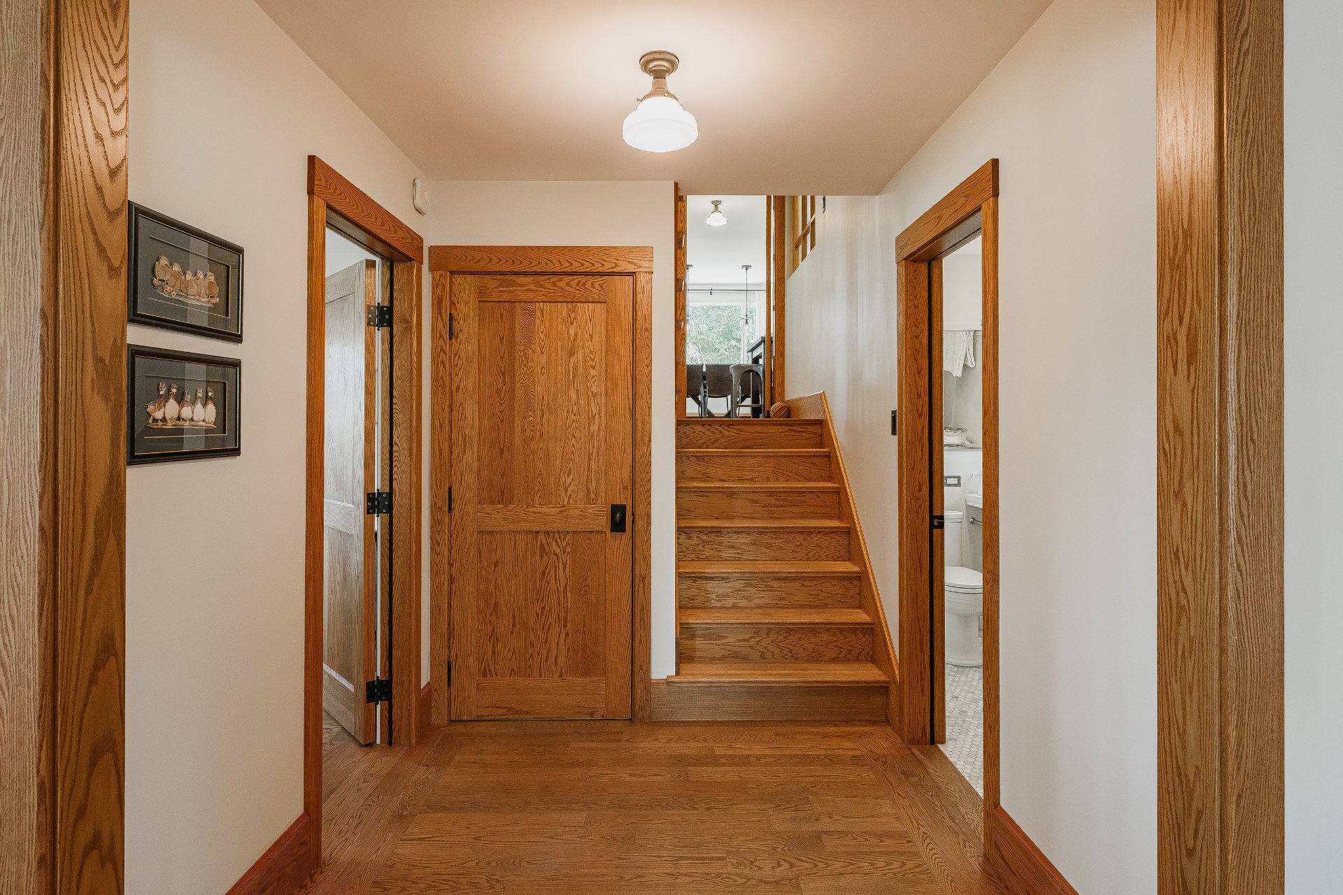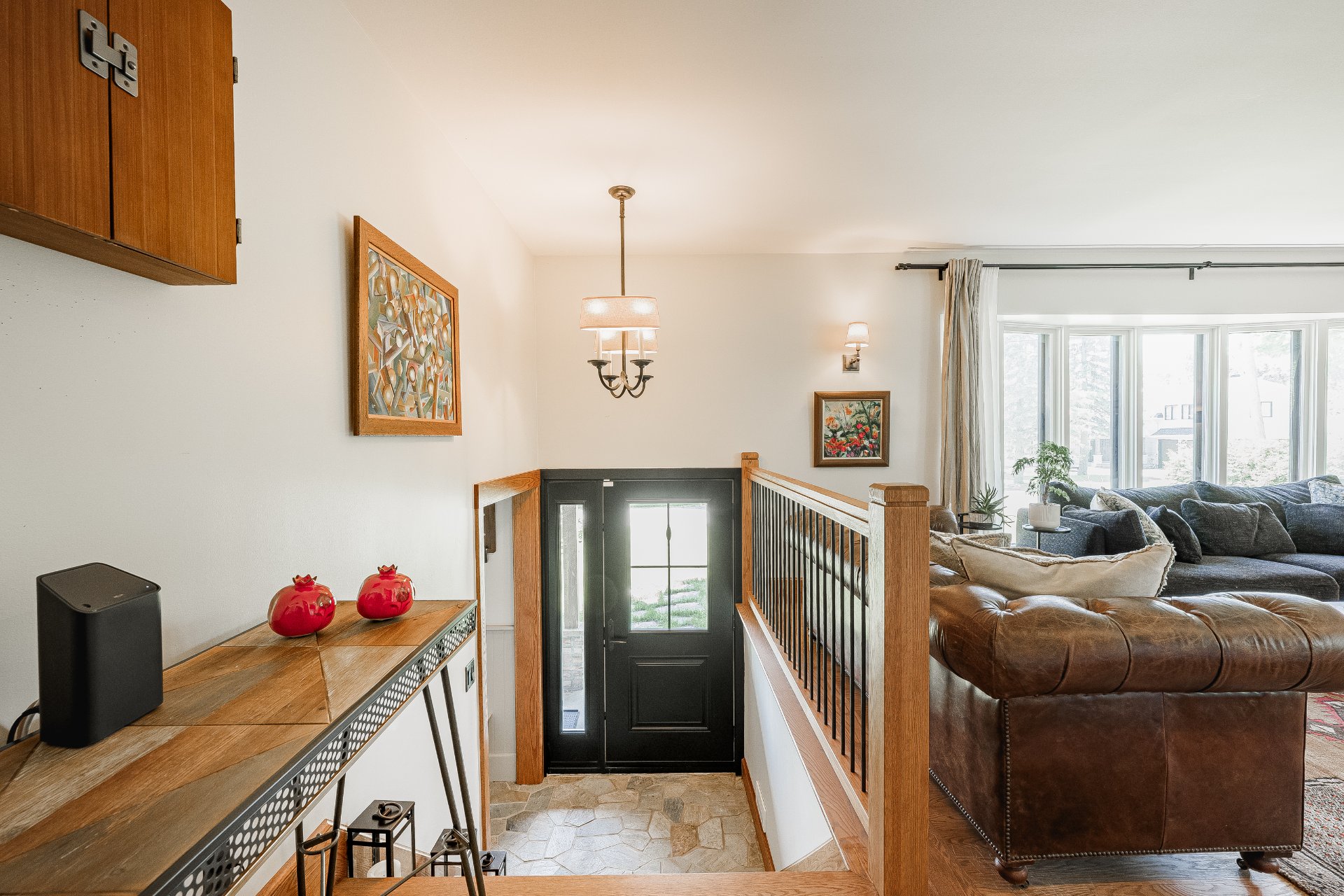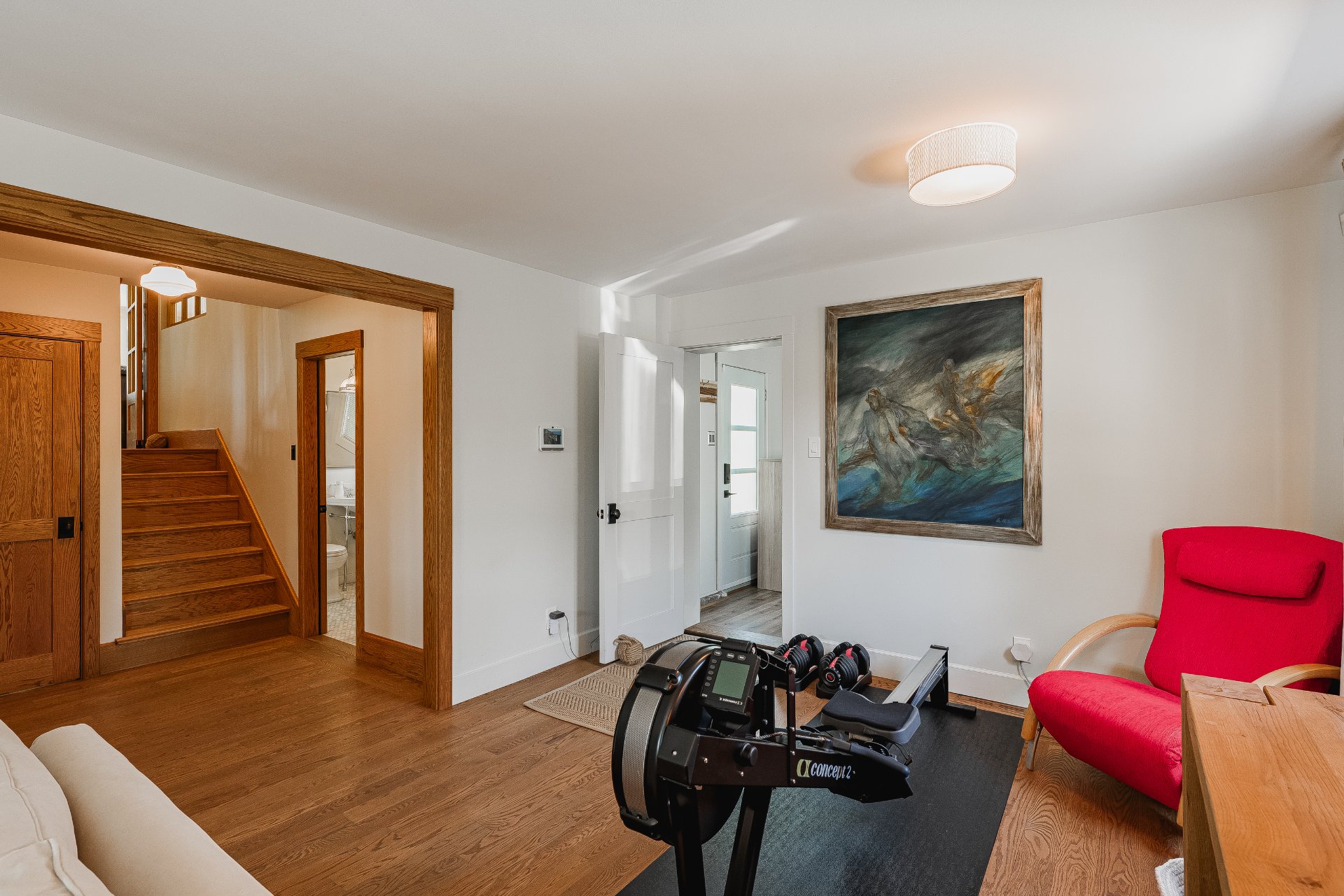 The bright and airy ground level includes a comfortable family room with large windows, a fourth bedroom, and a second full bathroom. This level also connects to a functional mudroom with direct access to both the backyard and the attached garage.