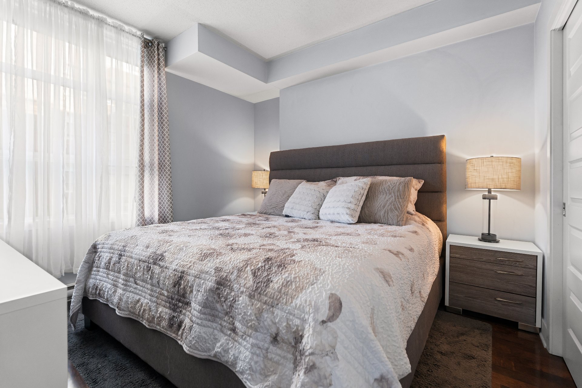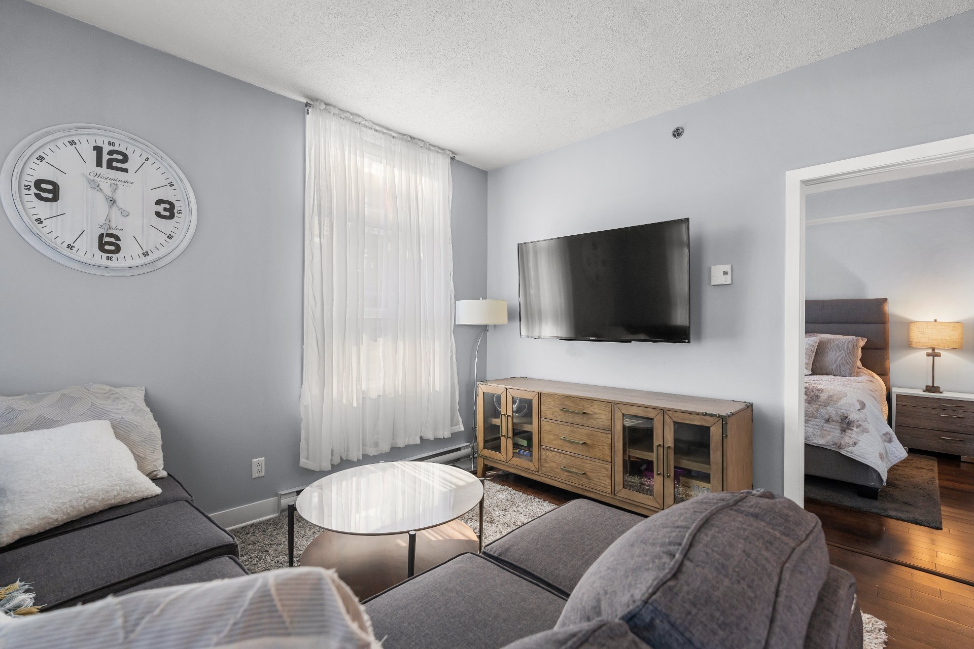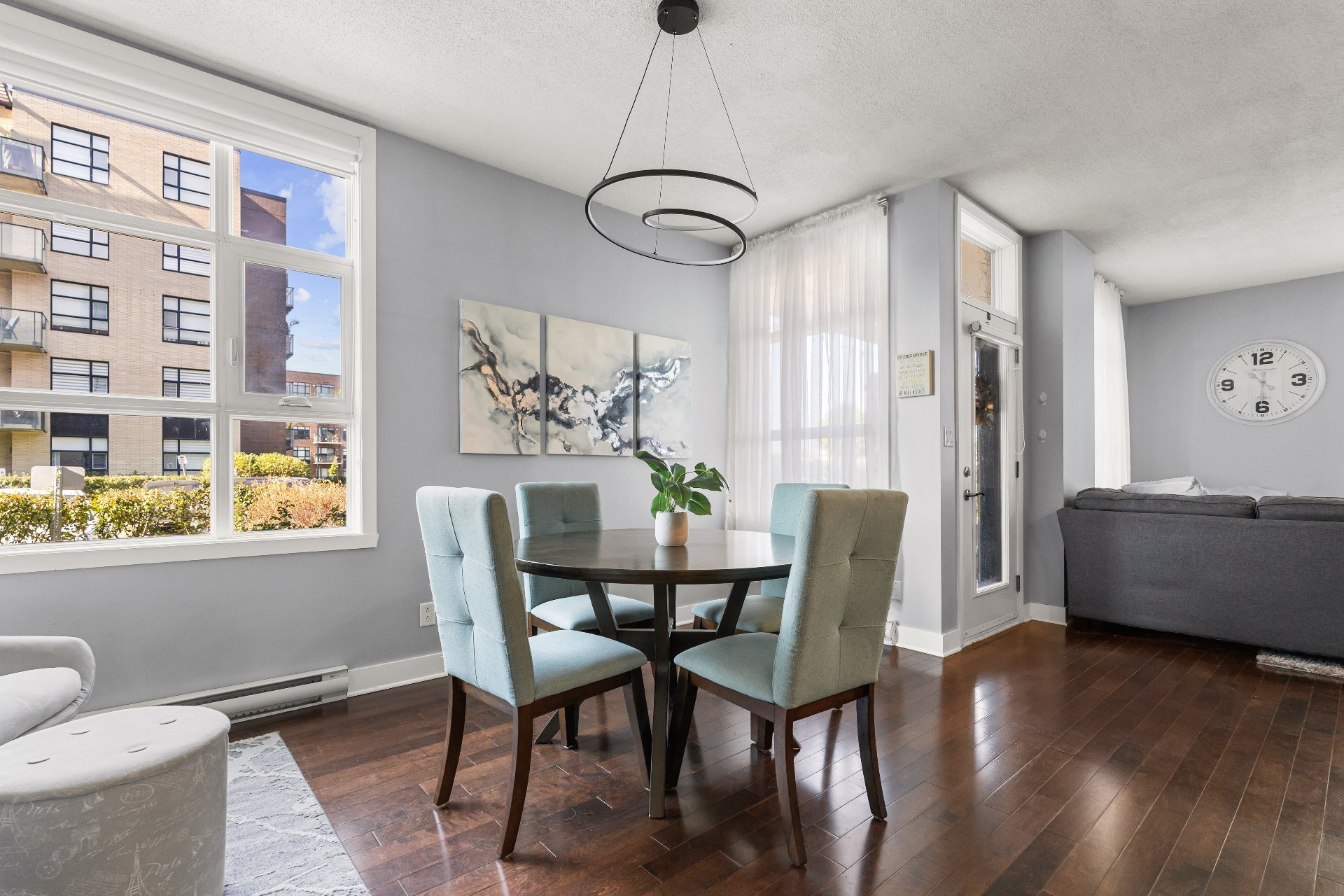 Welcome to this 2-bedroom, 2-bathroom executive corner unit, ideally situated in the sought-after Le Onze de la Gare project in Vaudreuil. Located just steps from Les Avenues Vaudreuil and a wide range of amenities, this upscale condo offers the perfect blend of luxury, comfort, and convenience.