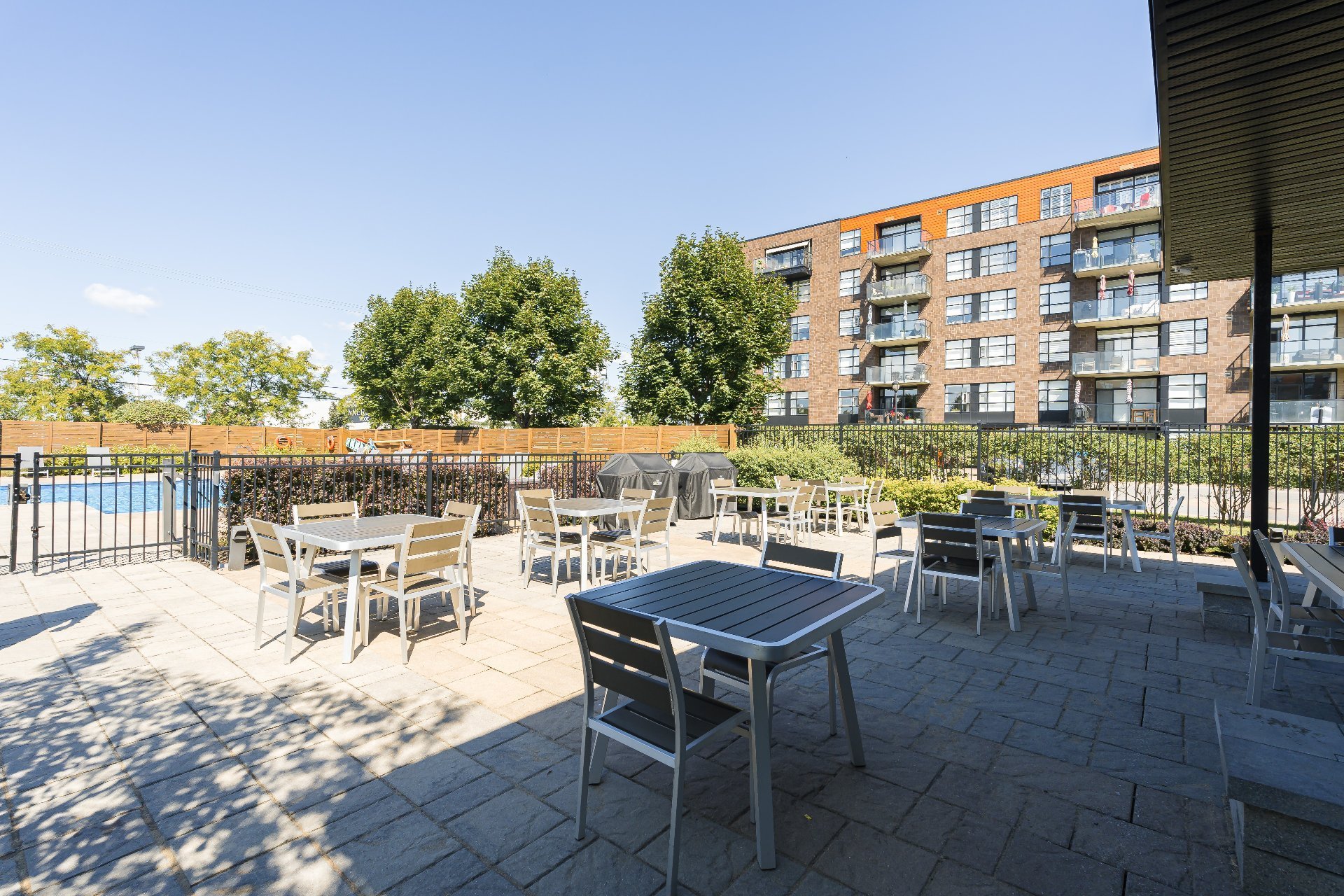 Enjoy access to a range of amenities, including a seasonal heated in-ground saltwater pool, BBQ area, bistro tables, and gas fire pits. Residents also enjoy a fully equipped gym and a spacious recreational room, both conveniently accessible from the heated underground garage without ever having to step outside. The elegant, glass-walled reception hall includes bathrooms, a TV, and a full kitchen, making it the perfect venue for private gatherings. Families will appreciate the beautifully landscaped courtyard and enclosed children’s playground, creating a welcoming environment for all.