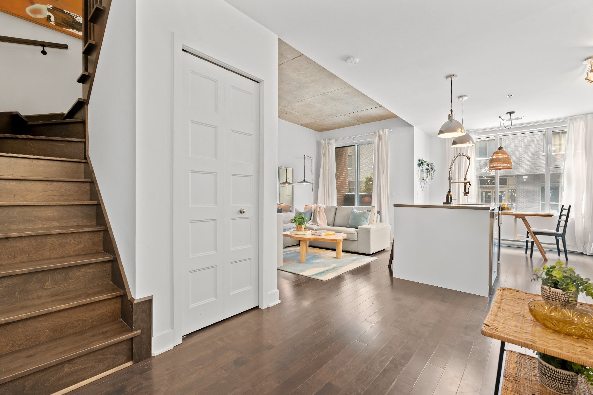 Welcome to 377 rue Des Seigneurs, Suite 108 - A modern two-storey residence perfectly situated in the vibrant neighborhood of Griffintown, near the scenic Lachine Canal. This property boasts two spacious bedrooms + office, 1.5 bathrooms and the convenience of an interior garage parking. Complemented by an open-concept layout on the main with a private balcony, the second storey offers a more quiet recluse from the centralized living. Enjoy entertaining and being within walking distance to the city’s trendiest restaurants, shops and more, just off the main Notre-Dame street!