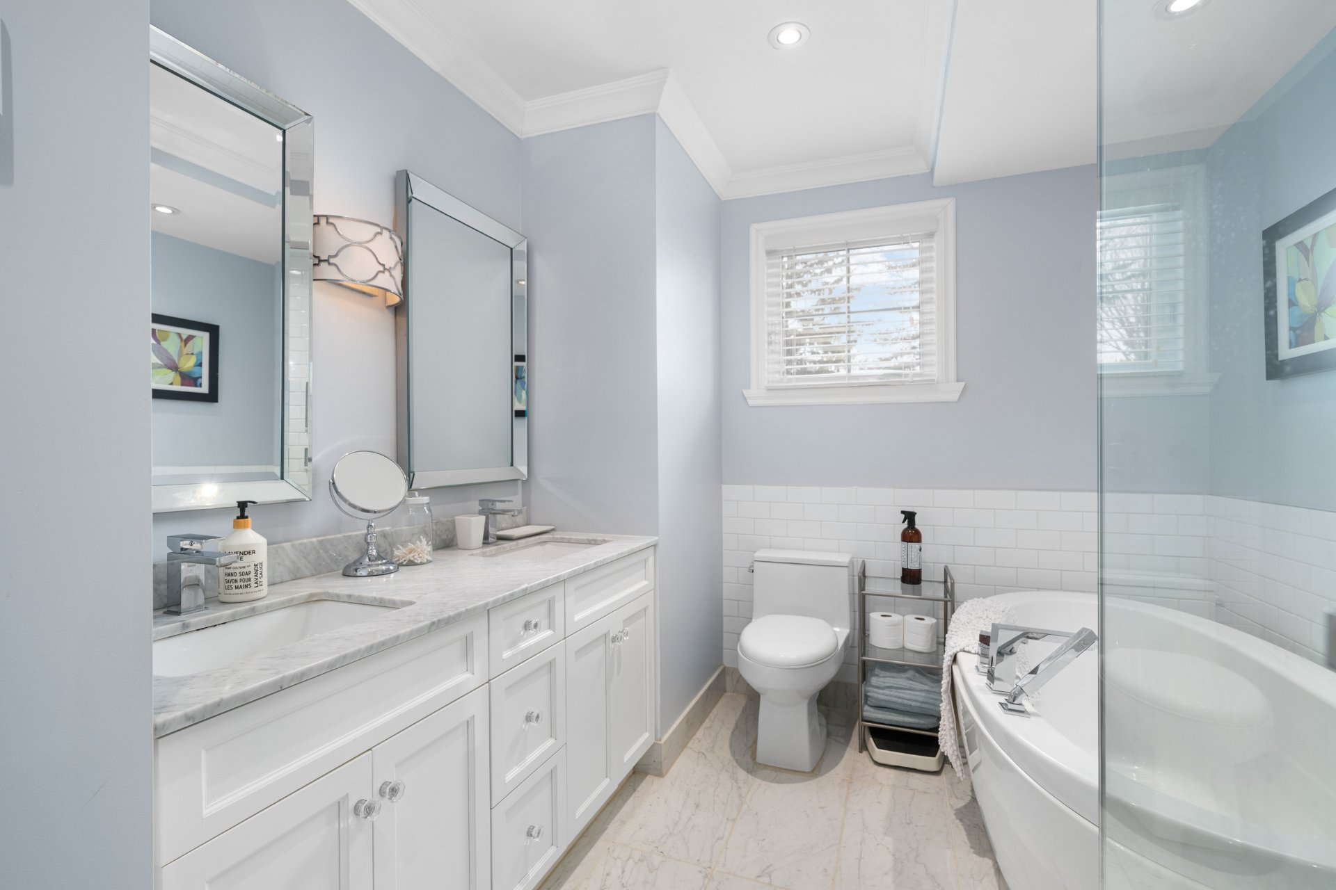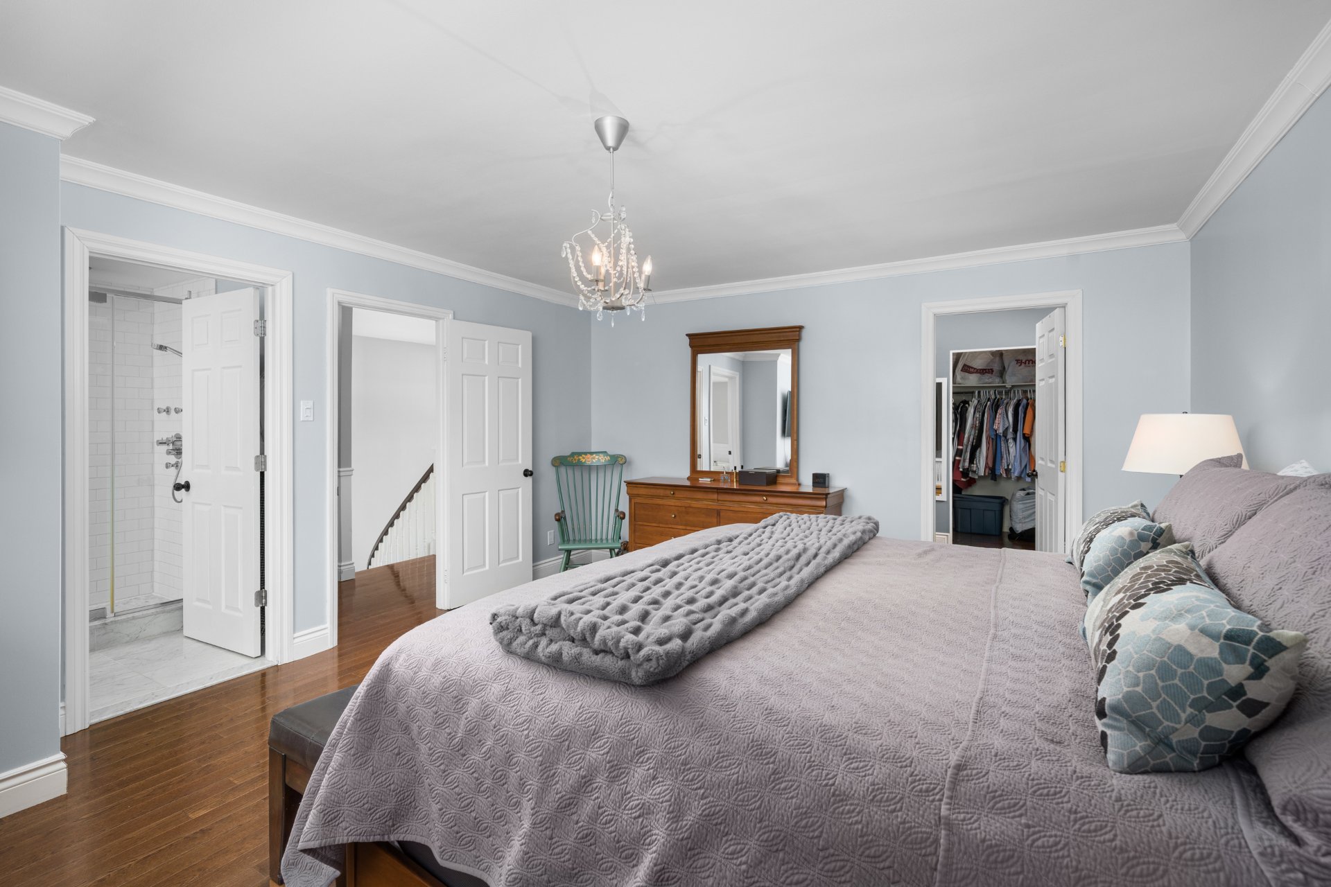 Upstairs, the primary suite is a true retreat, offering a generous bedroom, a spa-inspired ensuite with standalone tub, glass shower, heated floors, double vanity, and a large walk-in closet. Three additional well-proportioned bedrooms with ample closet space and a full family bathroom complete the second level.