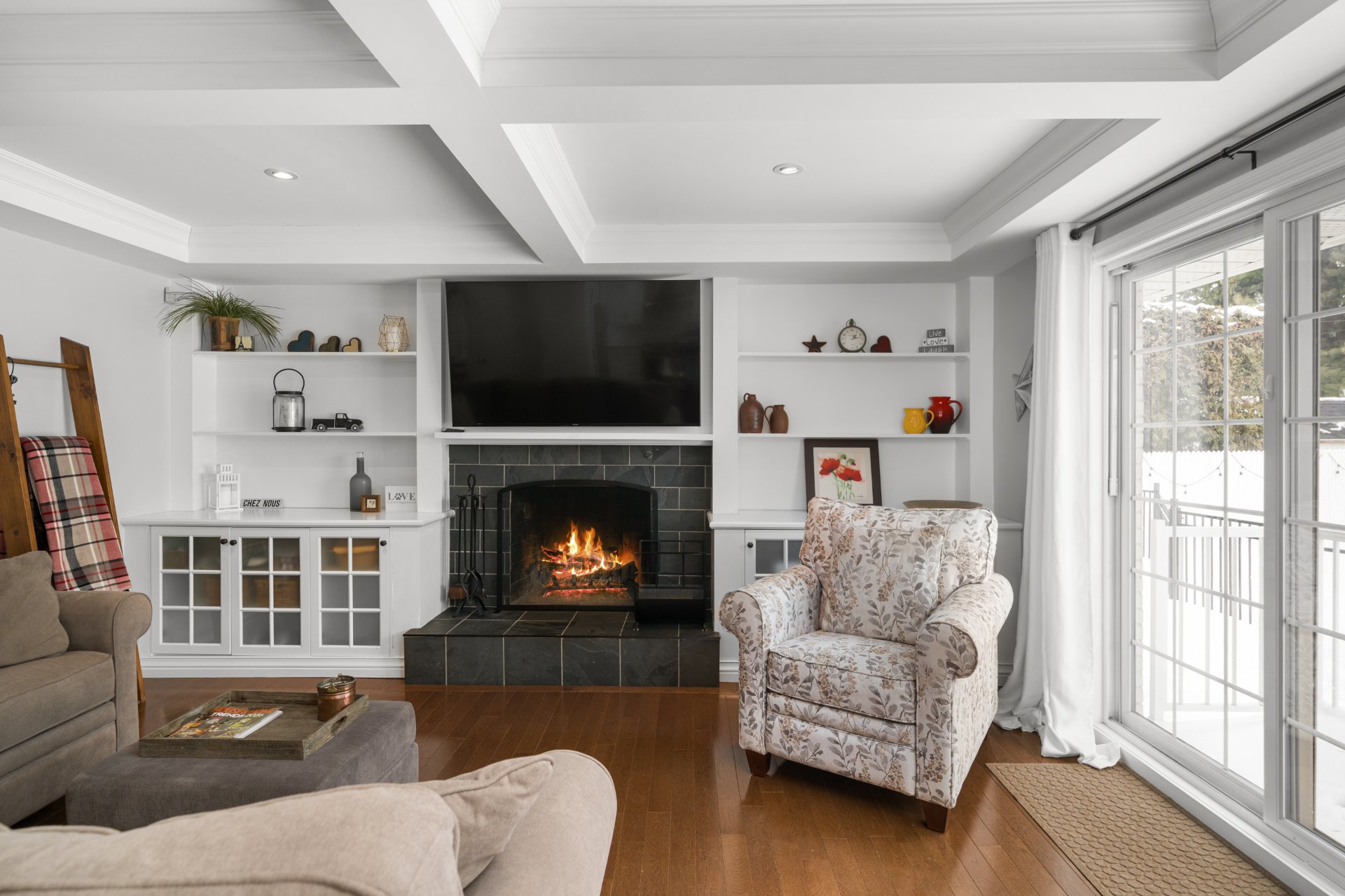 - Wood fireplace