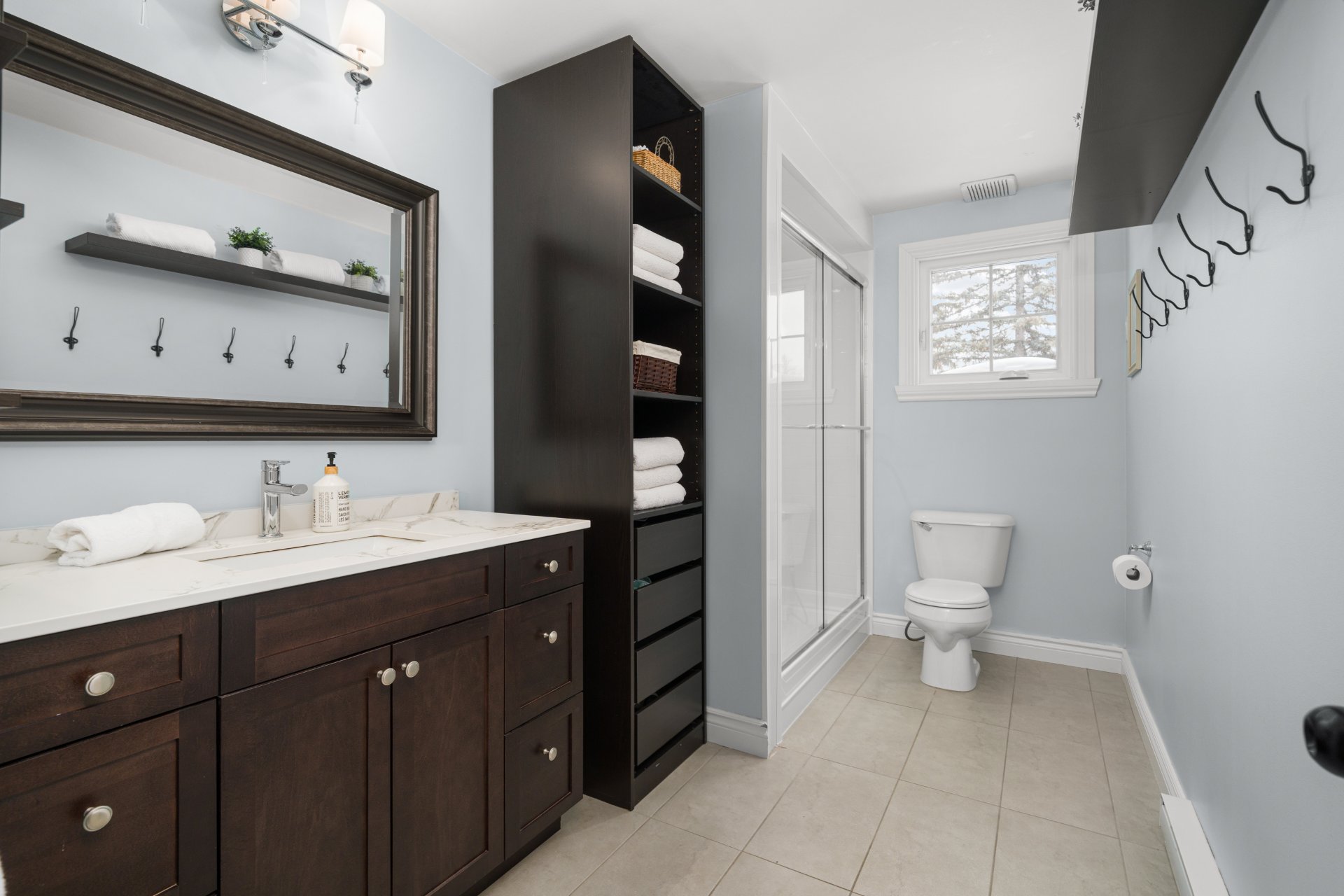 - Upstairs washroom hooks